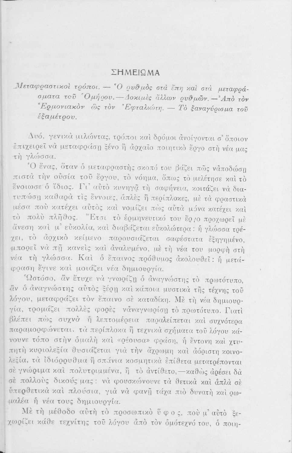 Παιδαγωγικό βοήθημα Αρχαίων Ελληνικών που περιλαμβάνει μετάφραση της Ομήρου Οδύσσειας στη νέα ελληνική, εισαγωγή στην επική ποίηση και στην Οδύσσεια, περιλήψεις και σημειώσεις.