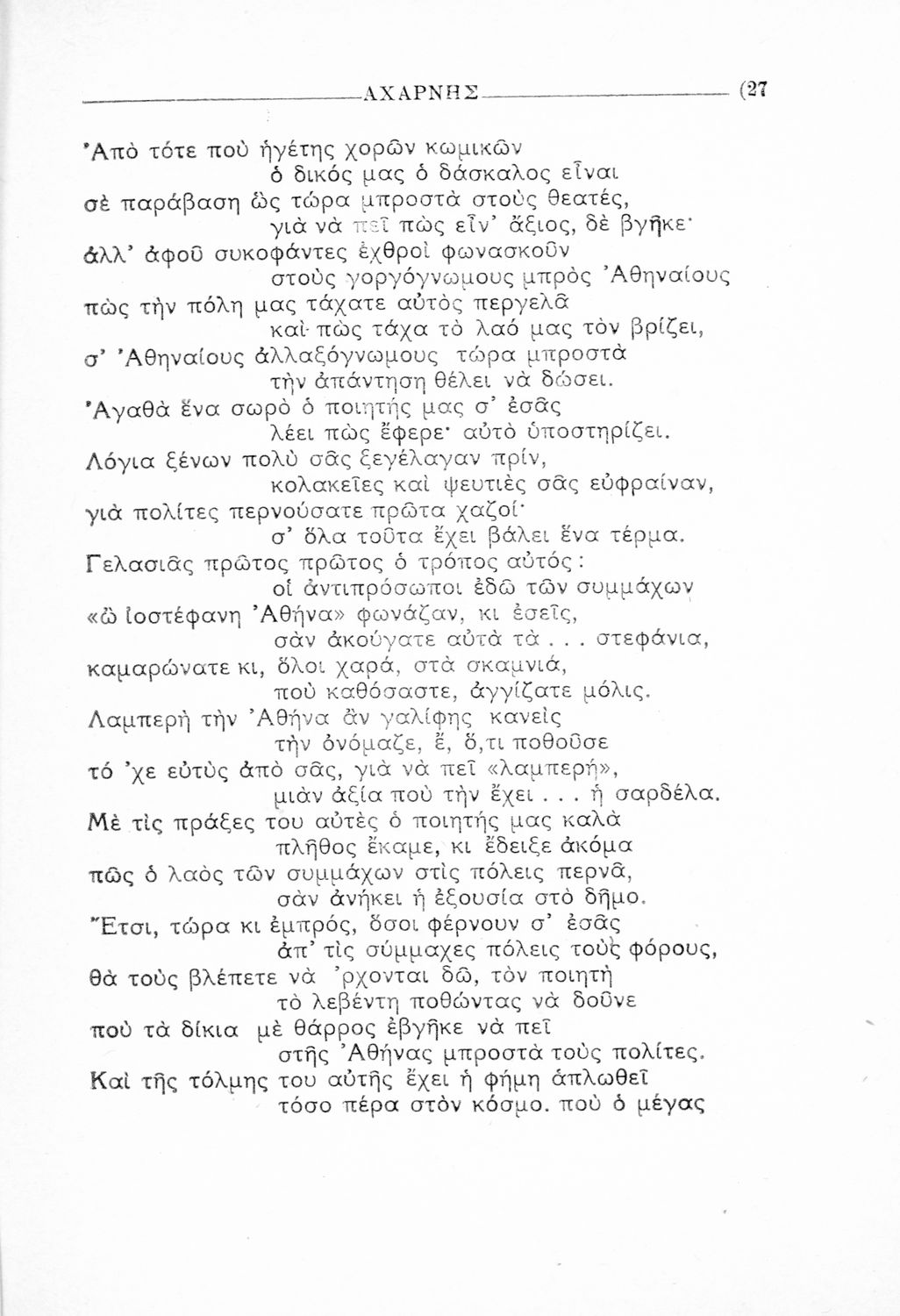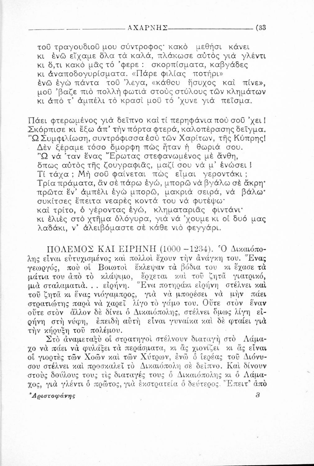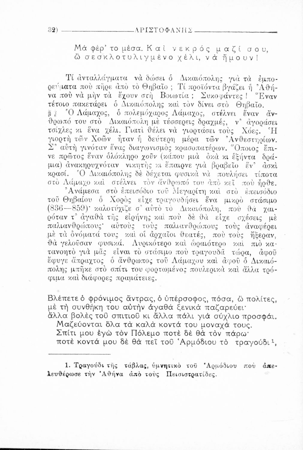 Παιδαγωγικό βοήθημα Αρχαίων Ελληνικών που περιέχει αποσπάσματα από το έργο του Αριστοφάνη, εισαγωγή και ερμηνευτικές παρατηρήσεις.