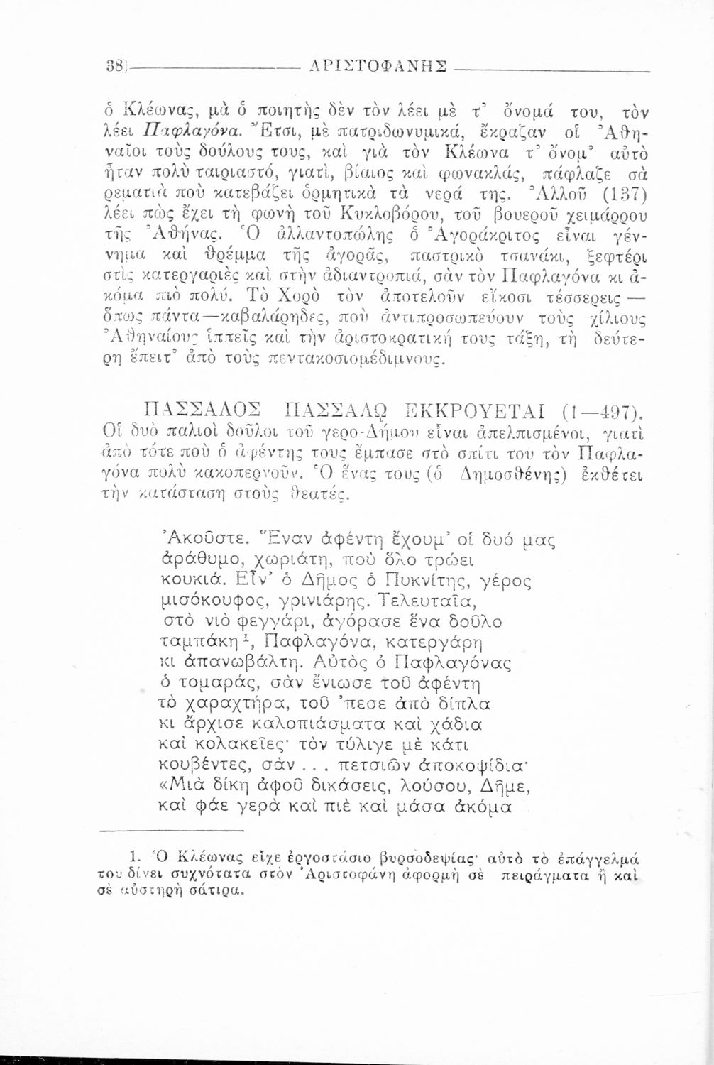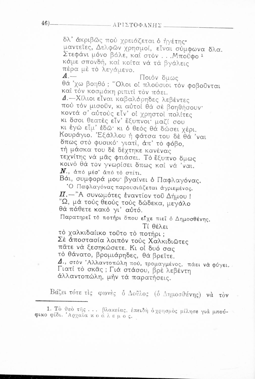 Παιδαγωγικό βοήθημα Αρχαίων Ελληνικών που περιέχει αποσπάσματα από το έργο του Αριστοφάνη, εισαγωγή και ερμηνευτικές παρατηρήσεις.