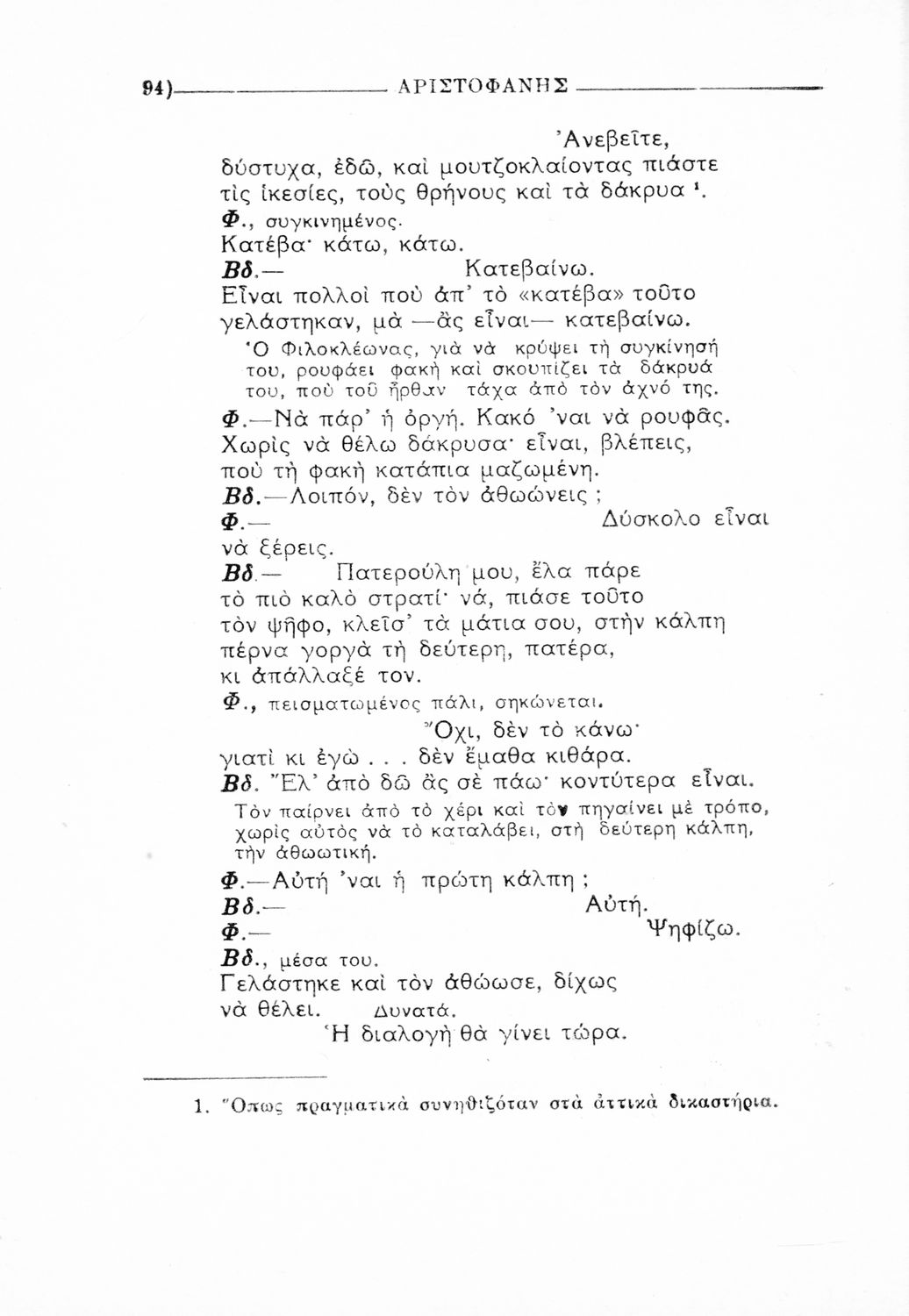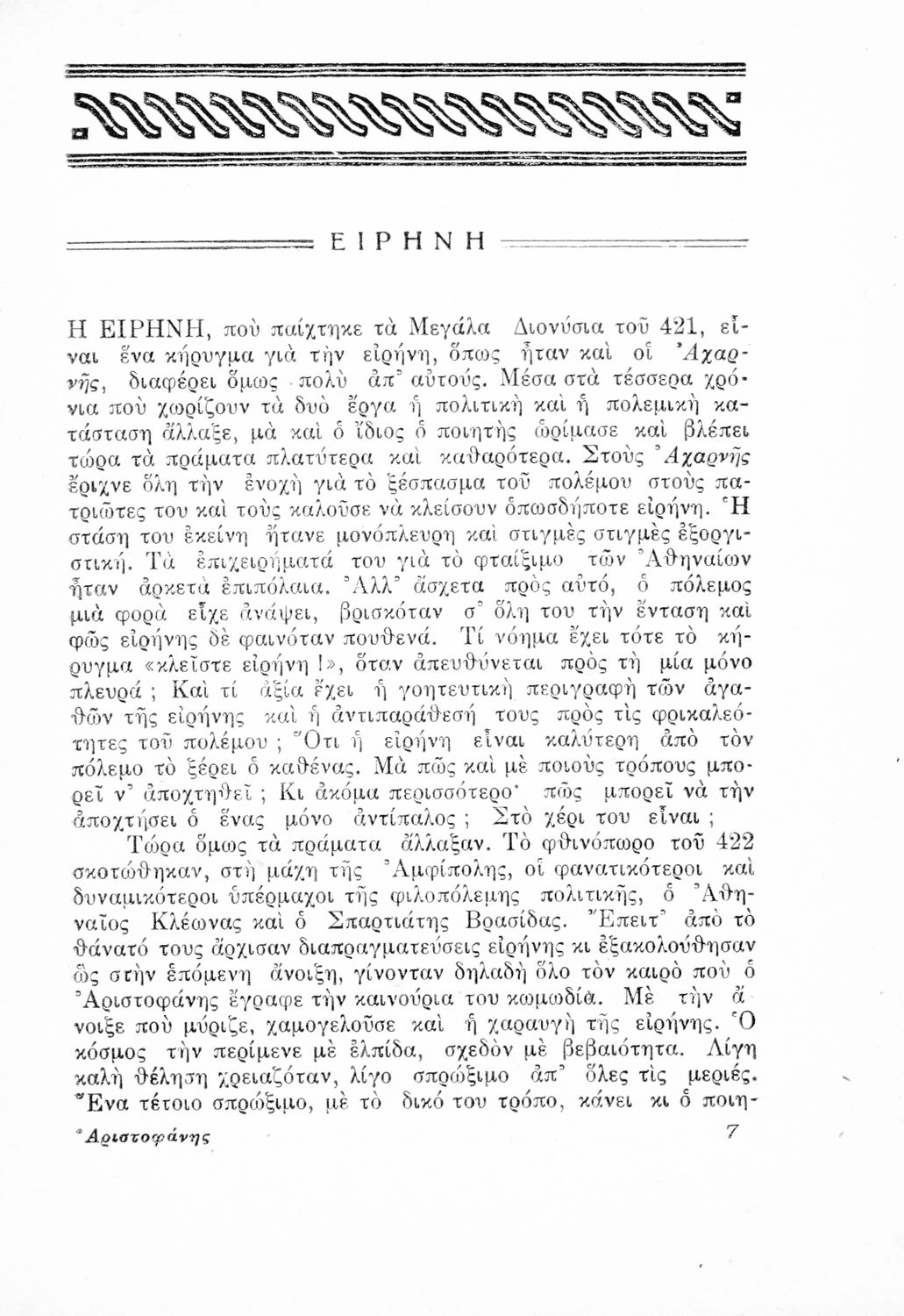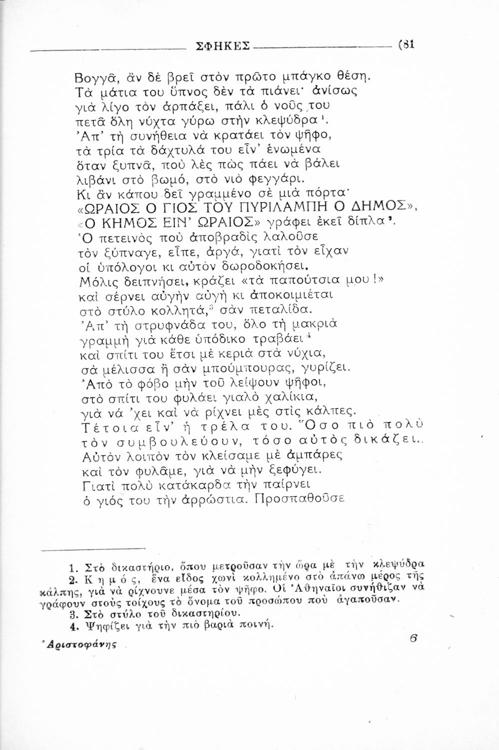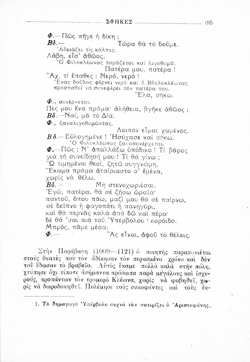 Παιδαγωγικό βοήθημα Αρχαίων Ελληνικών που περιέχει αποσπάσματα από το έργο του Αριστοφάνη, εισαγωγή και ερμηνευτικές παρατηρήσεις.