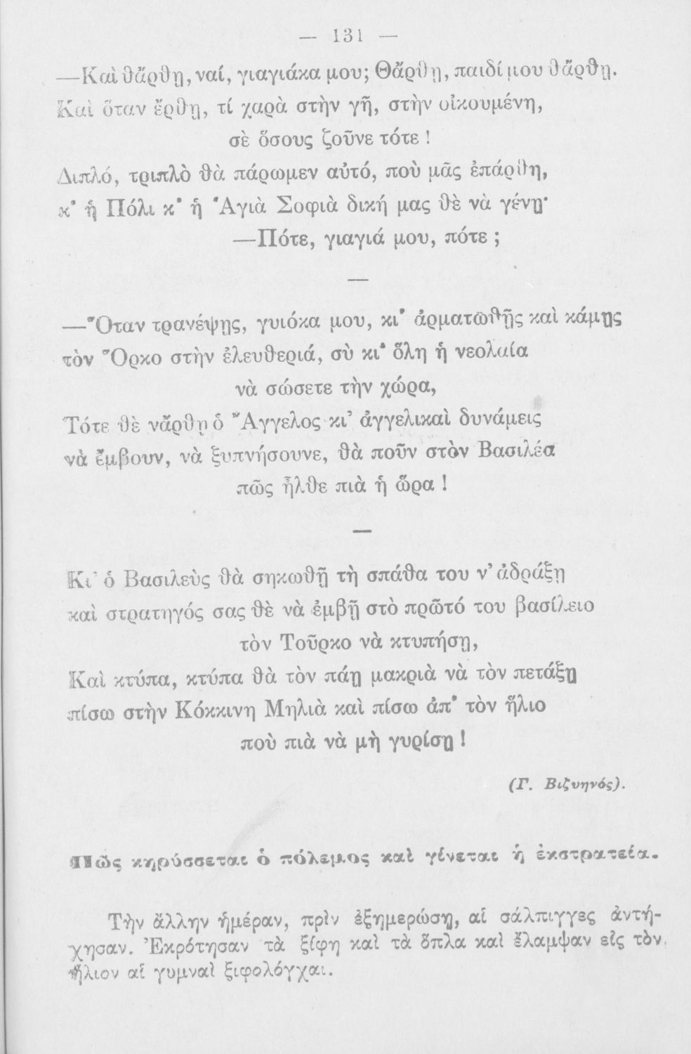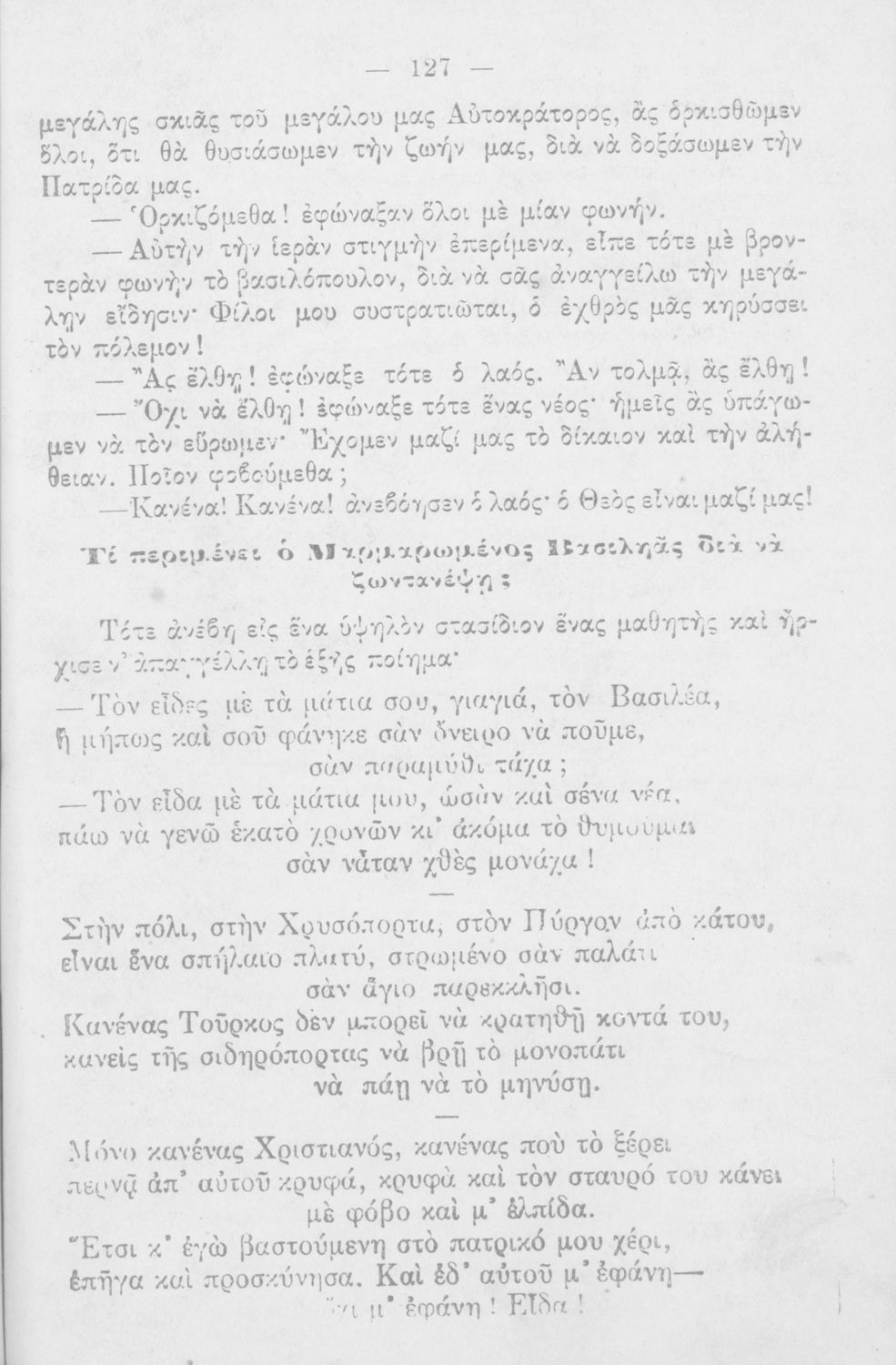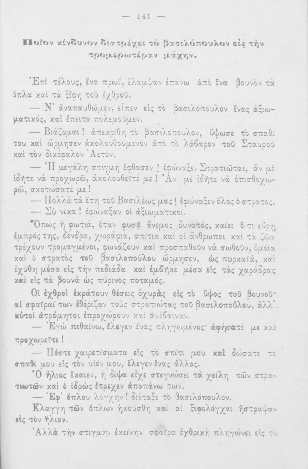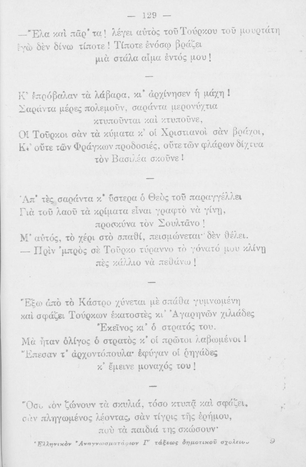 Αναγνωστικό Ε΄ Δημοτικού που περιλαμβάνει εξιστορήσεις πολεμικών γεγονότων εμπνευσμένες από την περίοδο του Βυζαντίου και των Βαλκανικών Πολέμων.