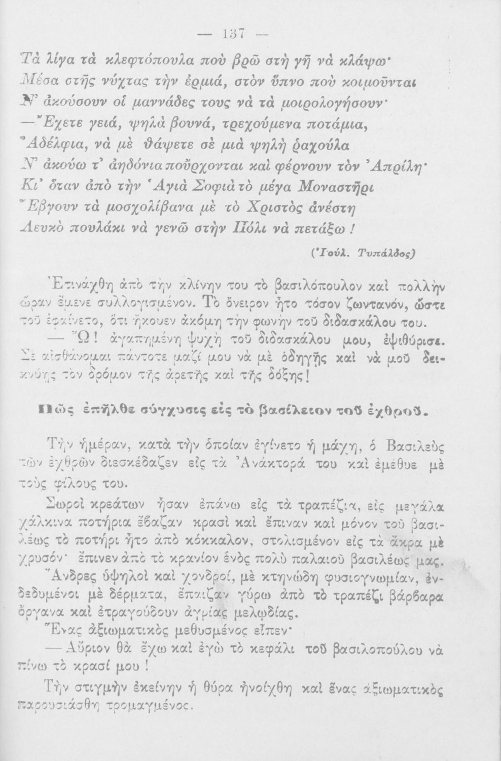Τα δύο Βασιλόπουλα. Ελληνικόν Αναγνωσματάριον προς χρήσιν των μαθητών της Γ τάξεως του Δημοτικού Σχολείου.