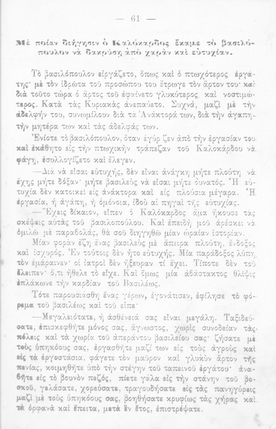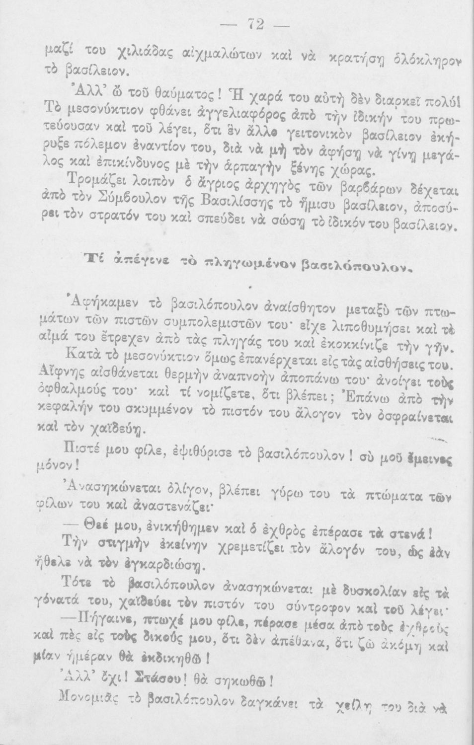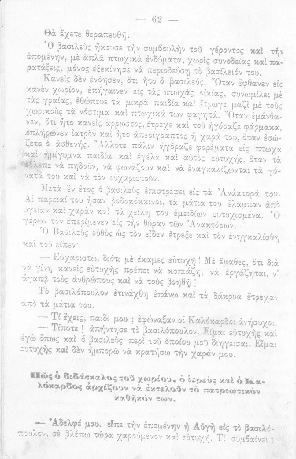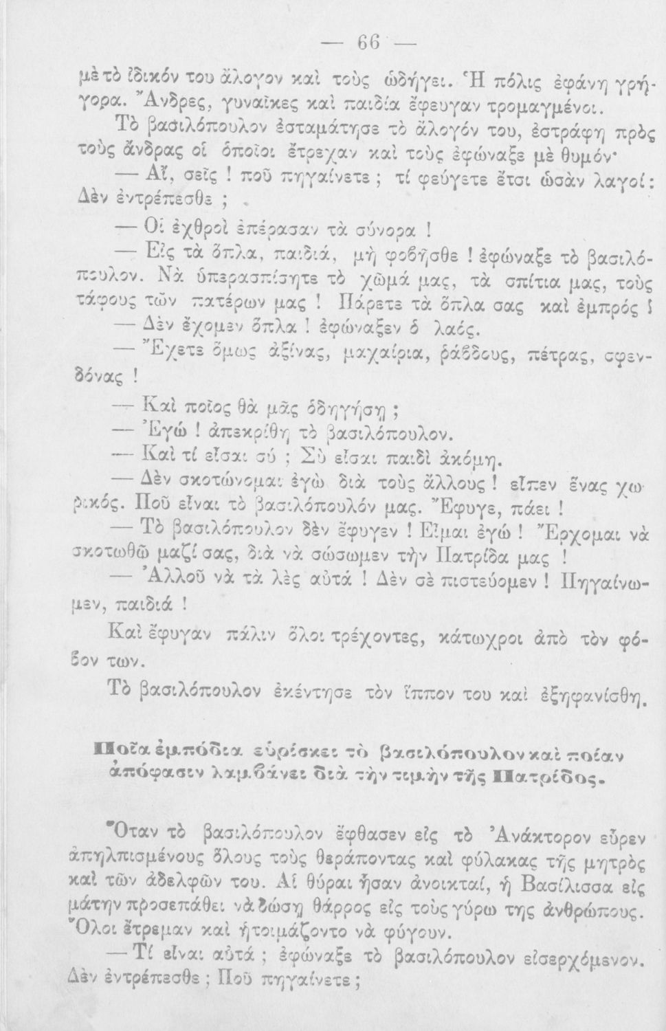 Τίτλος: Τα δύο Βασιλόπουλα. Ελληνικόν Αναγνωσματάριον προς χρήσιν των μαθητών της Γ τάξεως του Δημοτικού Σχολείου.