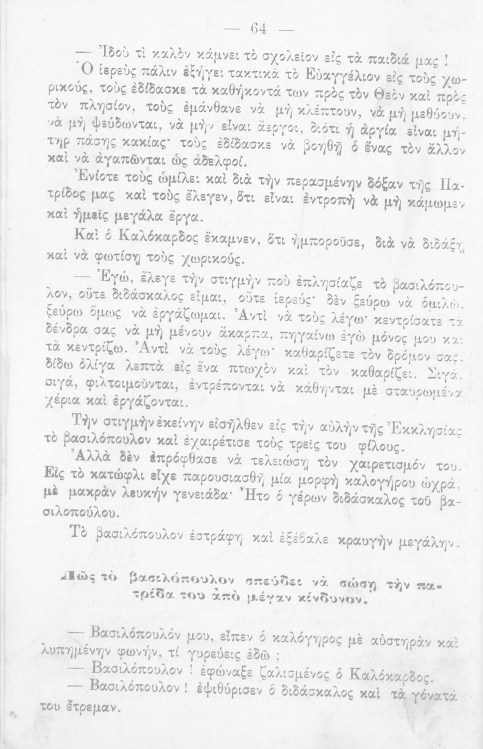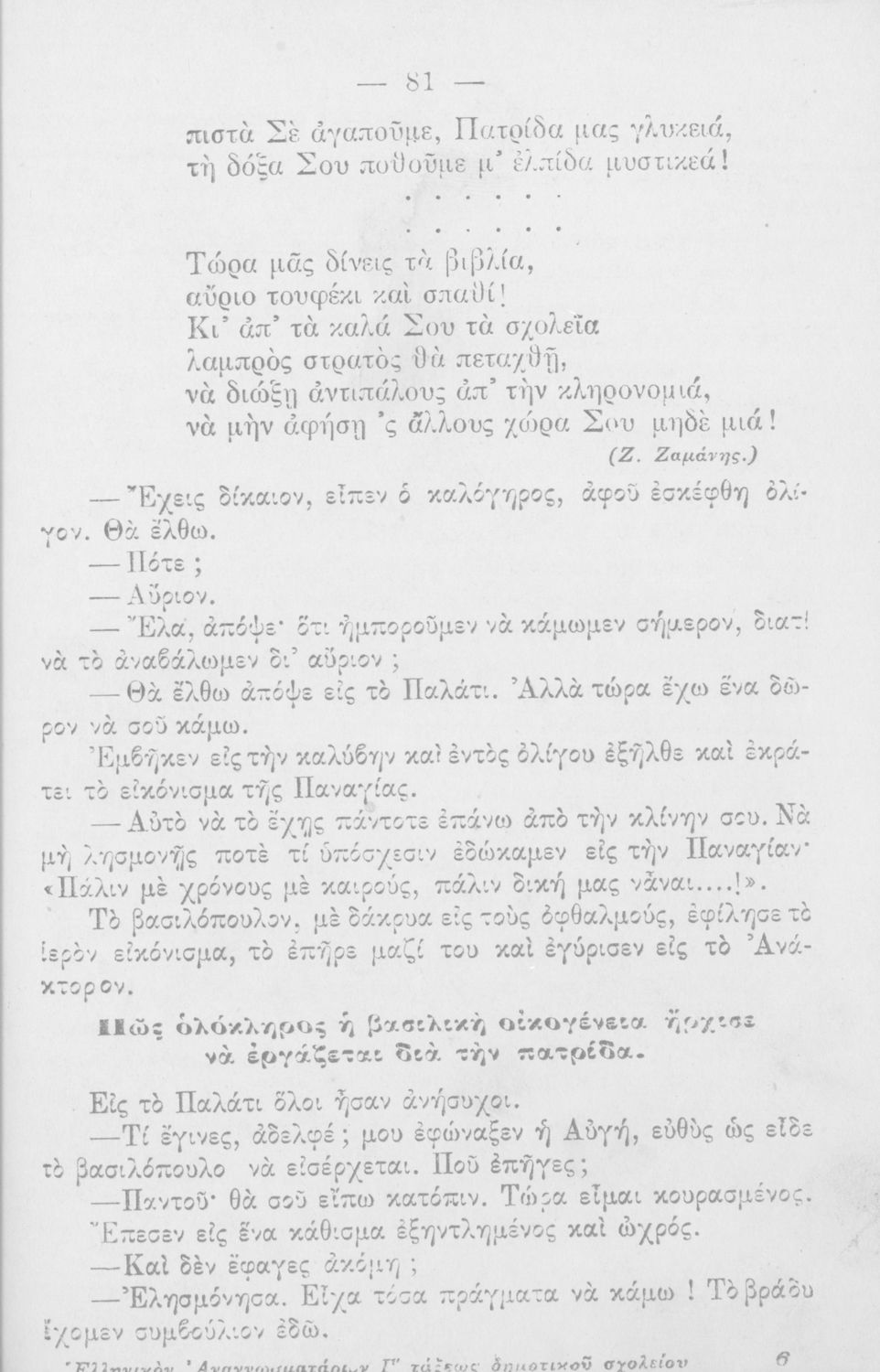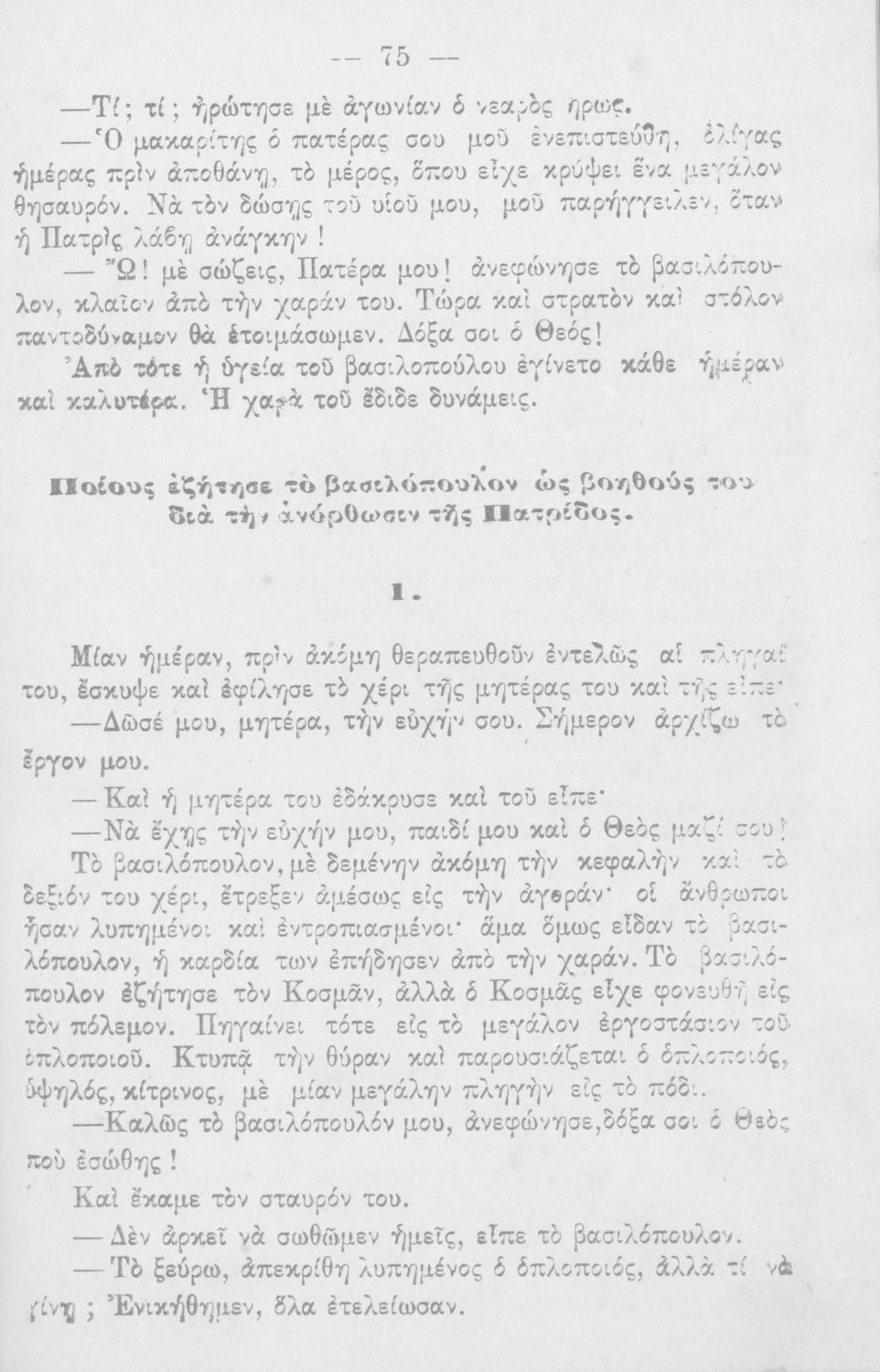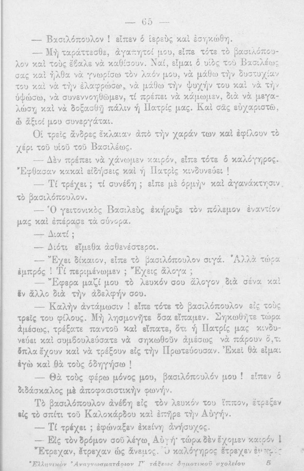 Τα δύο Βασιλόπουλα. Ελληνικόν Αναγνωσματάριον προς χρήσιν των μαθητών της Γ τάξεως του Δημοτικού Σχολείου.