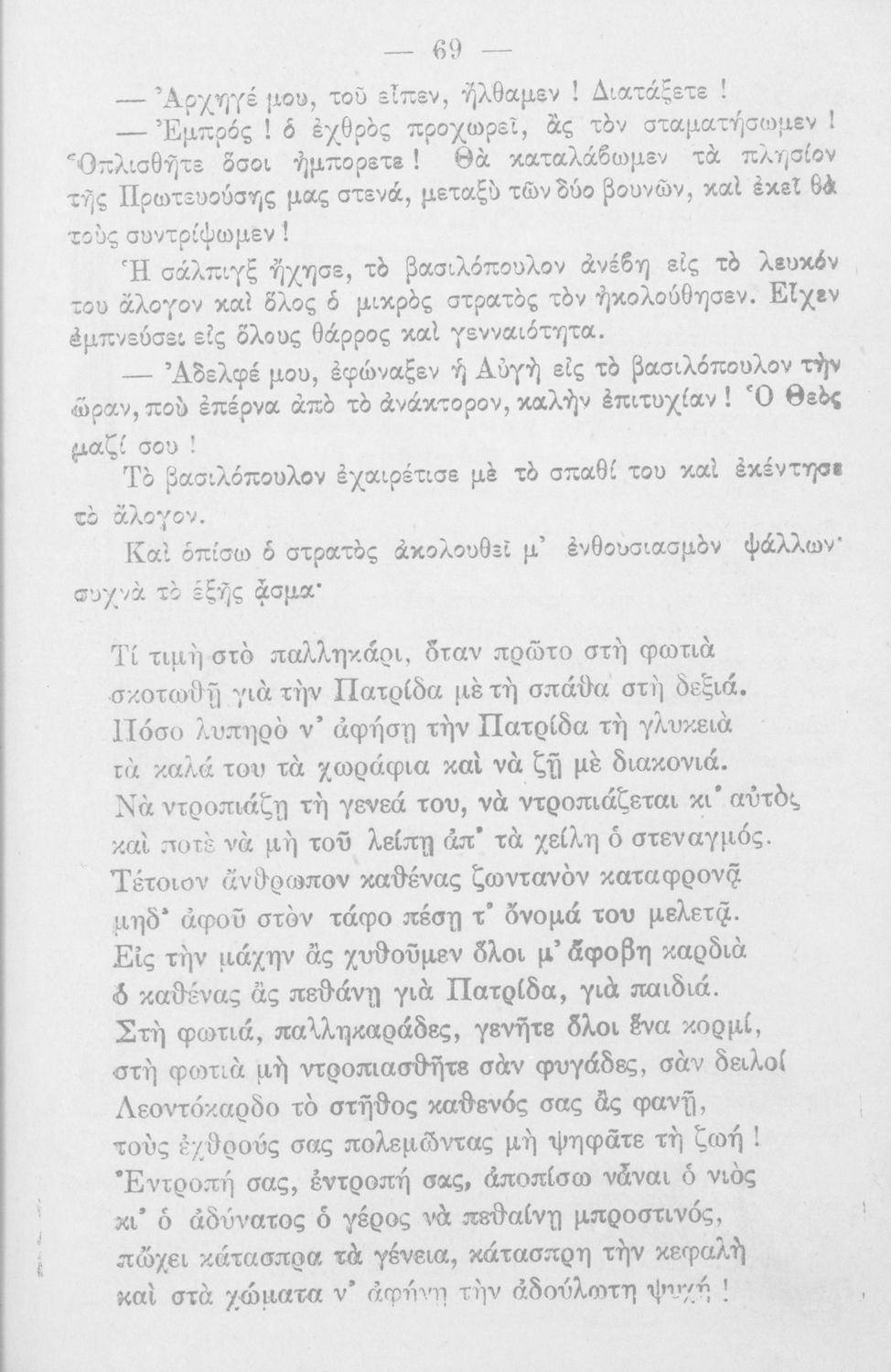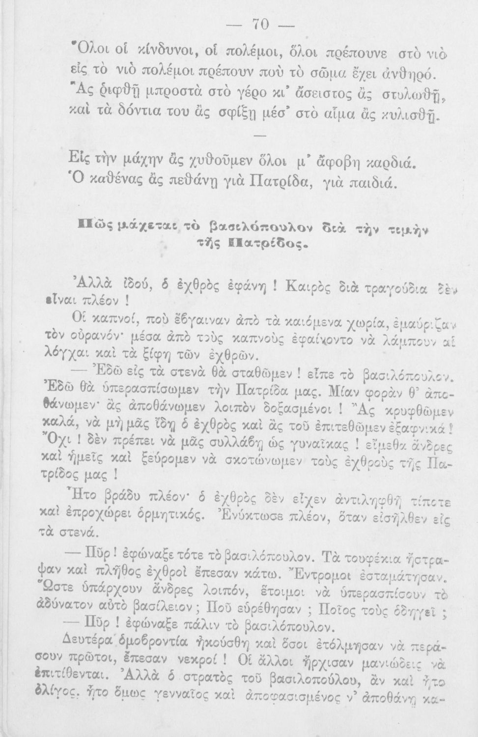 Αναγνωστικό Ε΄ Δημοτικού που περιλαμβάνει εξιστορήσεις πολεμικών γεγονότων εμπνευσμένες από την περίοδο του Βυζαντίου και των Βαλκανικών Πολέμων.