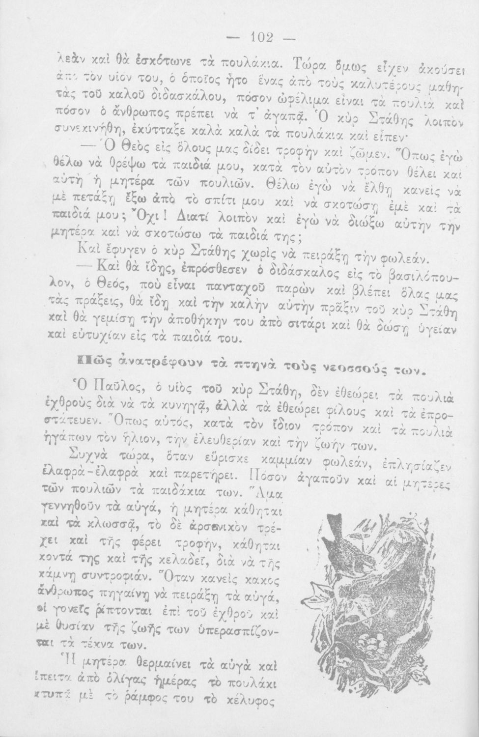 Αναγνωστικό Β' Δημοτικού που περιέχει προσευχές, ποιήματα, μικρά διηγήματα με περιεχόμενο από την οικογενειακή και κοινωνική ζωή, το ζωικό βασίλειο και τις ηθικές αξίες.