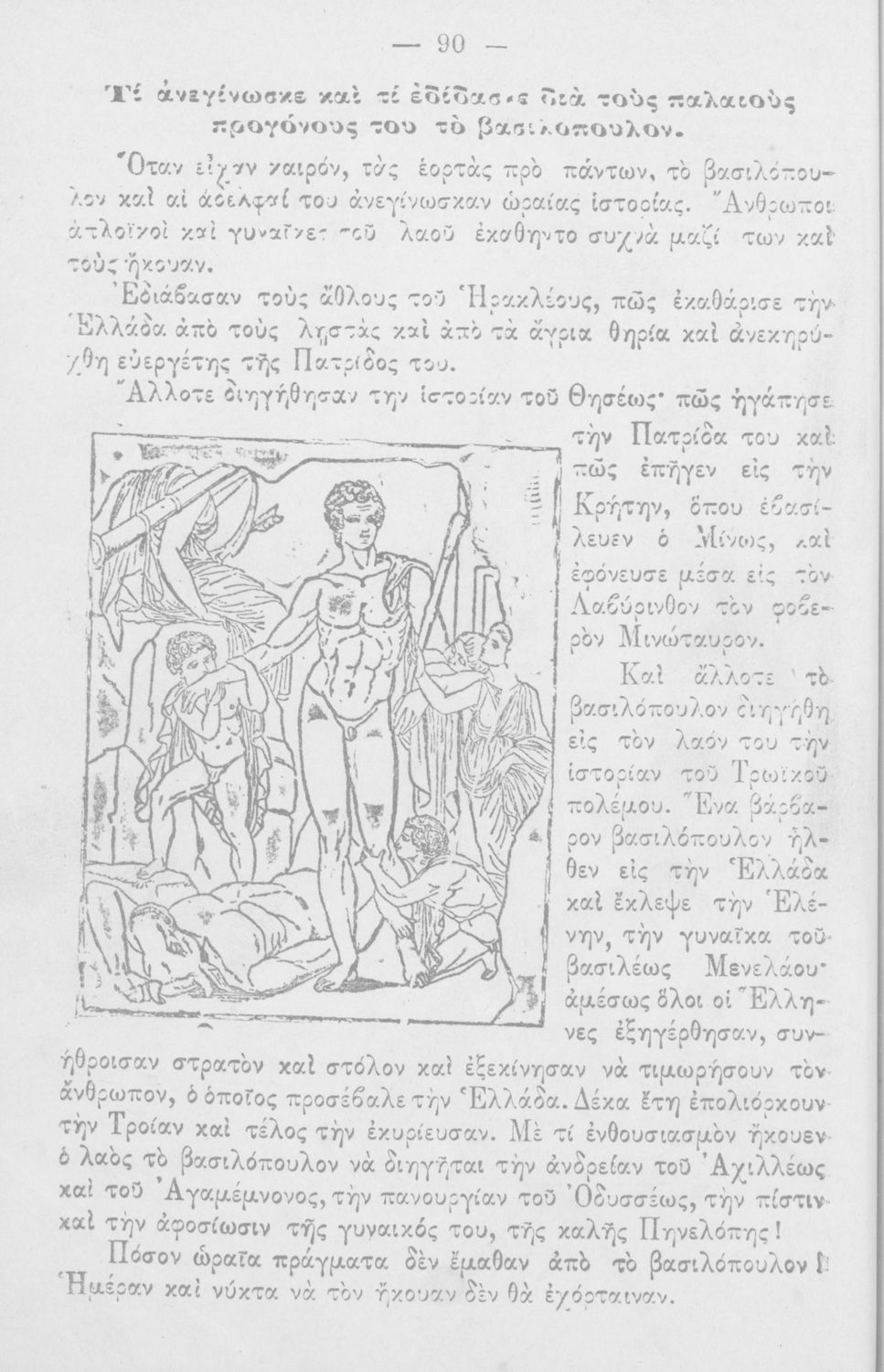 Αναγνωστικό Ε΄ Δημοτικού που περιλαμβάνει εξιστορήσεις πολεμικών γεγονότων εμπνευσμένες από την περίοδο του Βυζαντίου και των Βαλκανικών Πολέμων.