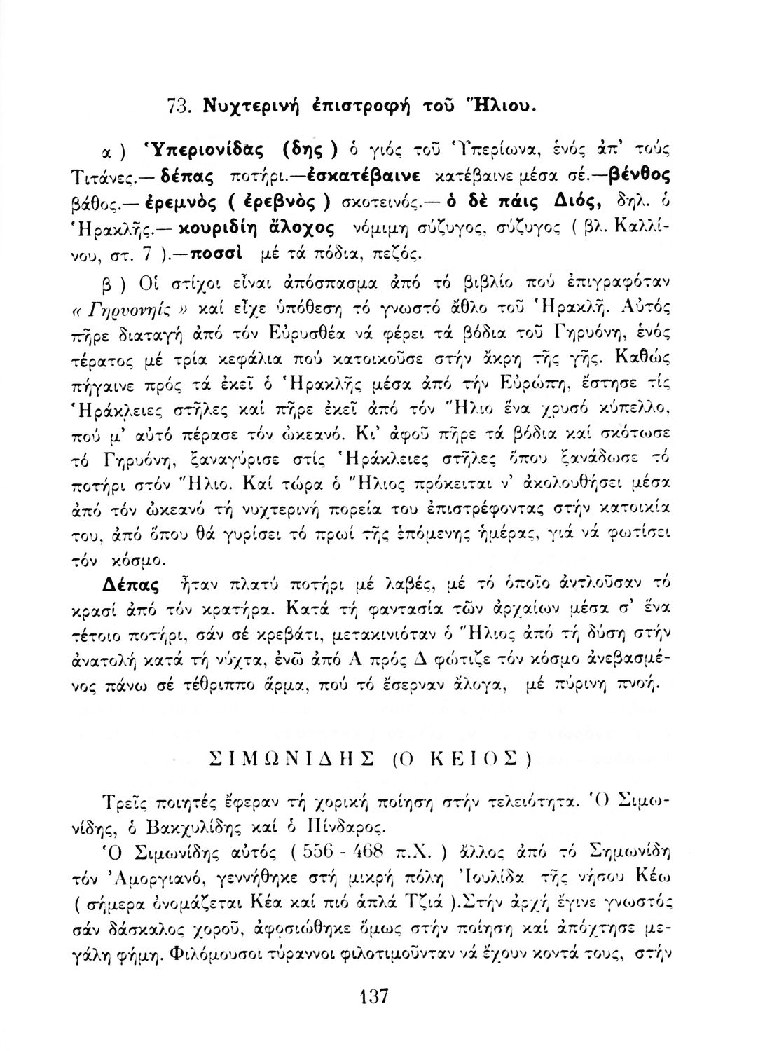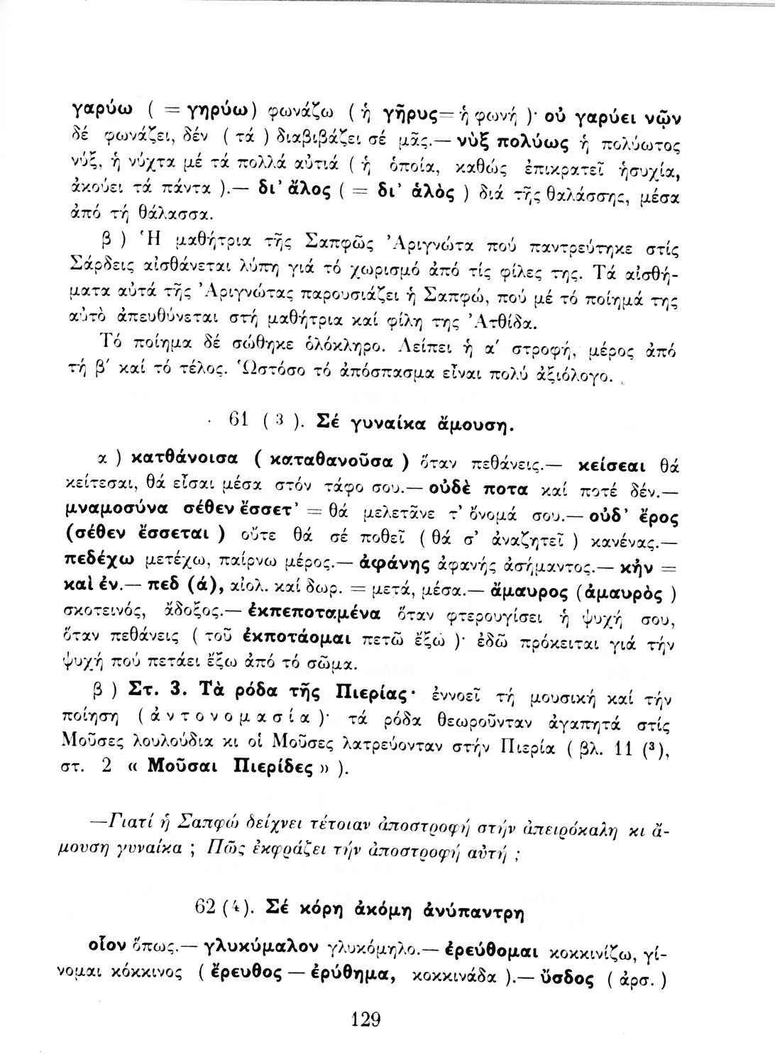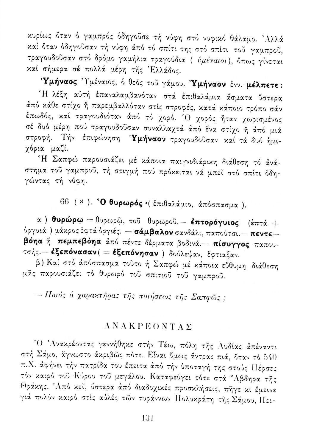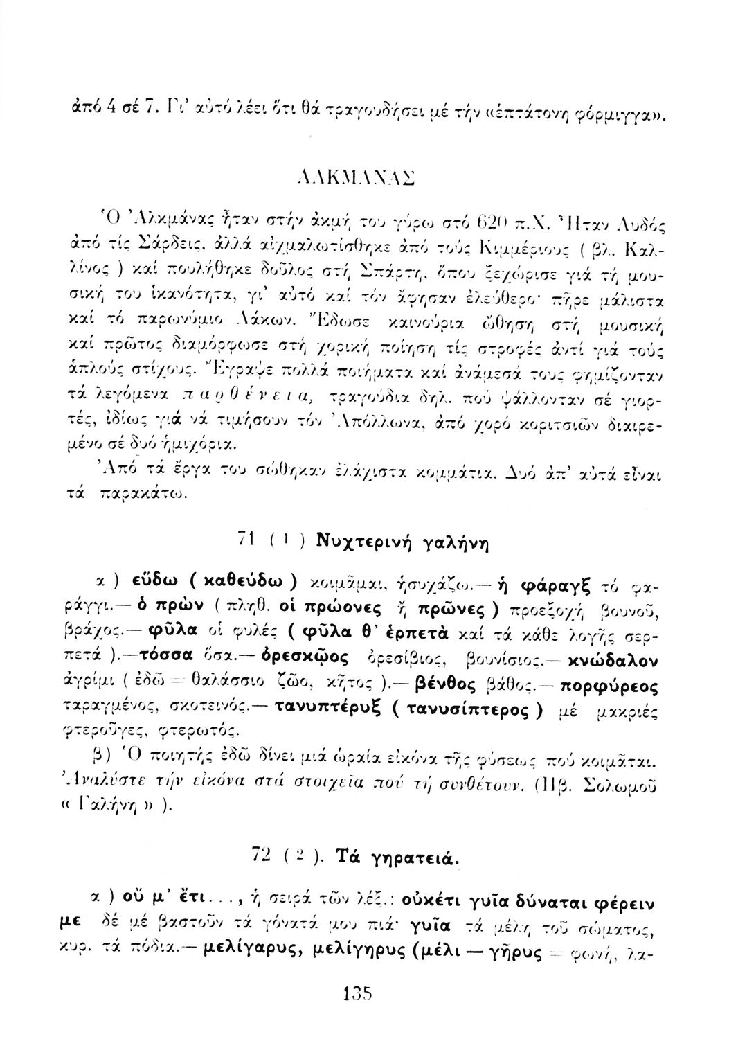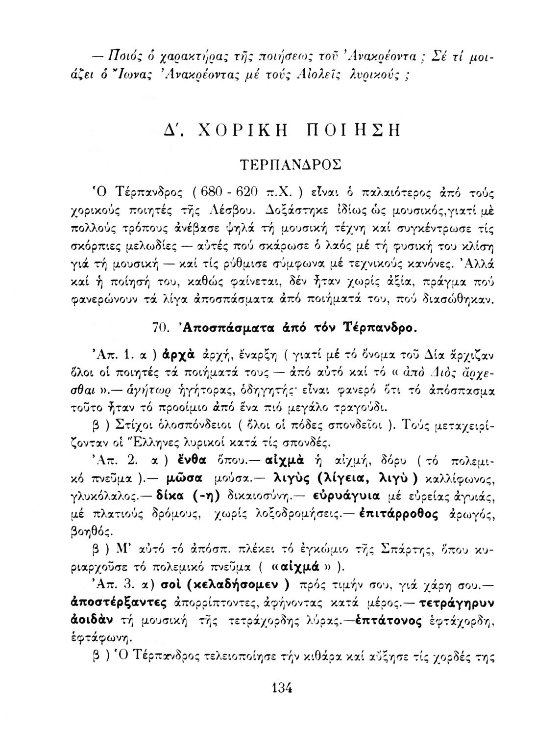 Σχολικό εγχειρίδιο Αρχαίων Ελληνικών Γ΄ Λυκείου που περιλαμβάνει εισαγωγή στη λυρική ποίηση, έργα αρχαίων Ελλήνων ποιητών, ερμηνευτικά και πραγματολογικά σχόλια, και λεξιλογικές παρατηρήσεις. Η εισαγωγή, τα σημειώματα και οι ερμηνευτικές σημειώσεις μεταγλωττίστηκαν από τον επ. Γεν. Επιθεωρητή Μ.Ε. Δορμπαράκη.