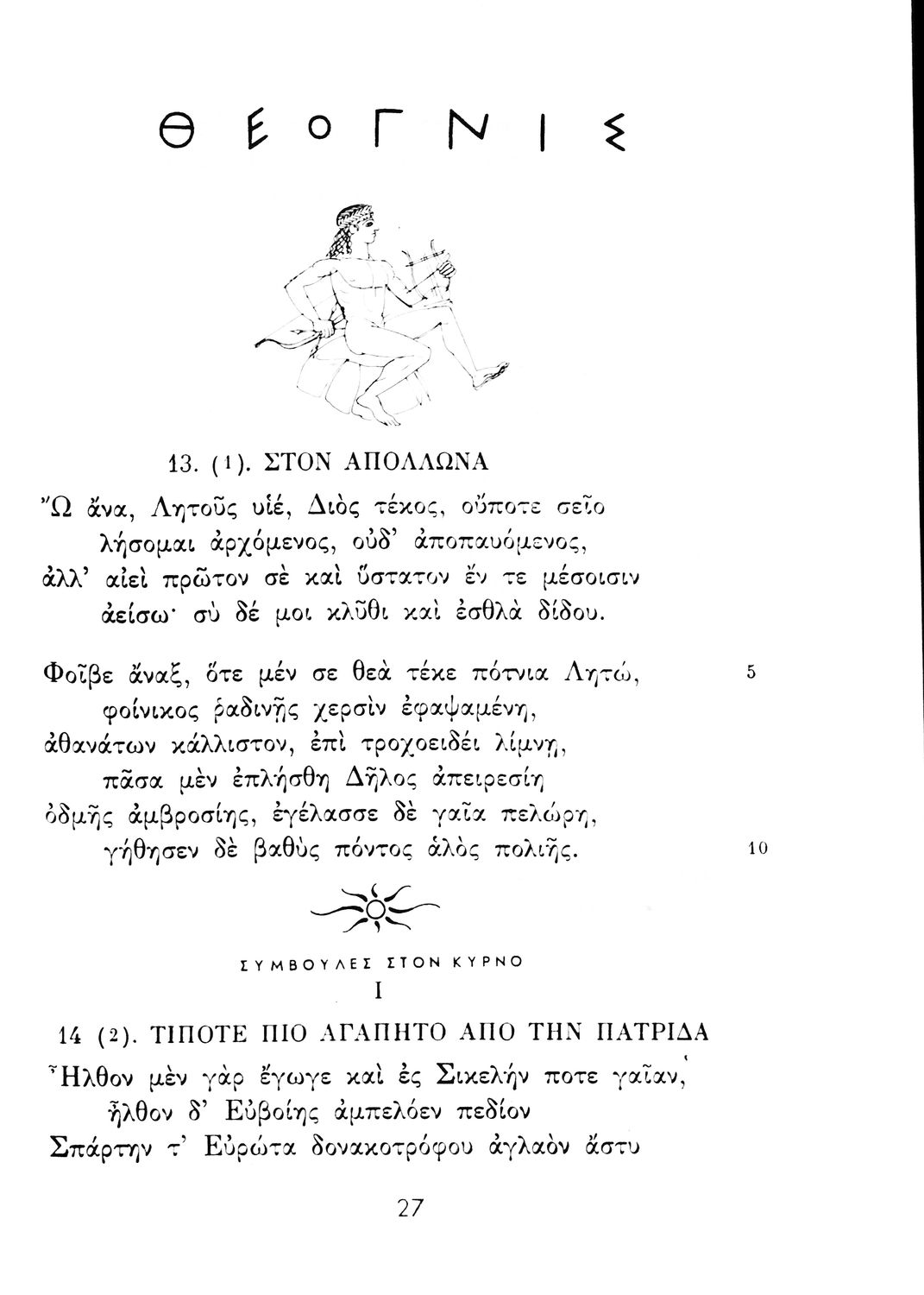 Σχολικό εγχειρίδιο Αρχαίων Ελληνικών Γ΄ Λυκείου που περιλαμβάνει εισαγωγή στη λυρική ποίηση, έργα αρχαίων Ελλήνων ποιητών, ερμηνευτικά και πραγματολογικά σχόλια, και λεξιλογικές παρατηρήσεις. Η εισαγωγή, τα σημειώματα και οι ερμηνευτικές σημειώσεις μεταγλωττίστηκαν από τον επ. Γεν. Επιθεωρητή Μ.Ε. Δορμπαράκη.