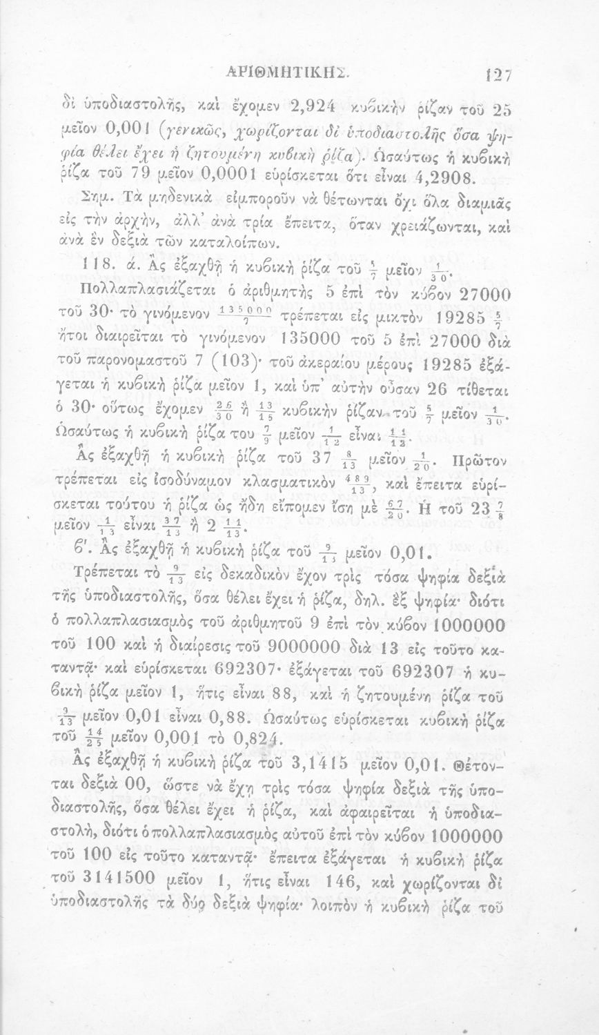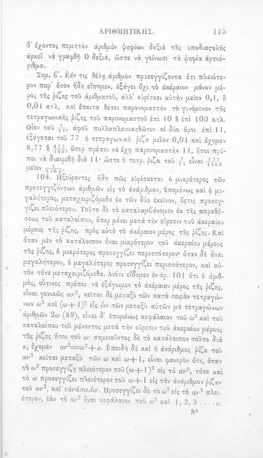 Σχολικό εγχειρίδιο Αριθμητικής χωρισμένο σε θεωρήματα και ασκήσεις.