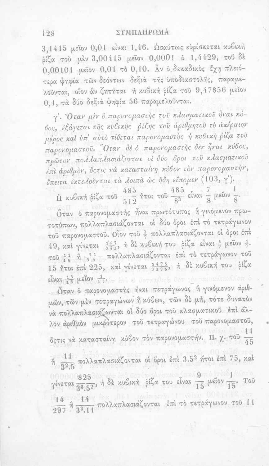 Συμπλήρωμα Αριθμητικής προς χρήσιν των μαθητευόντων εις τα Γυμνάσια