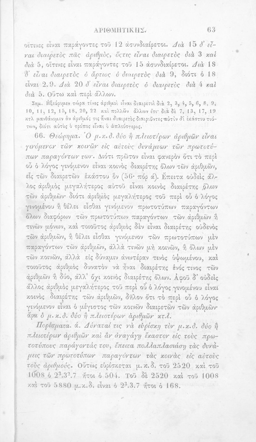 Σχολικό εγχειρίδιο Αριθμητικής χωρισμένο σε θεωρήματα και ασκήσεις.