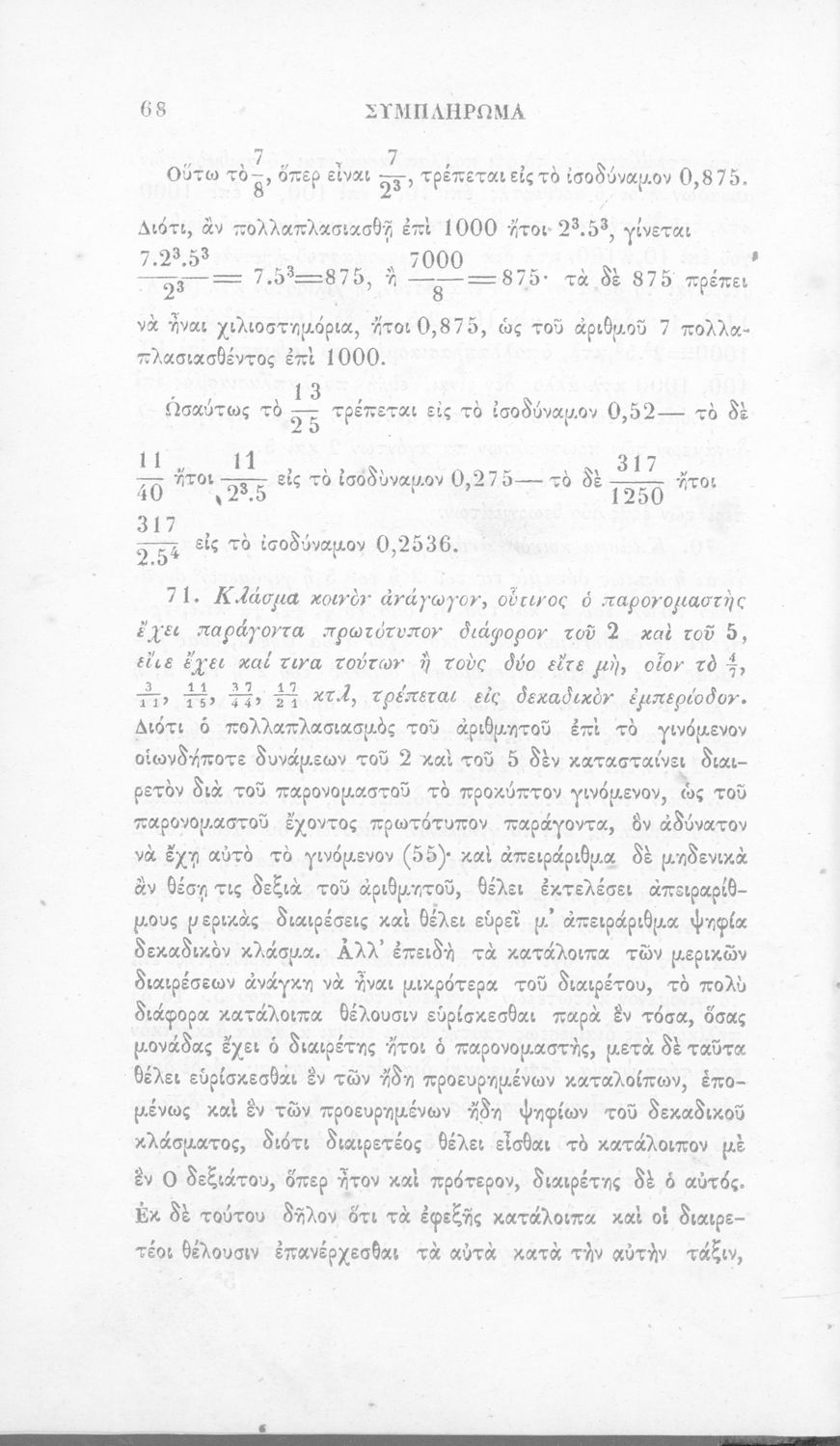 Συμπλήρωμα Αριθμητικής προς χρήσιν των μαθητευόντων εις τα Γυμνάσια