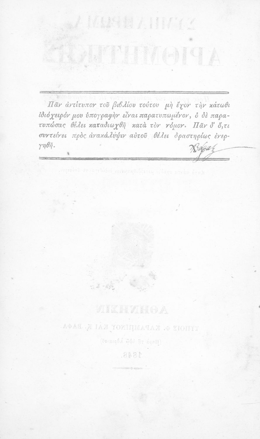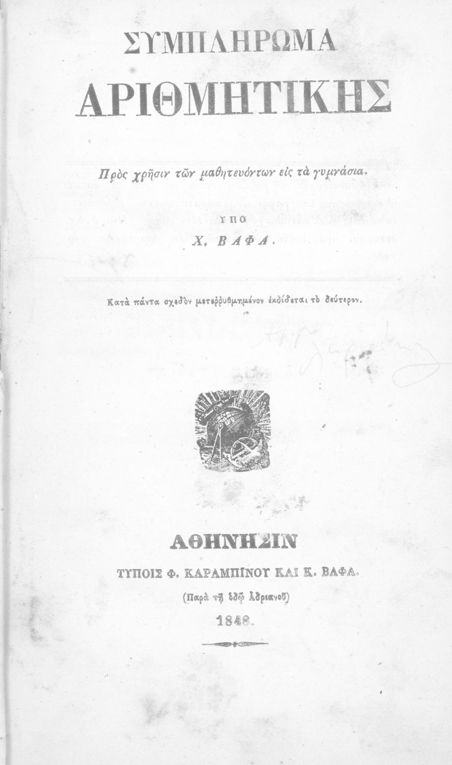 Τίτλος: Συμπλήρωμα Αριθμητικής προς χρήσιν των μαθητευόντων εις τα Γυμνάσια