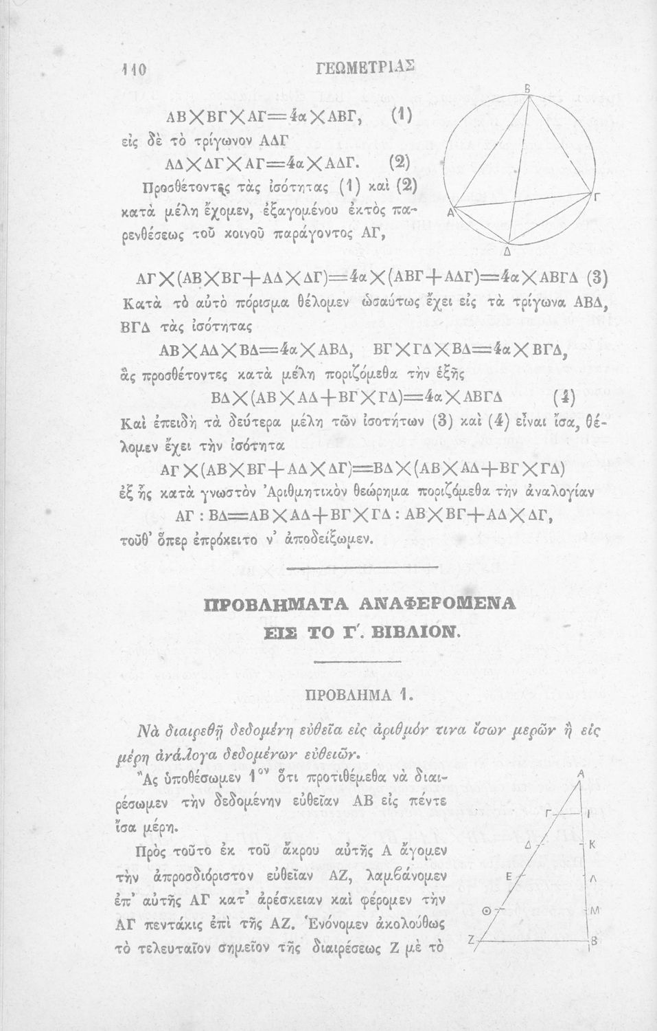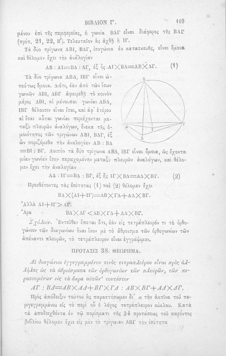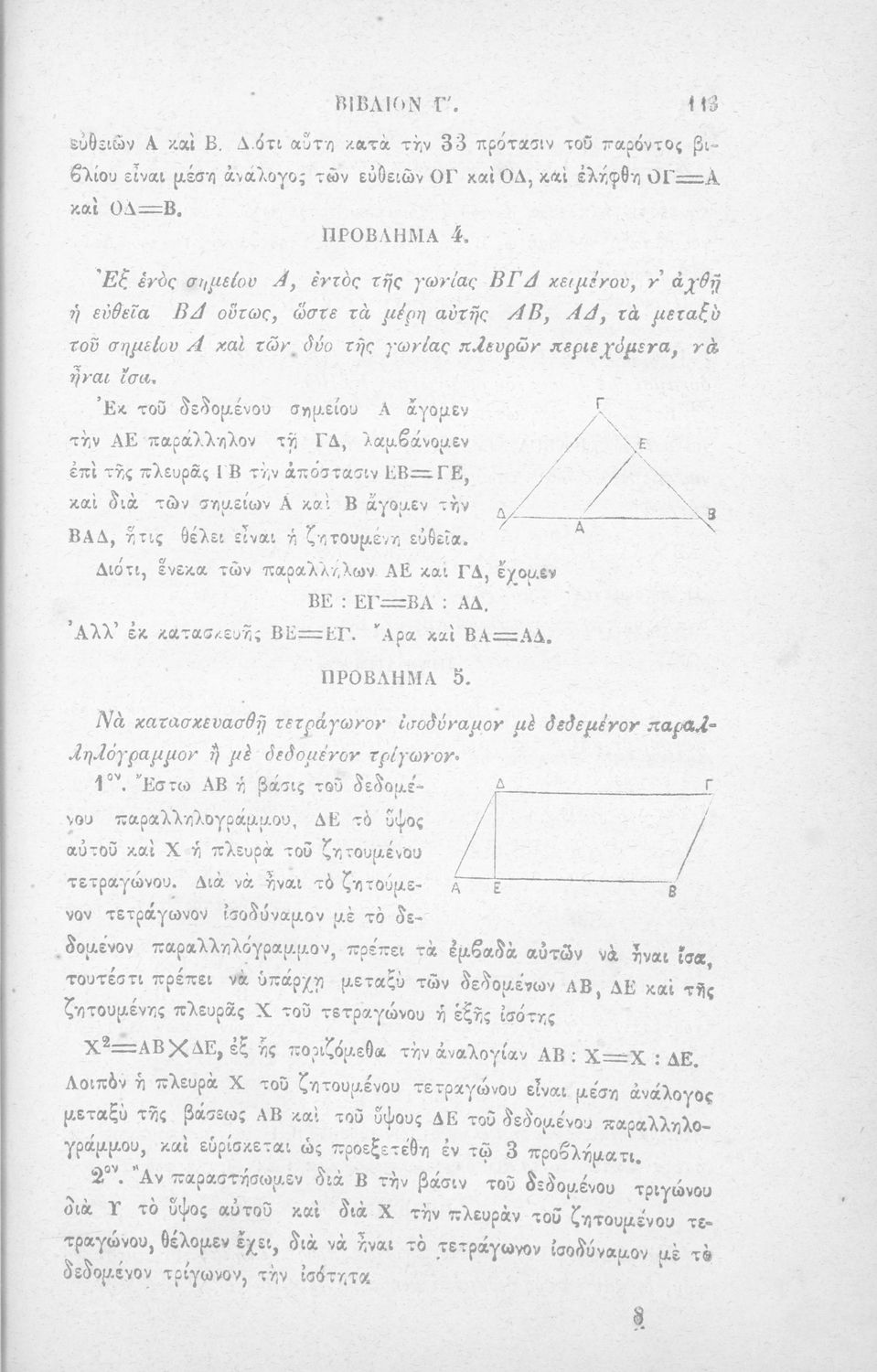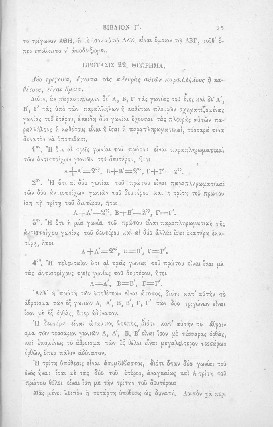 Σχολικό εγχειρίδιο Γεωμετρίας που είναι χωρισμένο σε θεωρήματα και τις λύσεις τους.