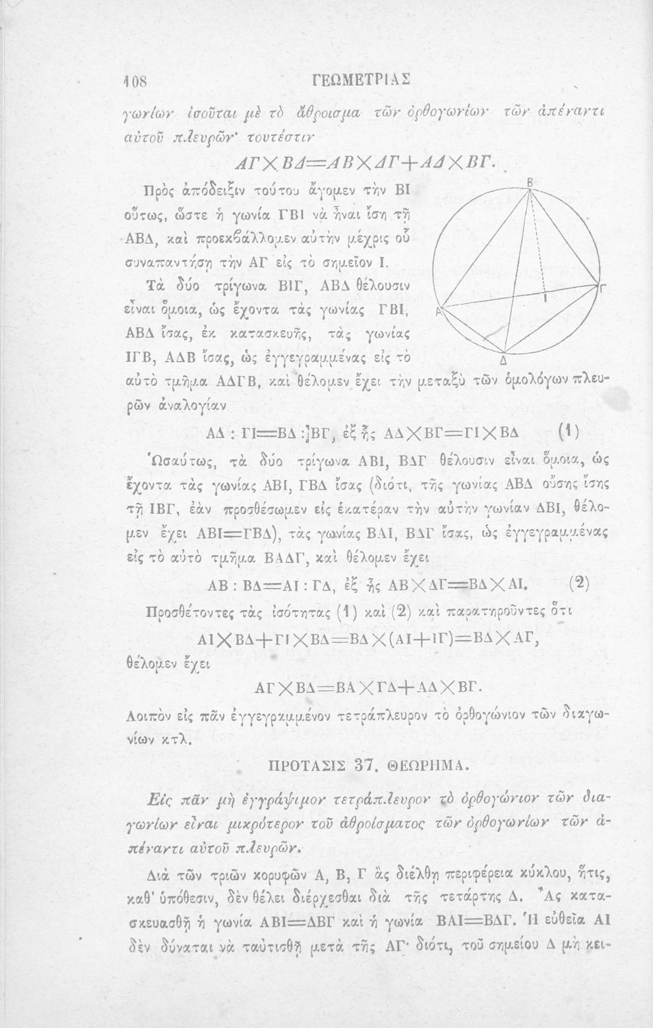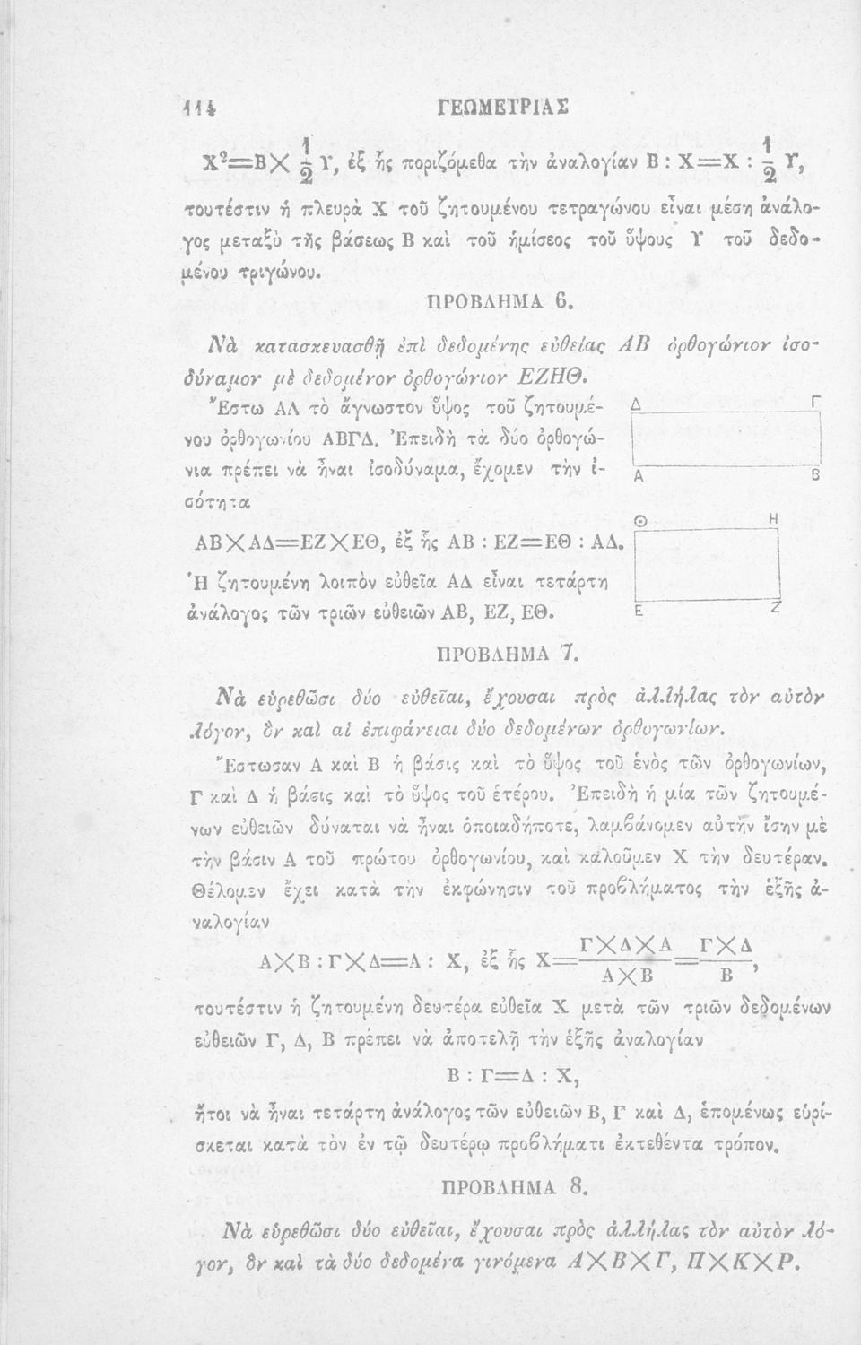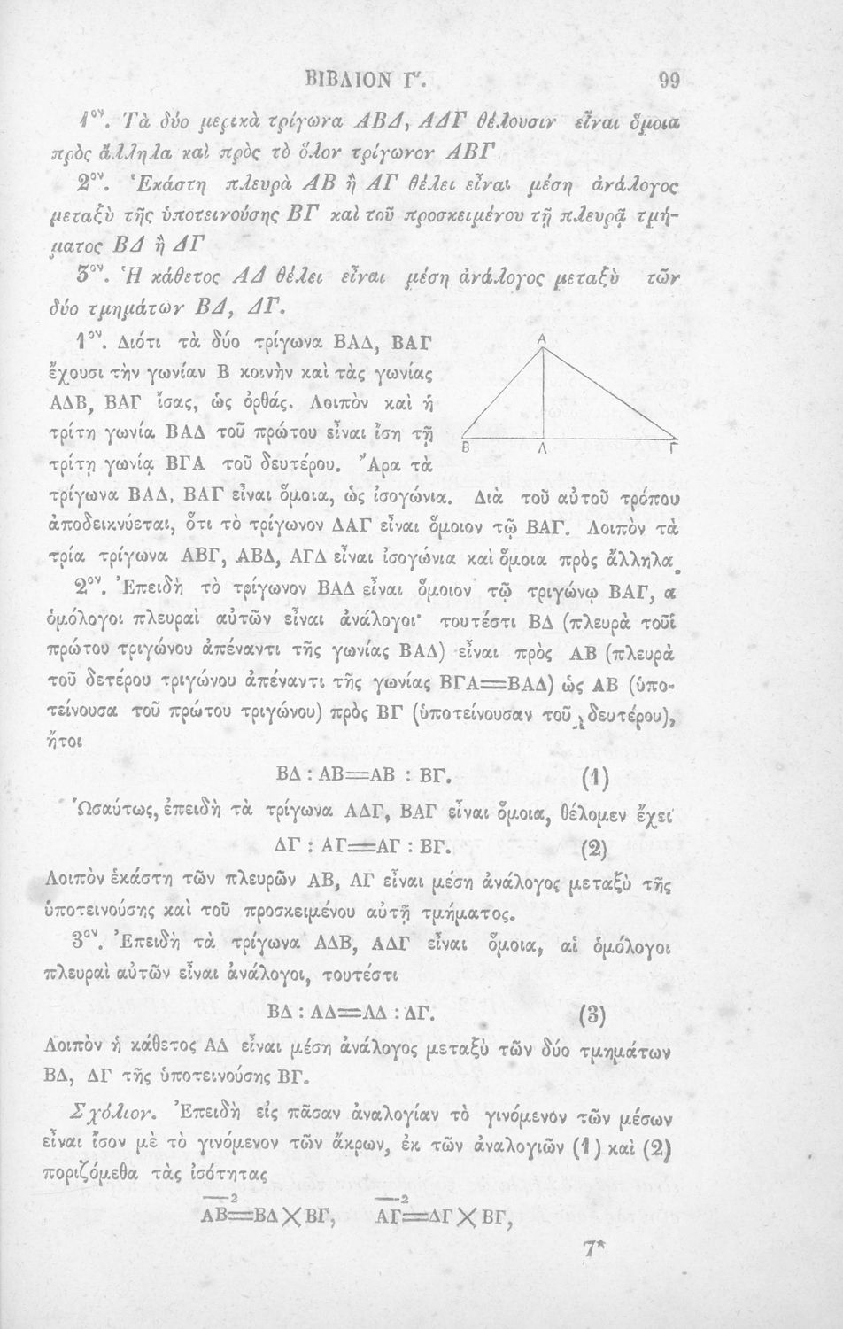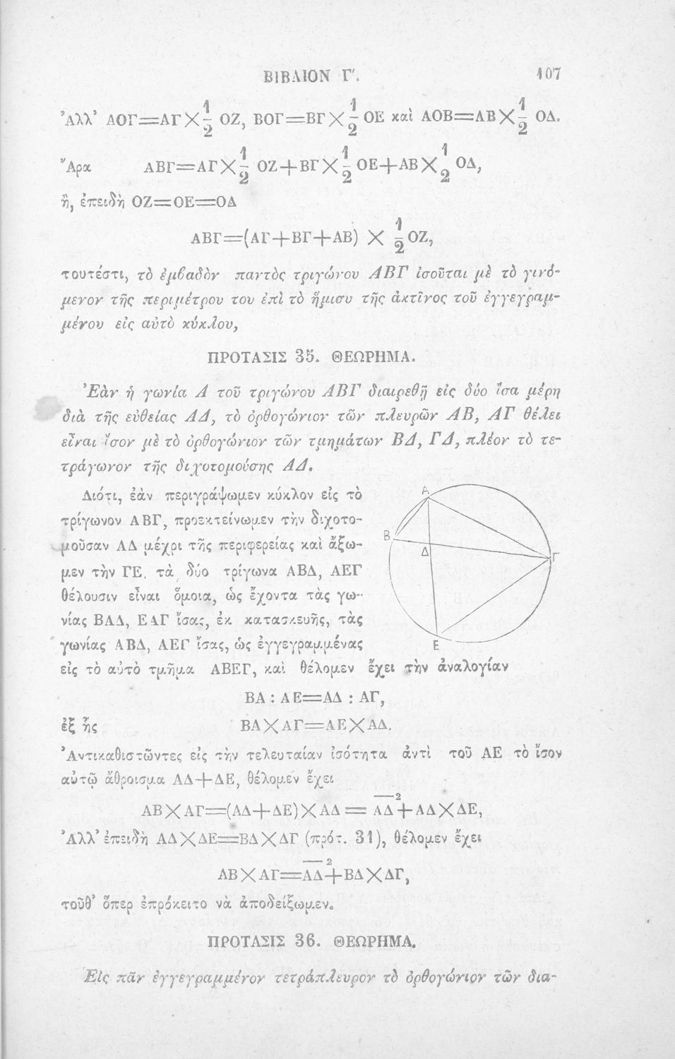 Σχολικό εγχειρίδιο Γεωμετρίας που είναι χωρισμένο σε θεωρήματα και τις λύσεις τους.