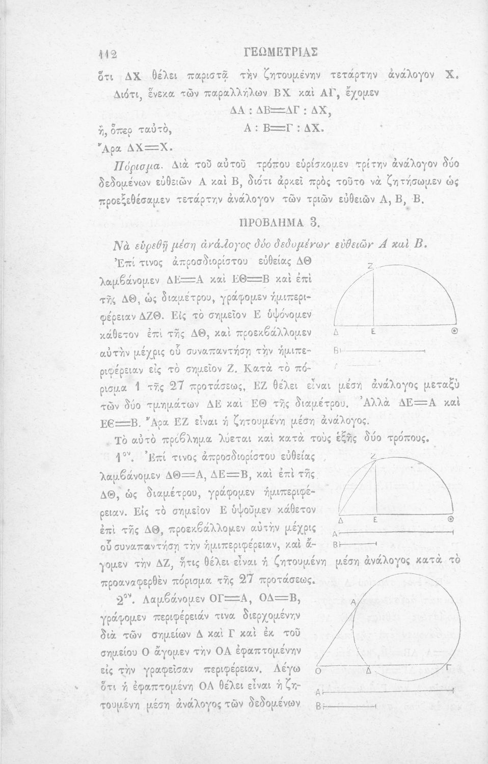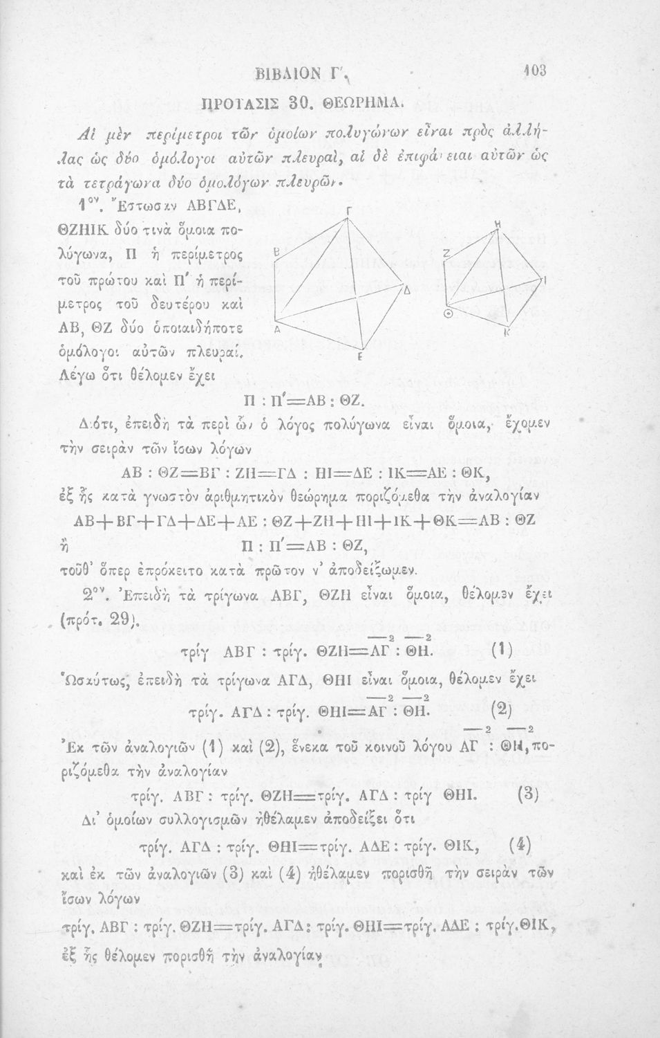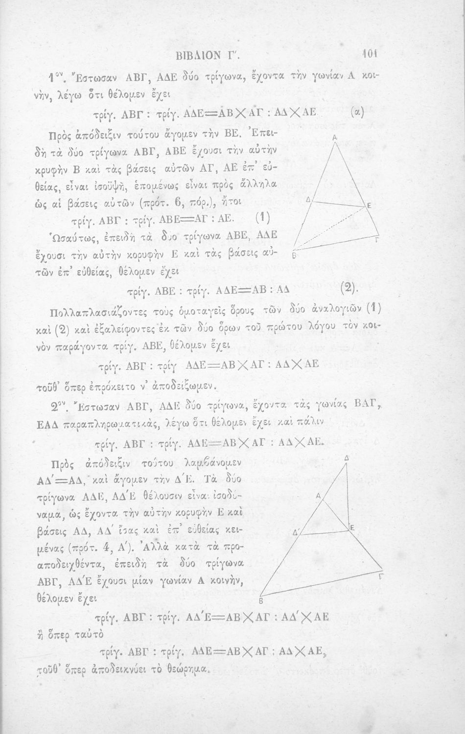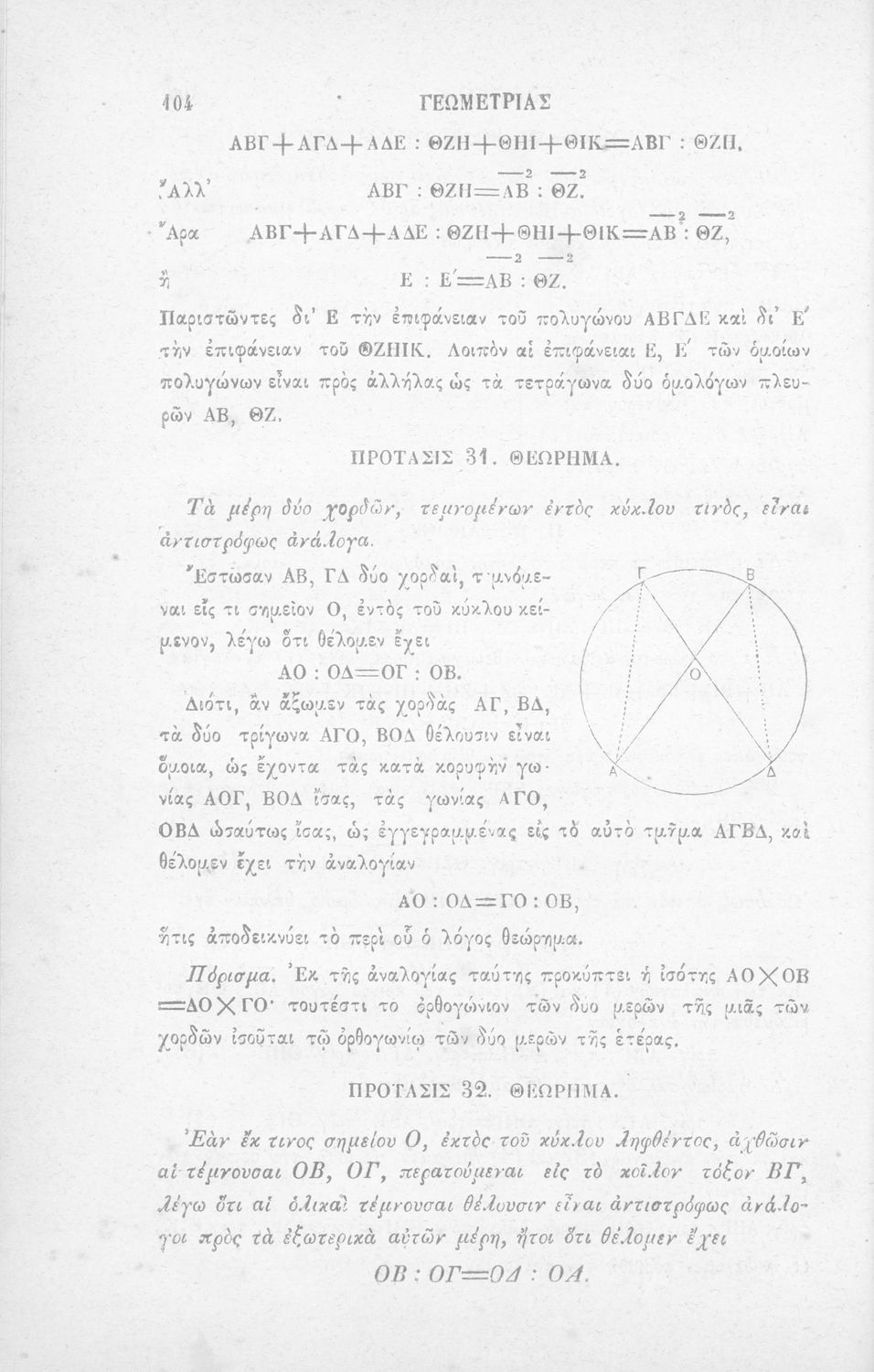 Σχολικό εγχειρίδιο Γεωμετρίας που είναι χωρισμένο σε θεωρήματα και τις λύσεις τους.