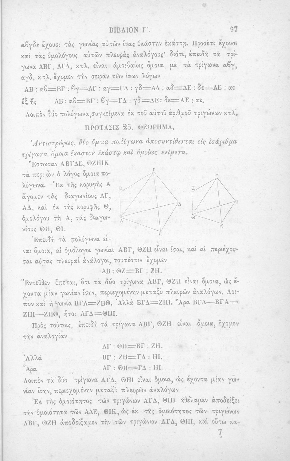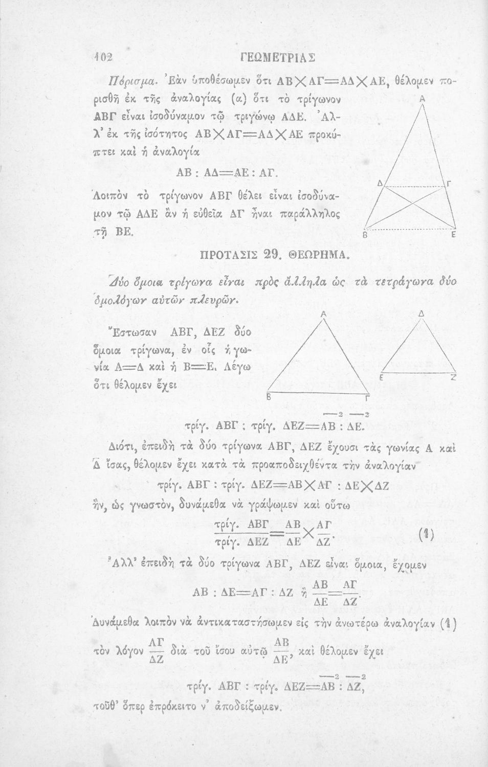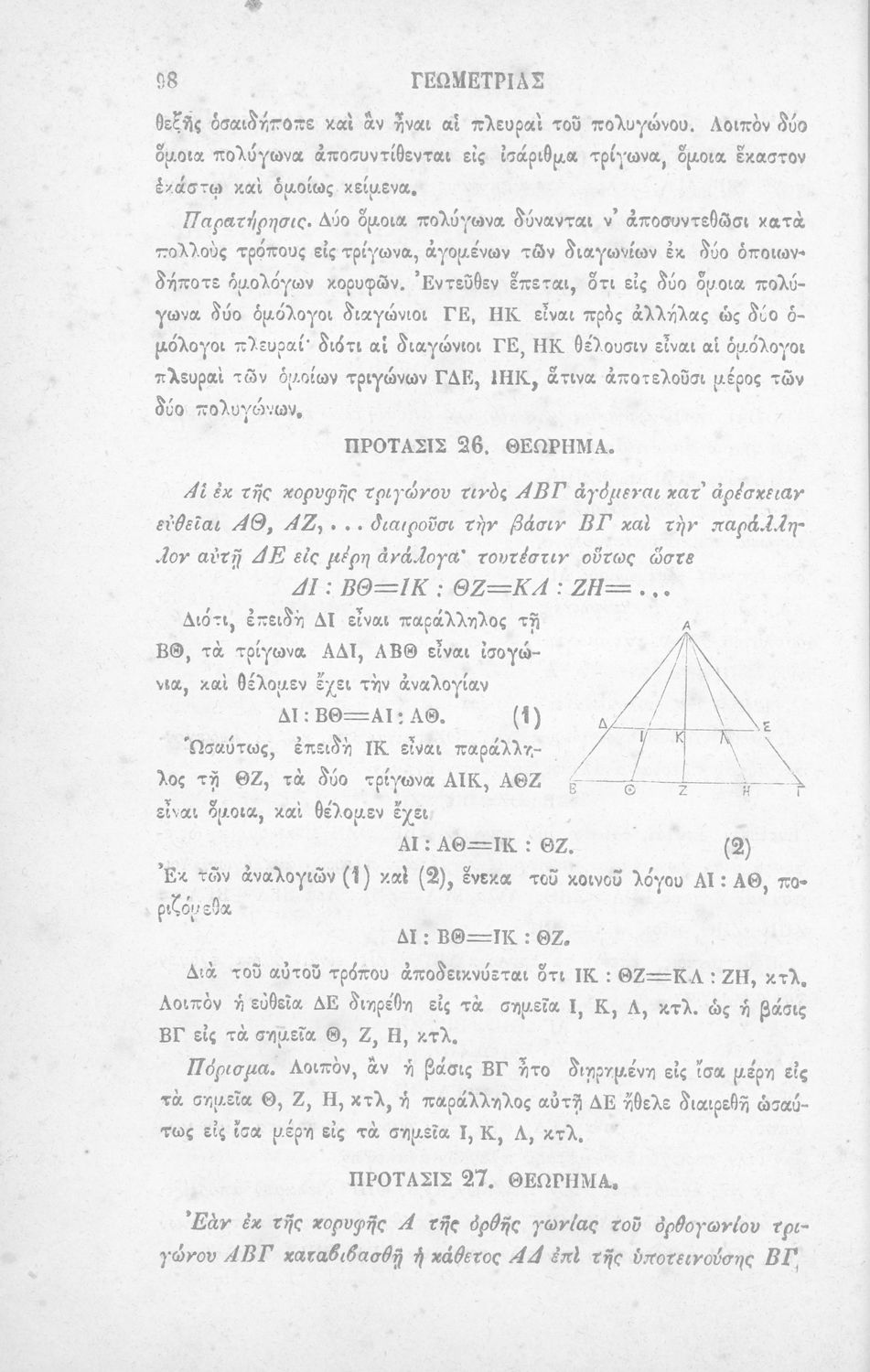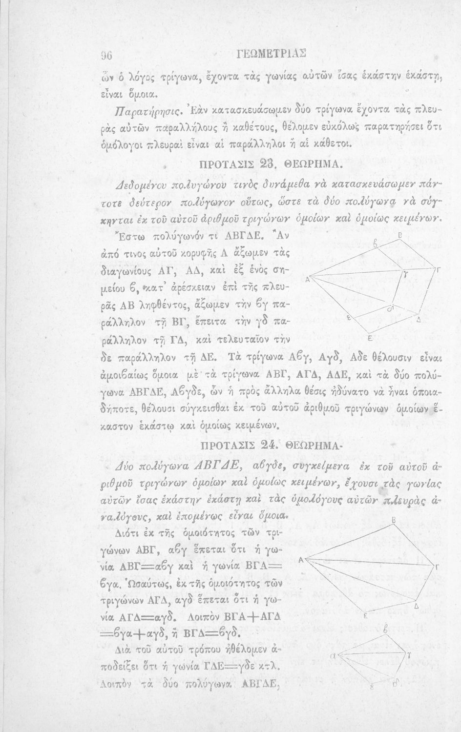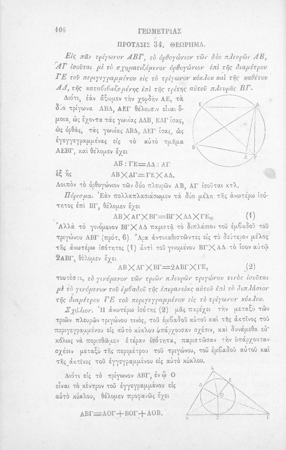 Παρουσίαση περιεχομένου: Σχολικό εγχειρίδιο Γεωμετρίας που είναι χωρισμένο σε θεωρήματα και τις λύσεις τους.