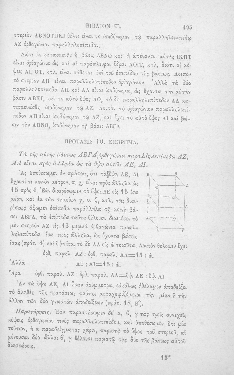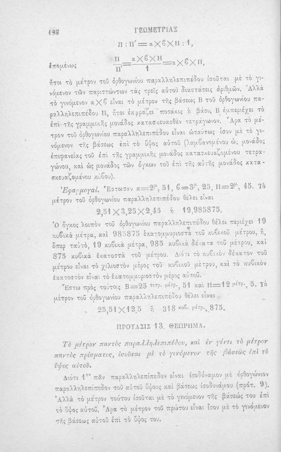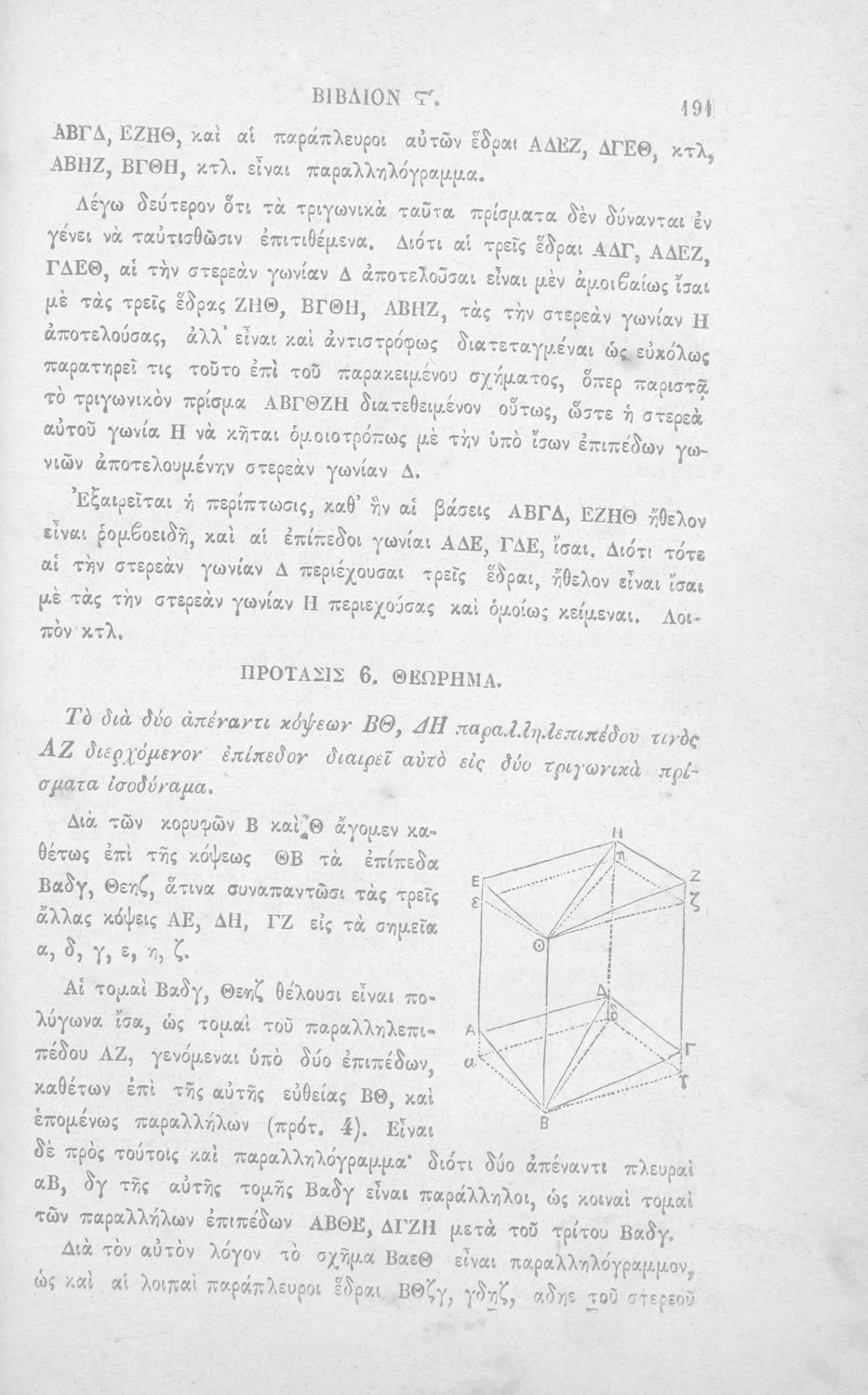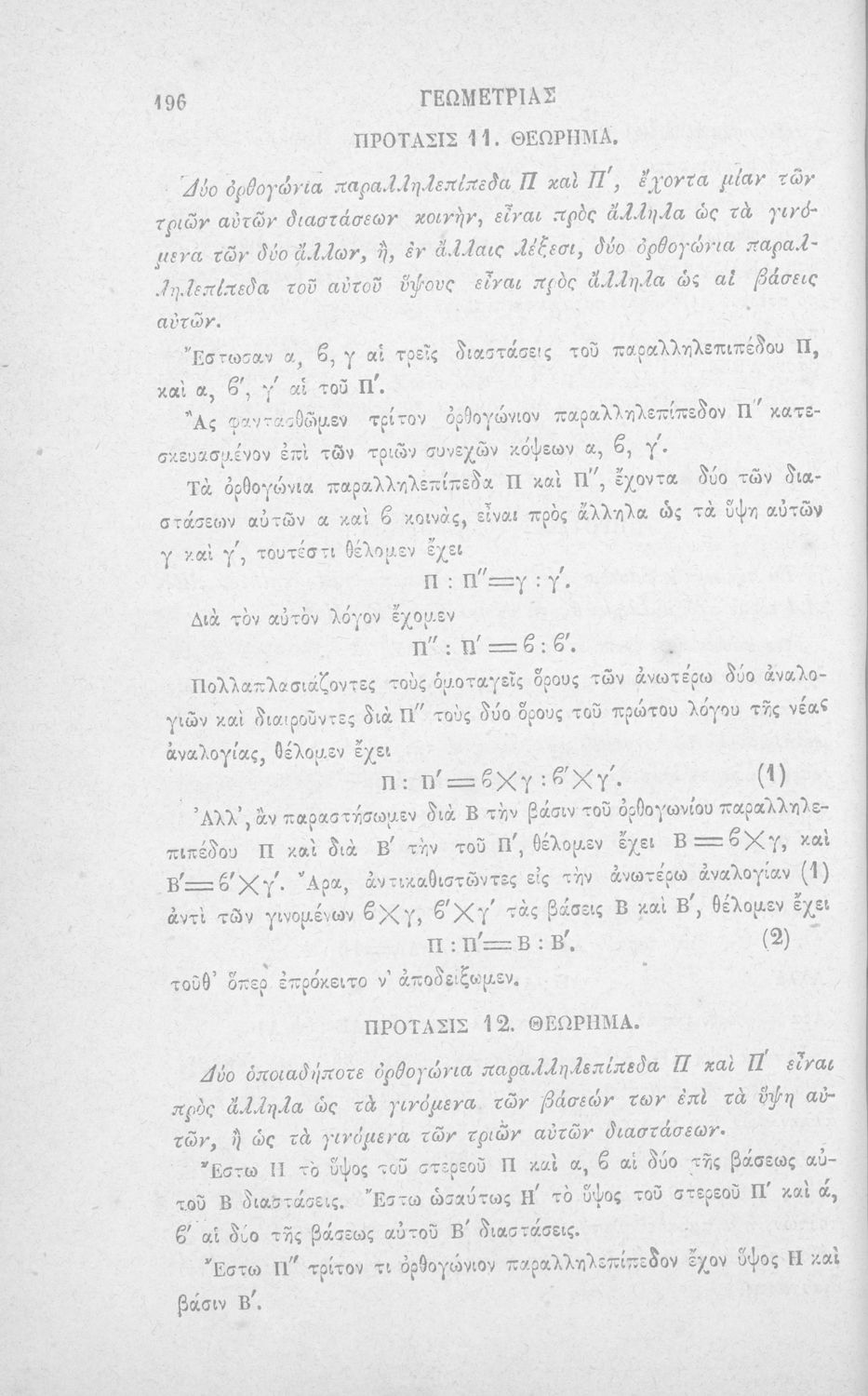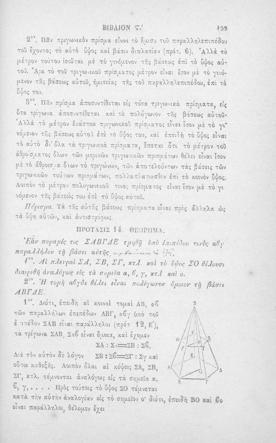 Σχολικό εγχειρίδιο Γεωμετρίας που είναι χωρισμένο σε θεωρήματα και τις λύσεις τους.