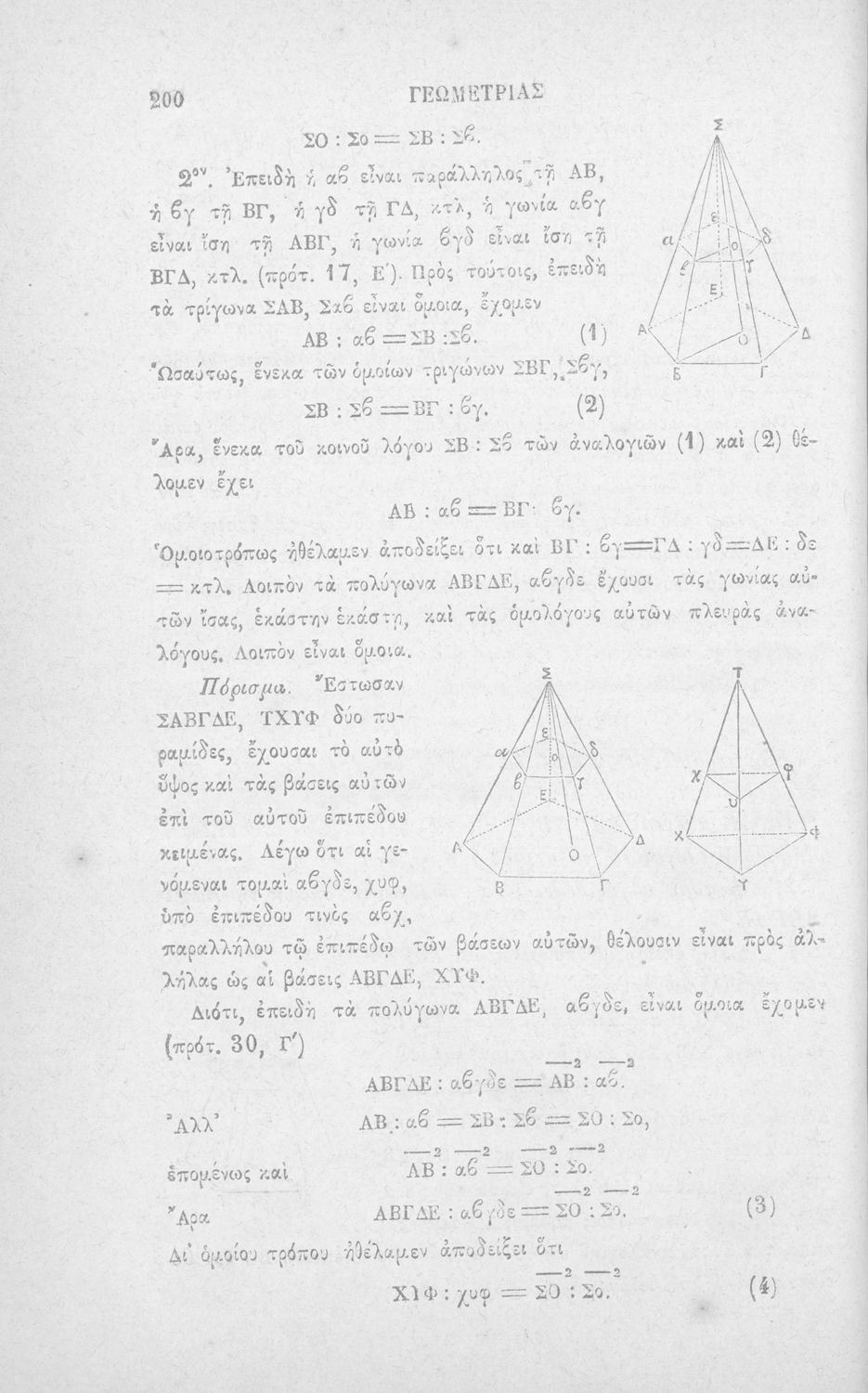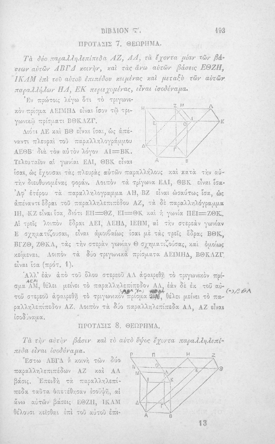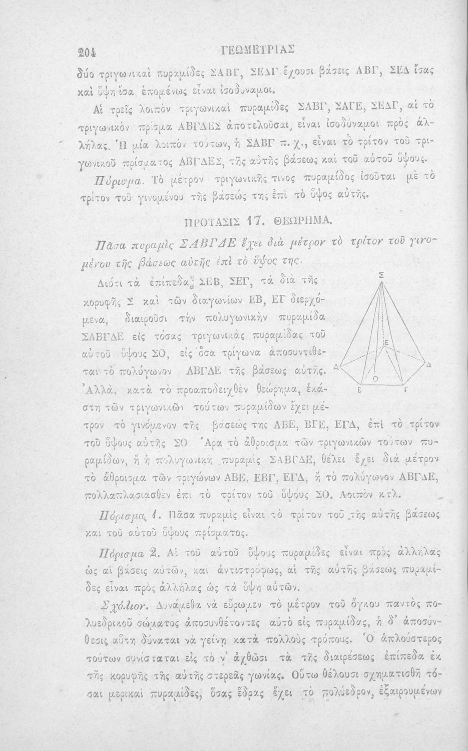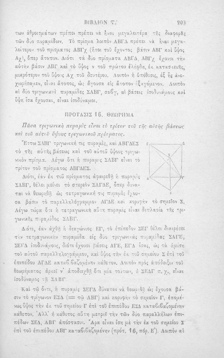 Σχολικό εγχειρίδιο Γεωμετρίας που είναι χωρισμένο σε θεωρήματα και τις λύσεις τους.