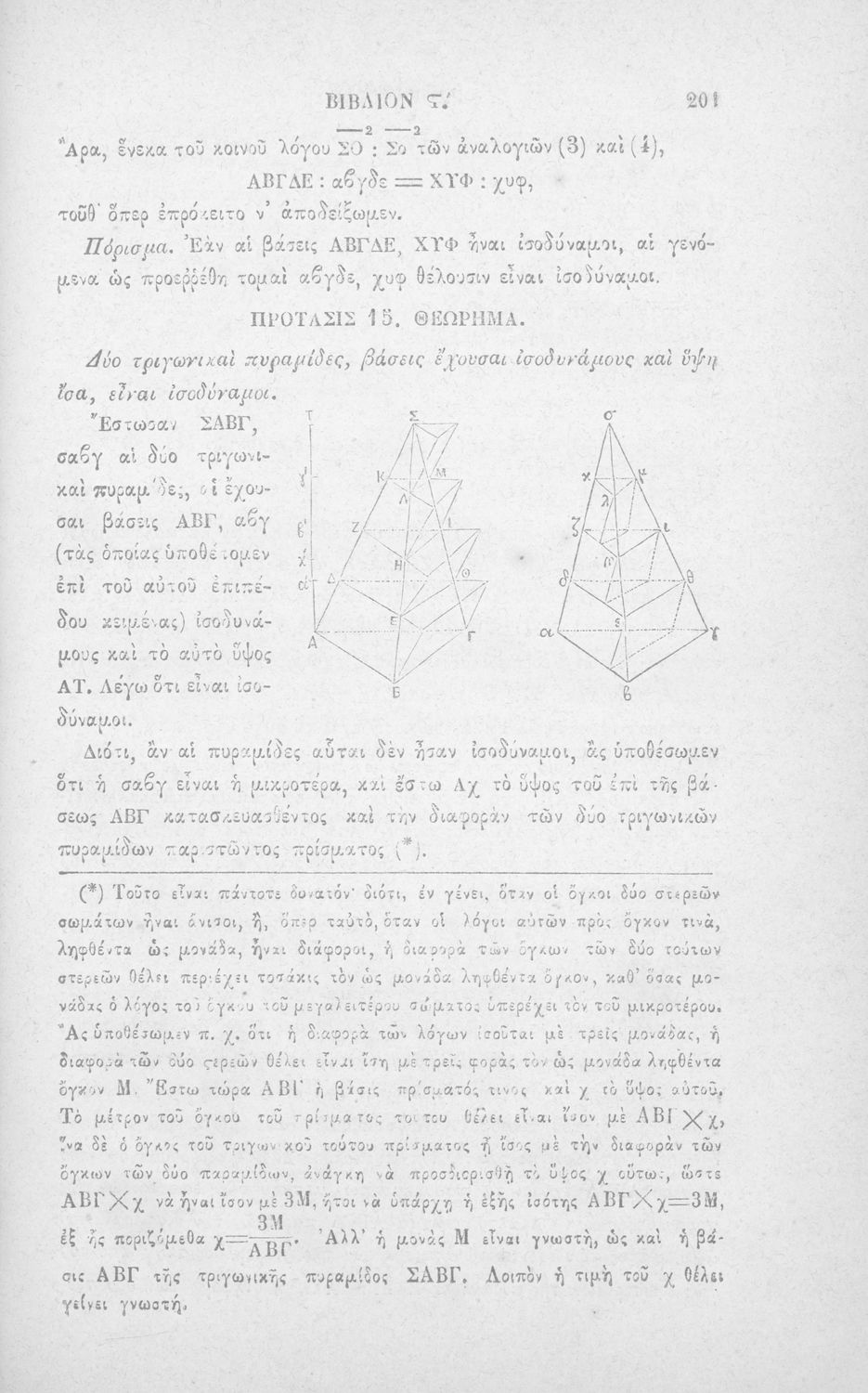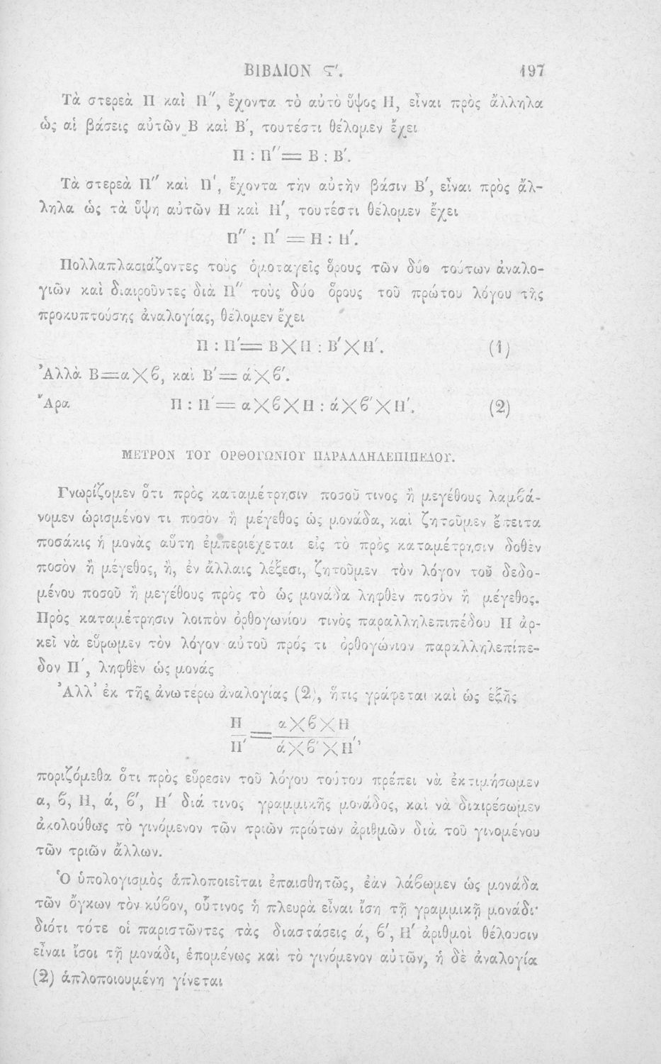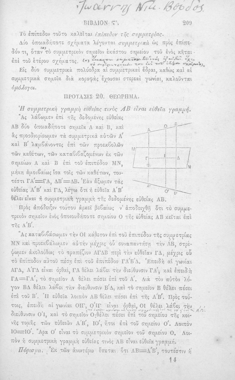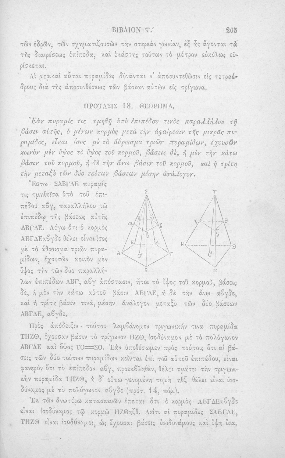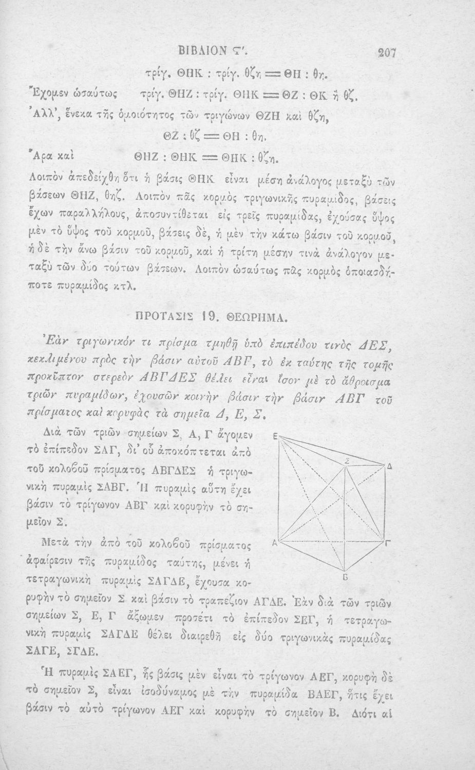Σχολικό εγχειρίδιο Γεωμετρίας που είναι χωρισμένο σε θεωρήματα και τις λύσεις τους.