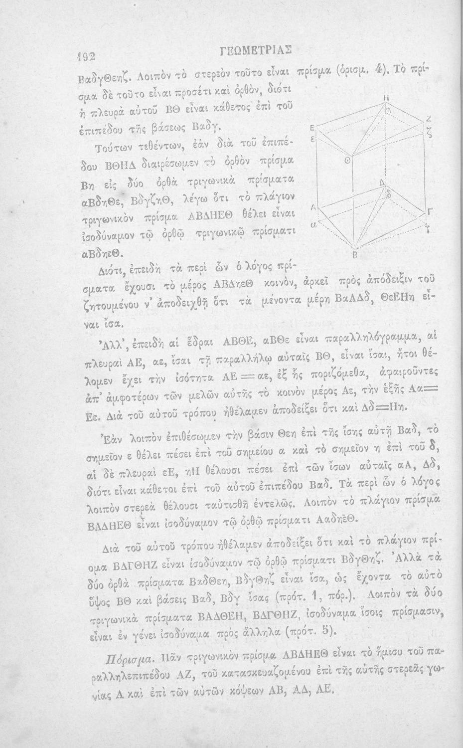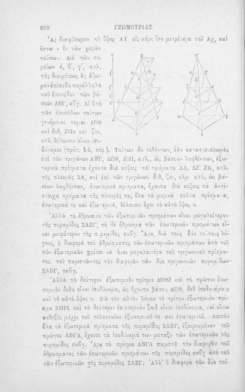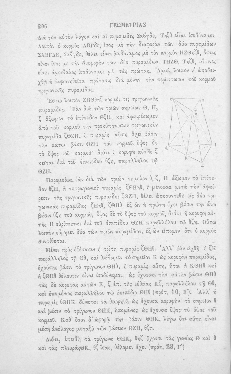 Σχολικό εγχειρίδιο Γεωμετρίας που είναι χωρισμένο σε αξιώματα, θεωρήματα και πορίσματα και εστιάζει στην Επίπεδη Γεωμετρία και τη Στερεομετρία.