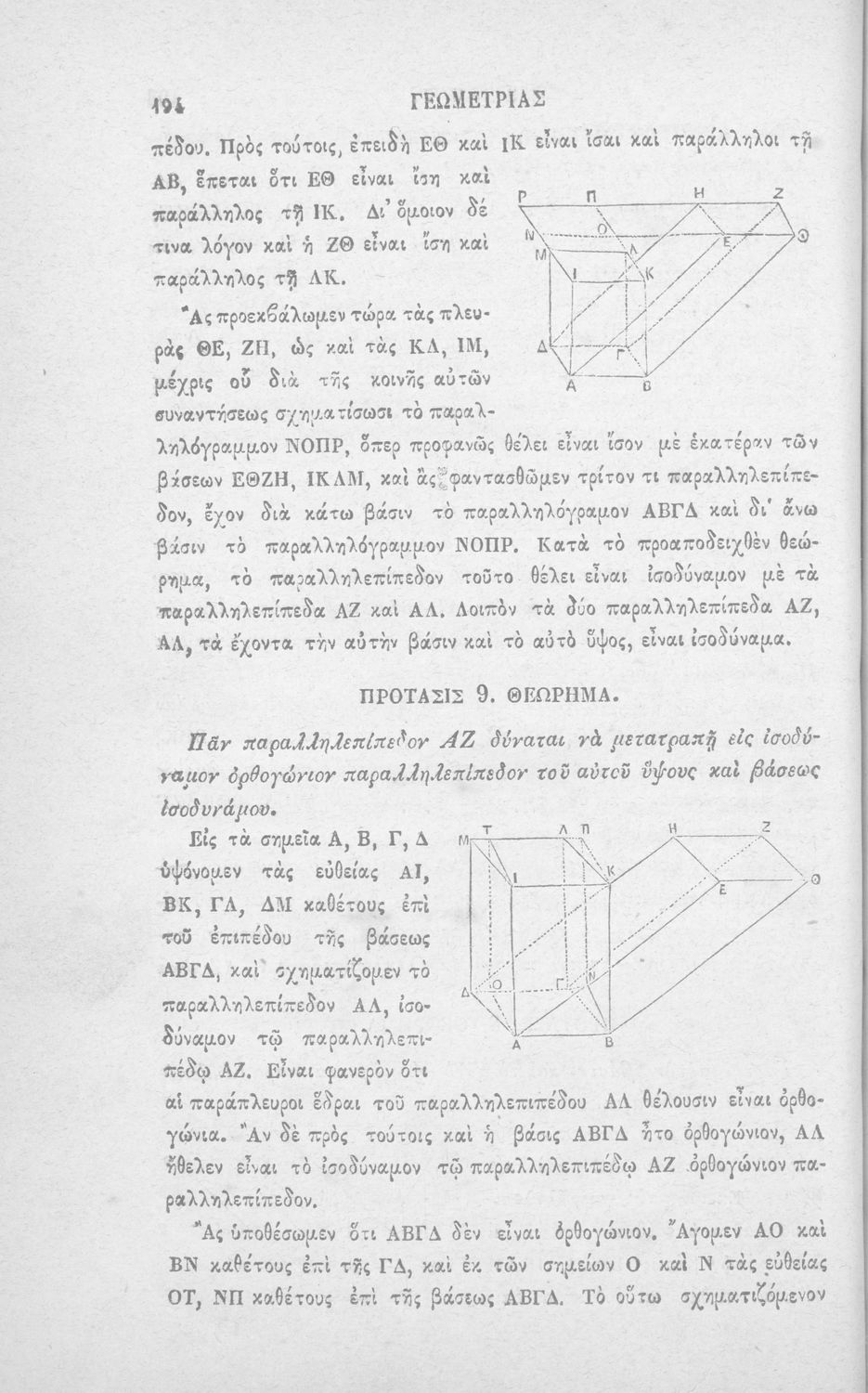 Παρουσίαση περιεχομένου: Σχολικό εγχειρίδιο Γεωμετρίας που είναι χωρισμένο σε θεωρήματα και τις λύσεις τους.