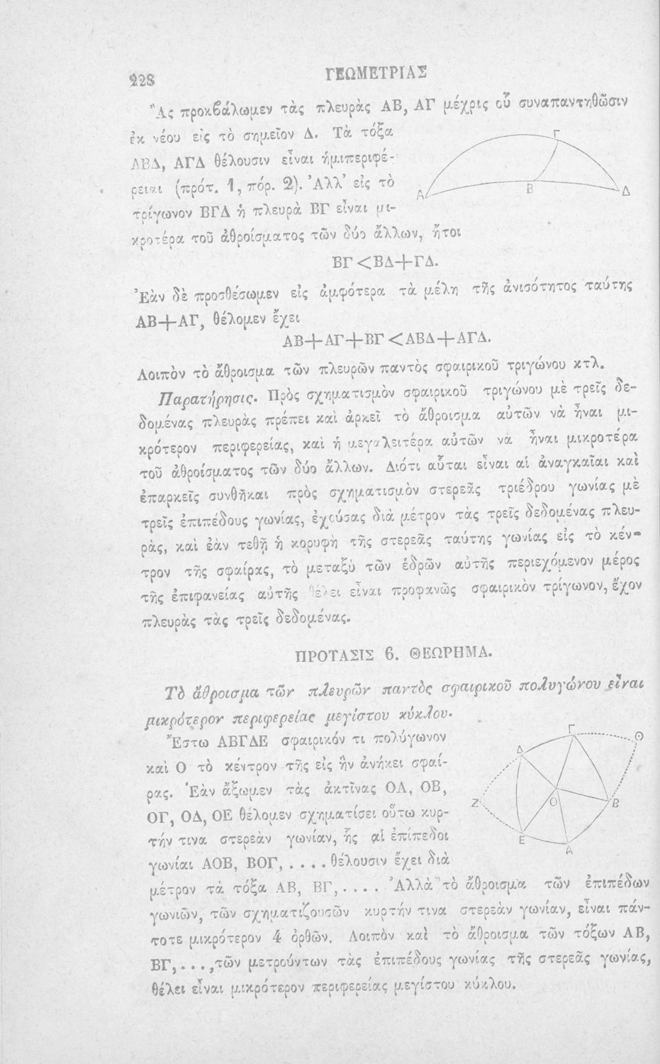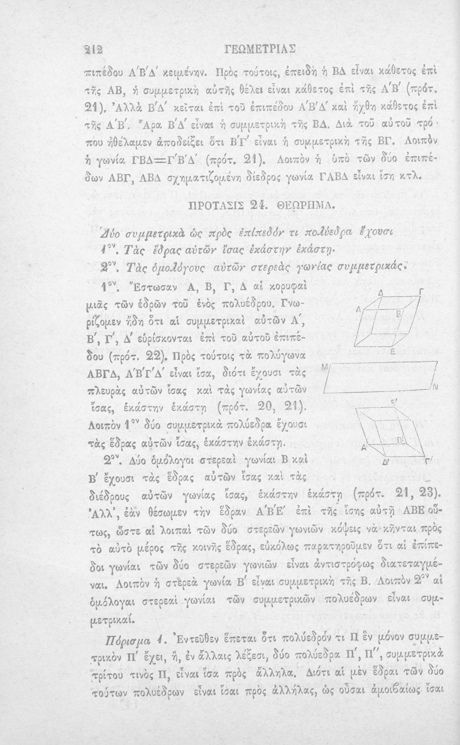 Παρουσίαση περιεχομένου: Σχολικό εγχειρίδιο Γεωμετρίας που είναι χωρισμένο σε θεωρήματα και τις λύσεις τους.