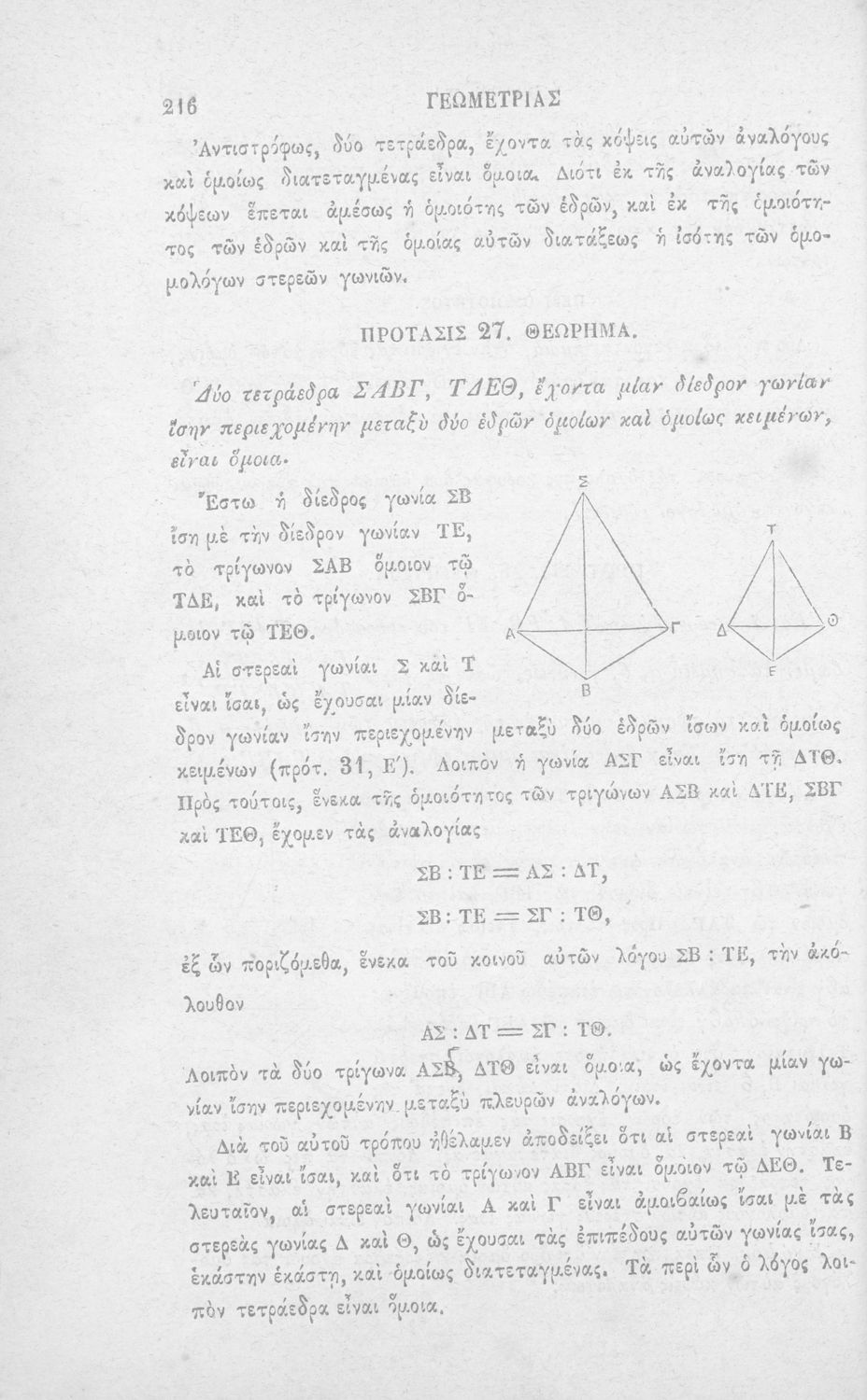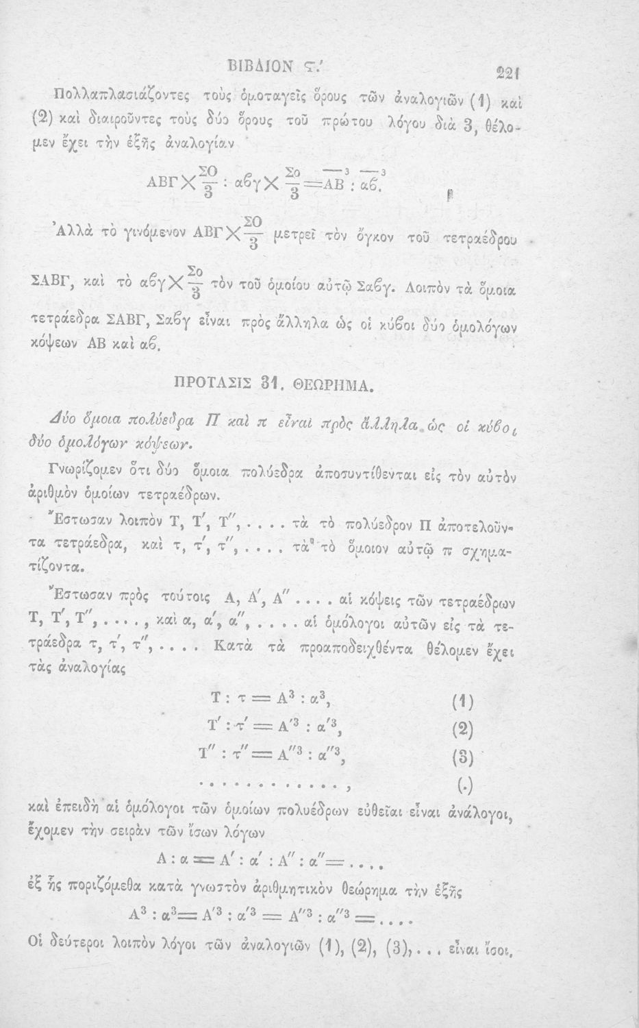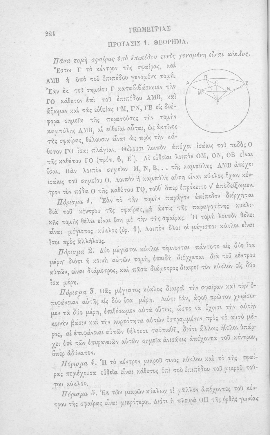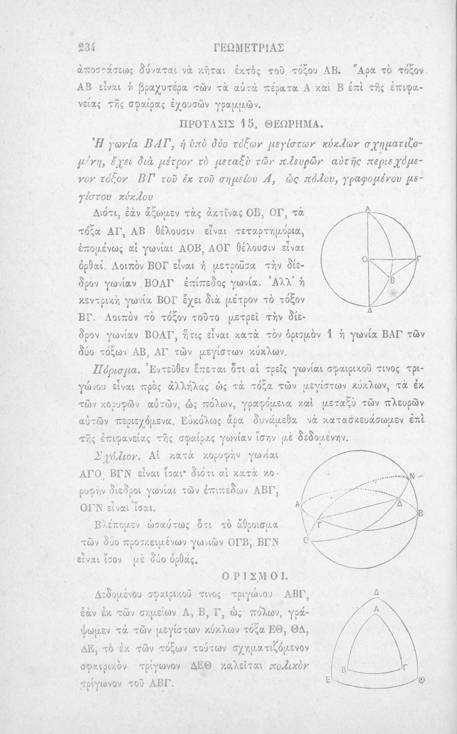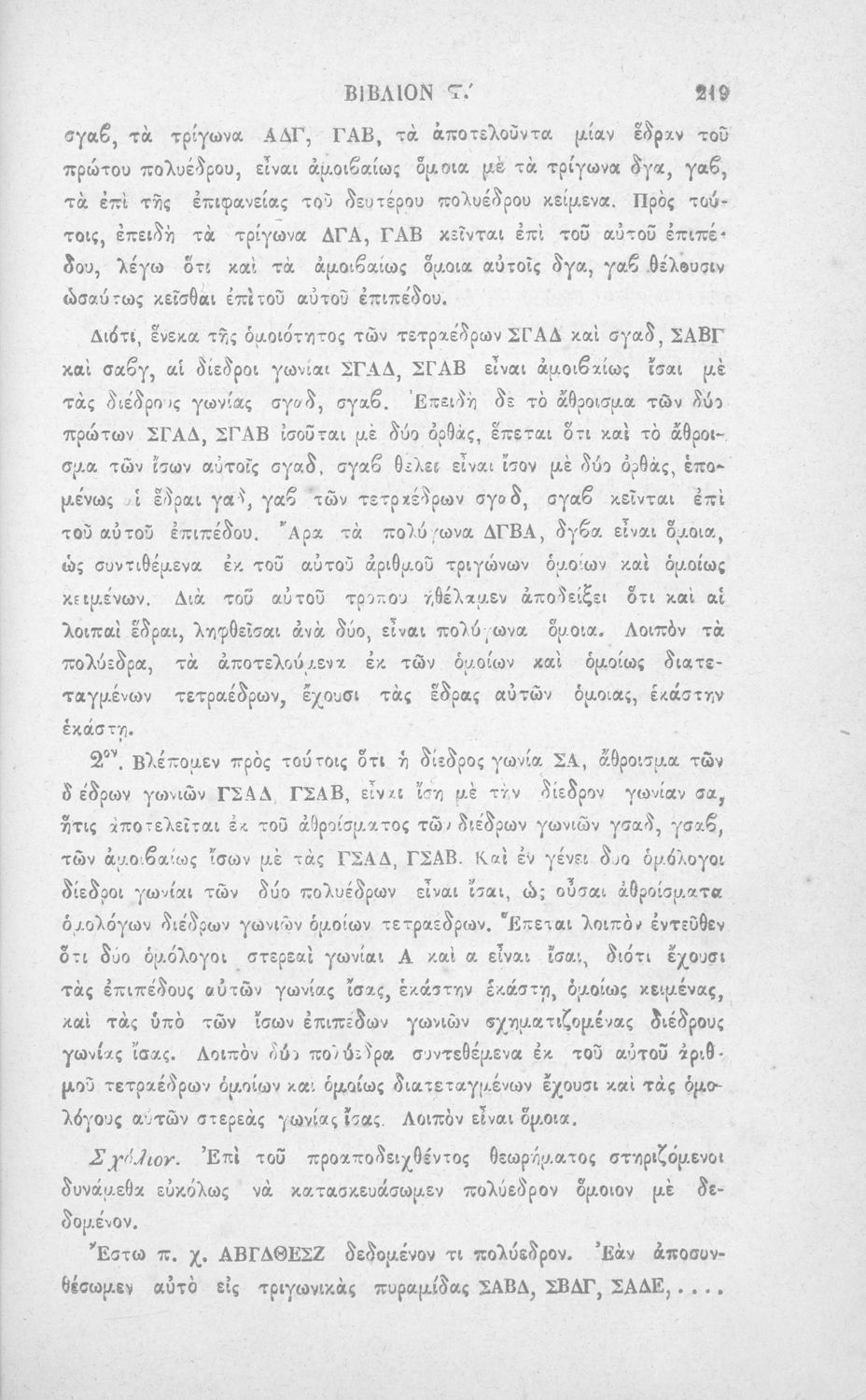 Σχολικό εγχειρίδιο Γεωμετρίας που είναι χωρισμένο σε θεωρήματα και τις λύσεις τους.