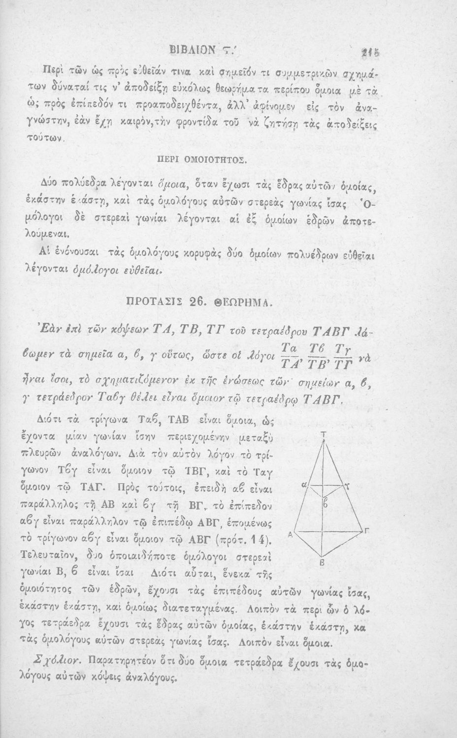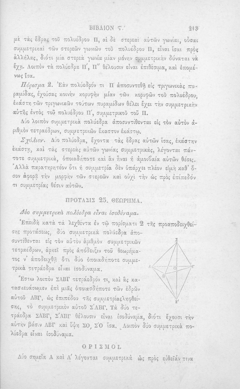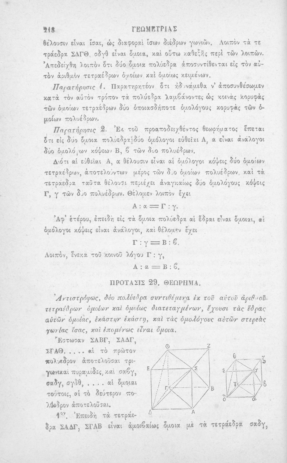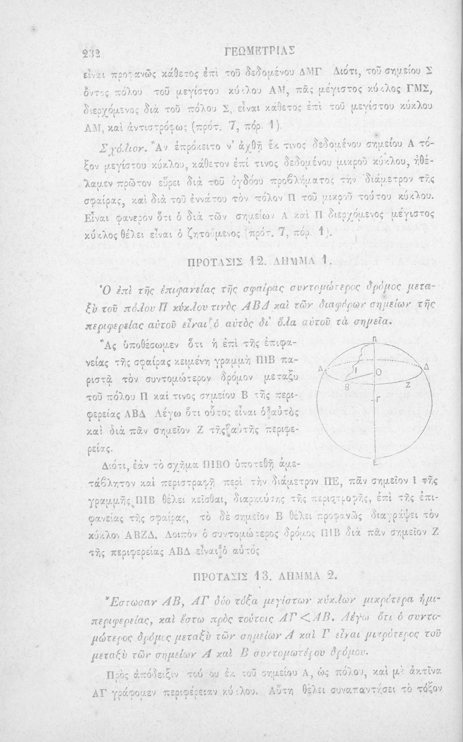 Σχολικό εγχειρίδιο Γεωμετρίας που είναι χωρισμένο σε θεωρήματα και τις λύσεις τους.