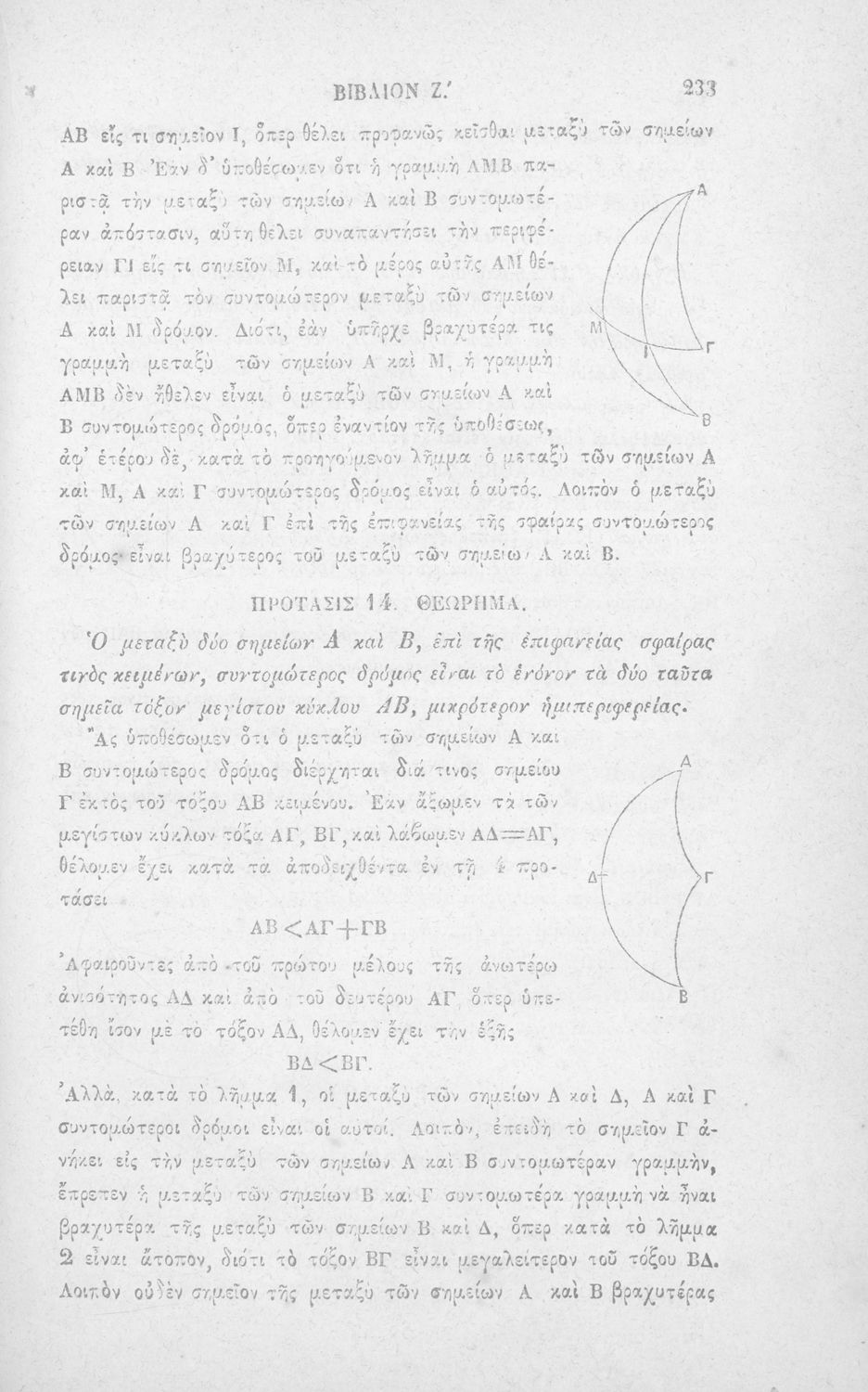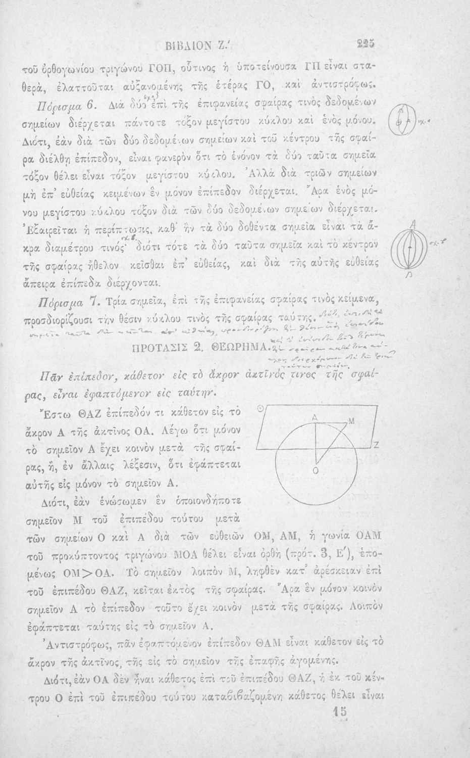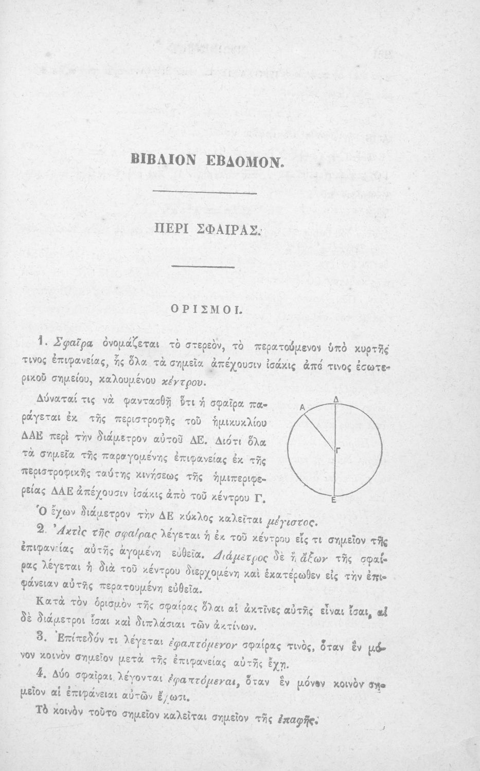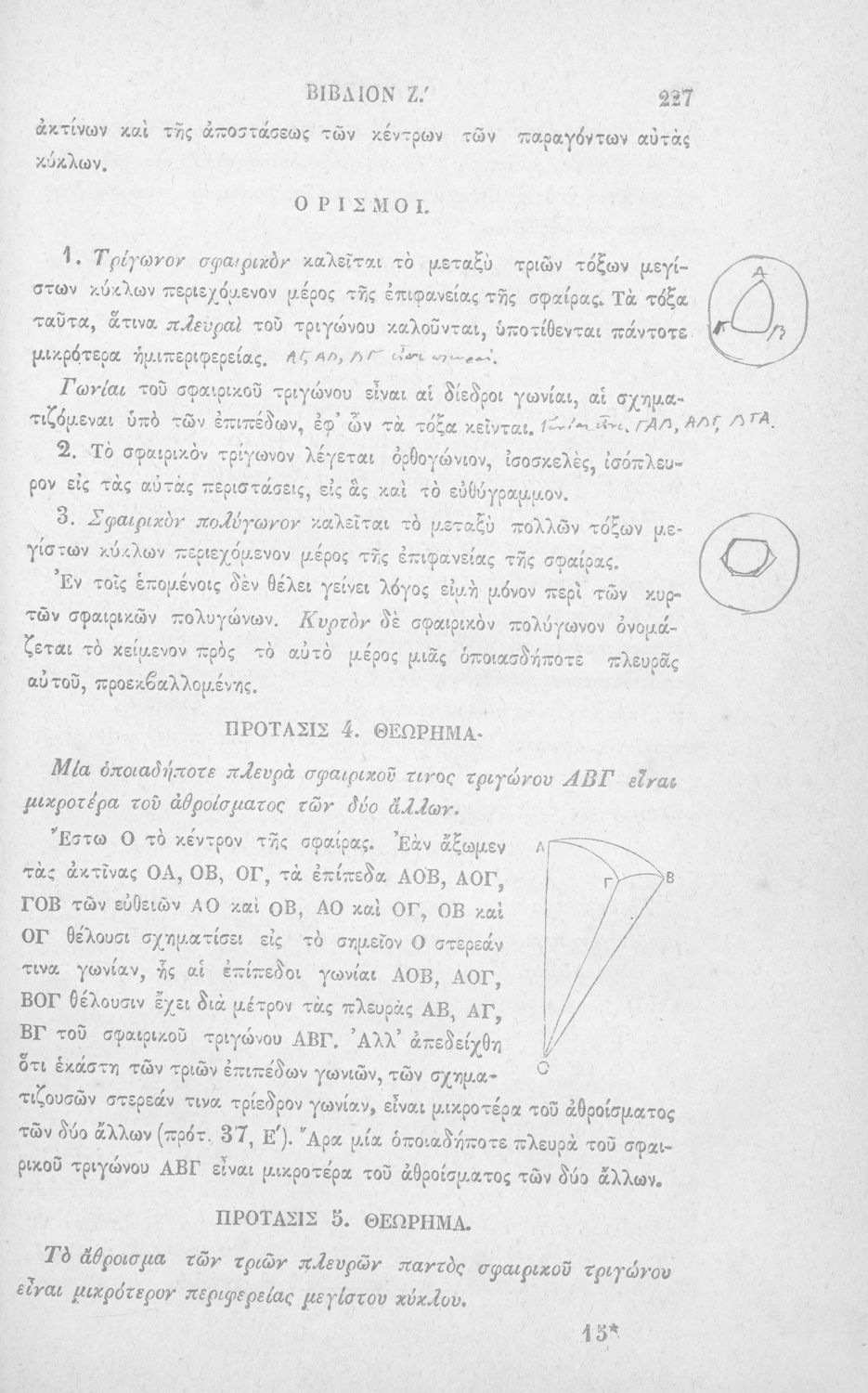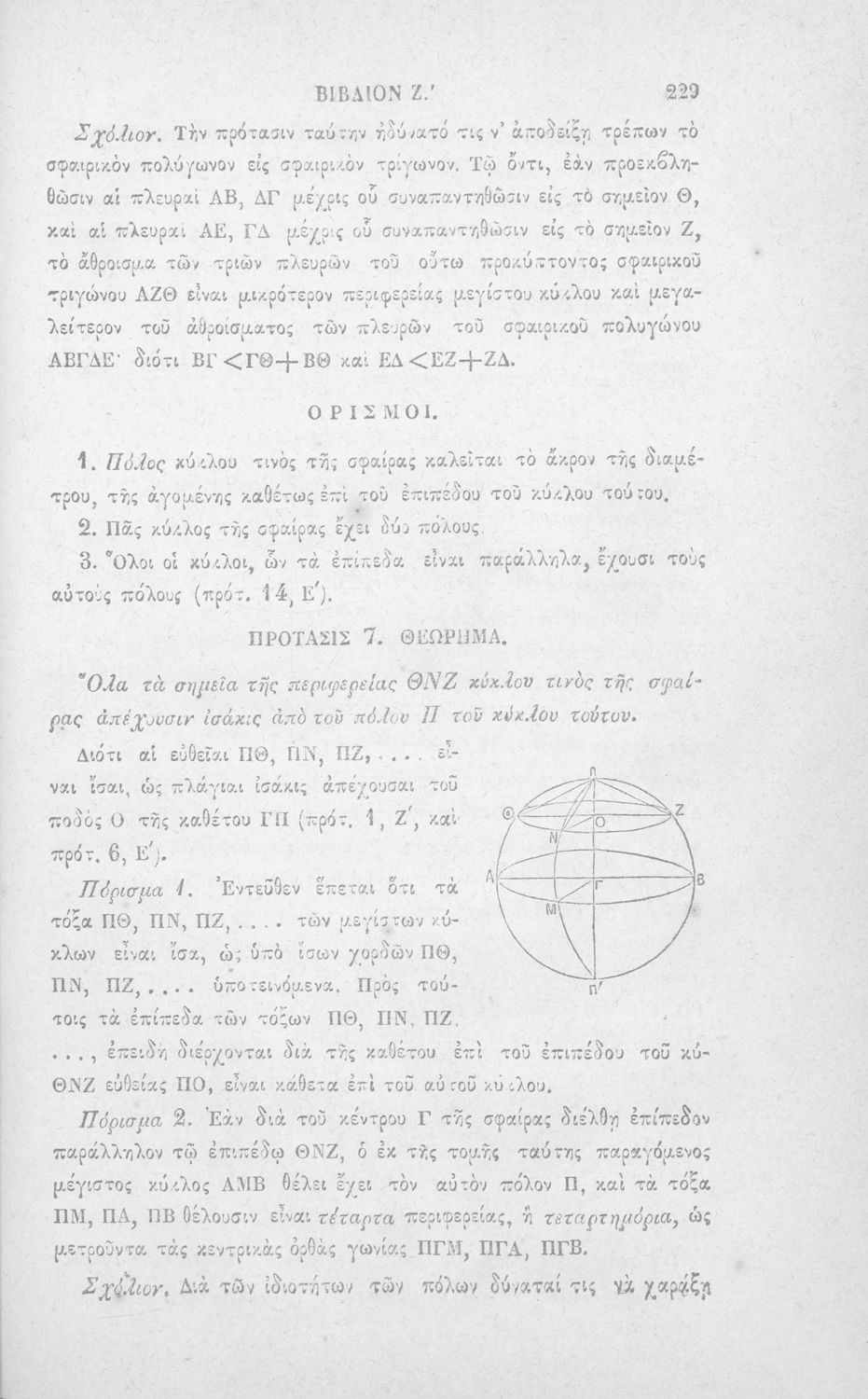 Σχολικό εγχειρίδιο Γεωμετρίας που είναι χωρισμένο σε θεωρήματα και τις λύσεις τους.