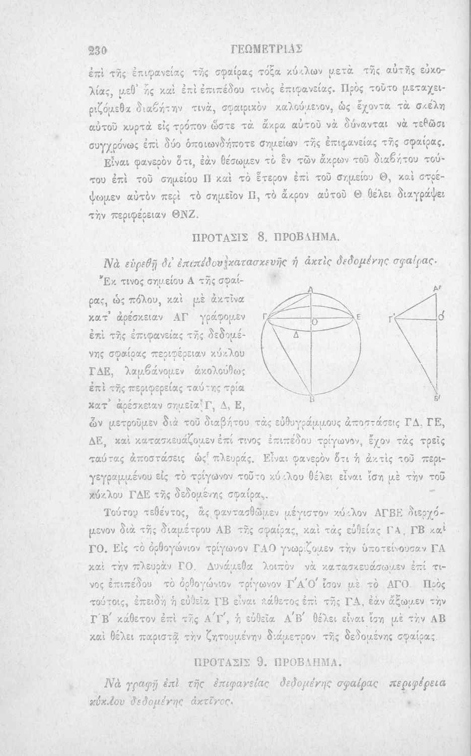 Σχολικό εγχειρίδιο Γεωμετρίας Γυμνασίων και Αστικών Σχολείων χωρισμένο σε Επιπεδομετρία και Στερεομετρία. Περιλαμβάνει και στοιχεία Χωρομετρίας.
