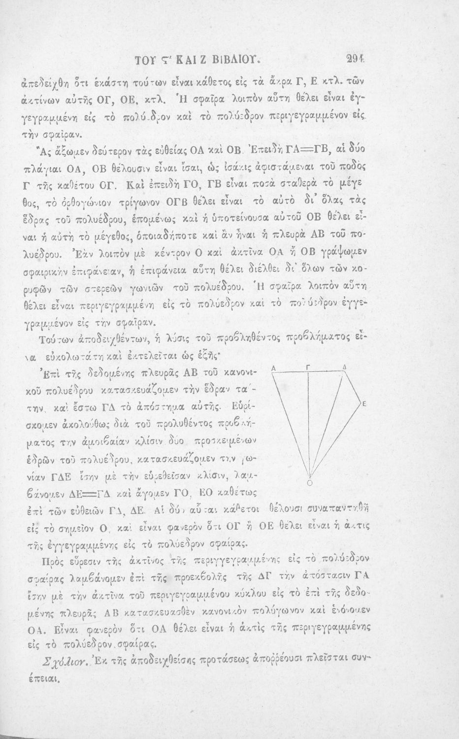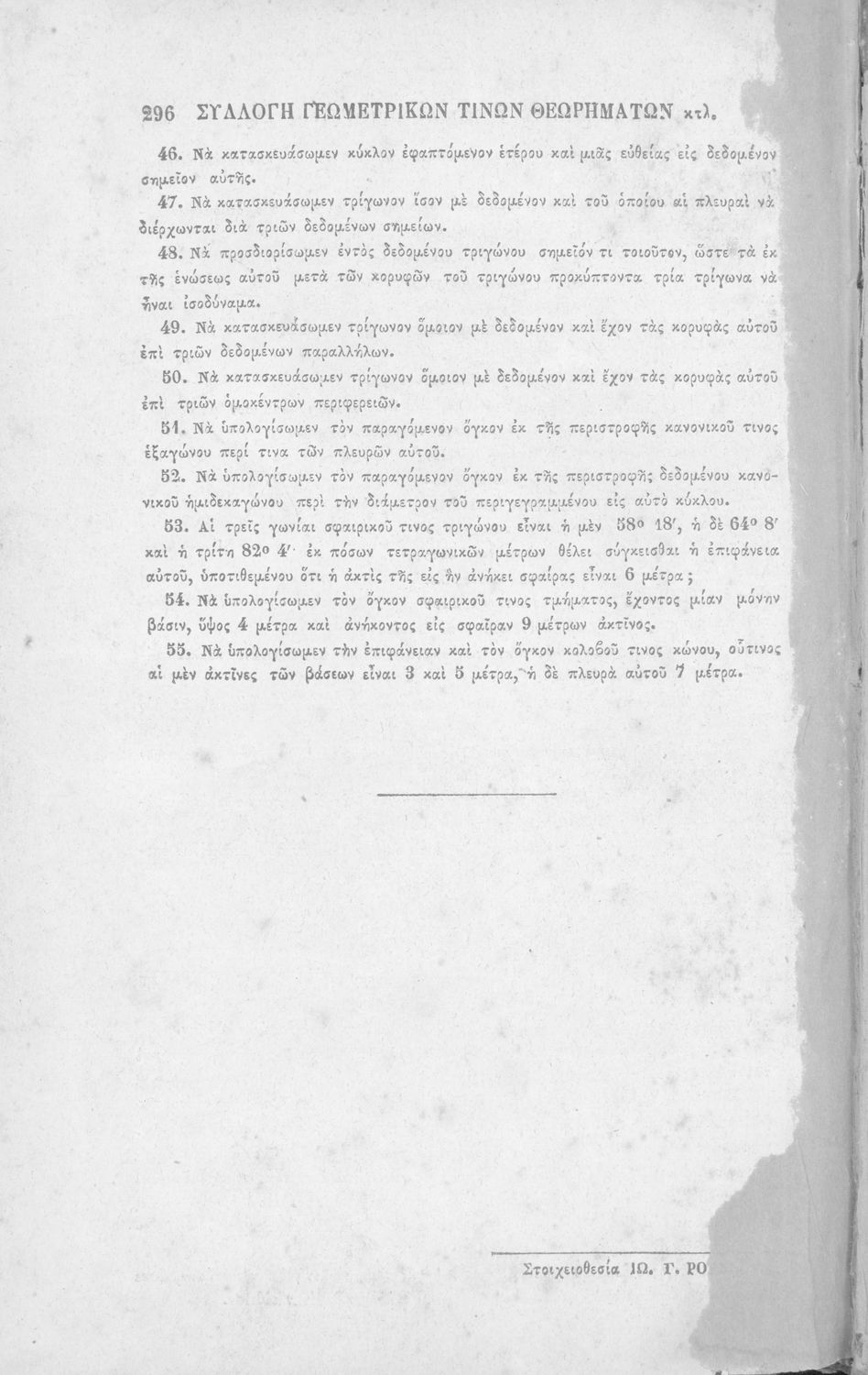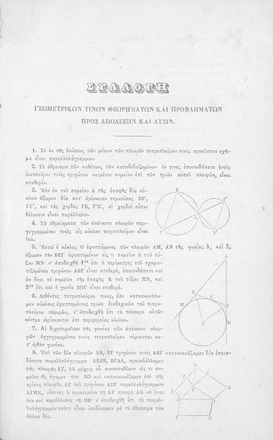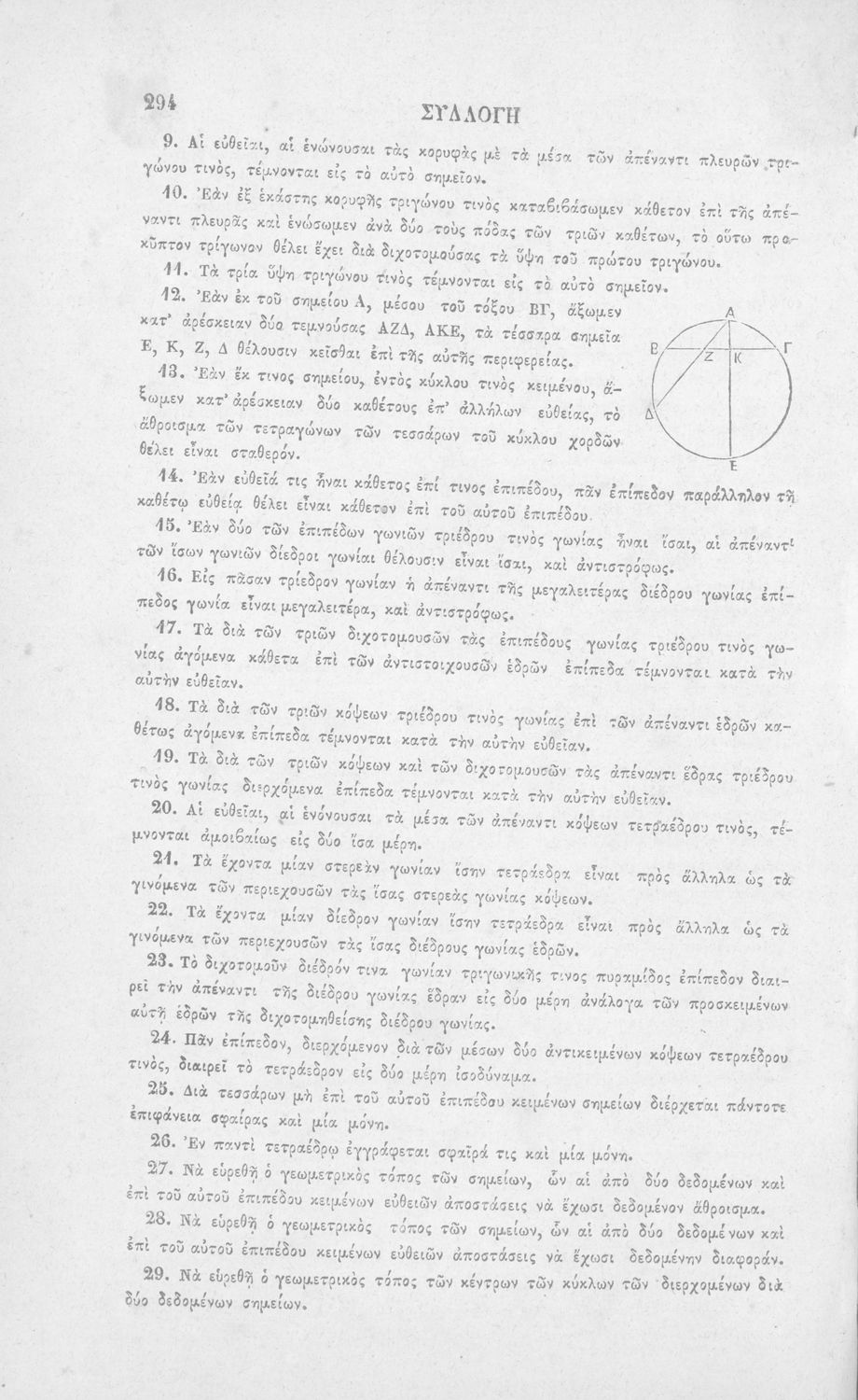 Σχολικό εγχειρίδιο Γεωμετρίας που είναι χωρισμένο σε θεωρήματα και τις λύσεις τους.