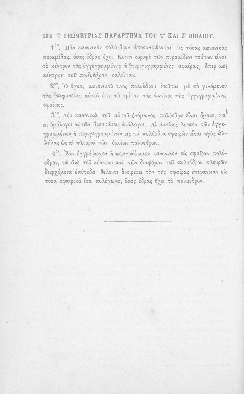 Σχολικό εγχειρίδιο Γεωμετρίας που είναι χωρισμένο σε αξιώματα, θεωρήματα και πορίσματα και εστιάζει στην Επίπεδη Γεωμετρία και τη Στερεομετρία.