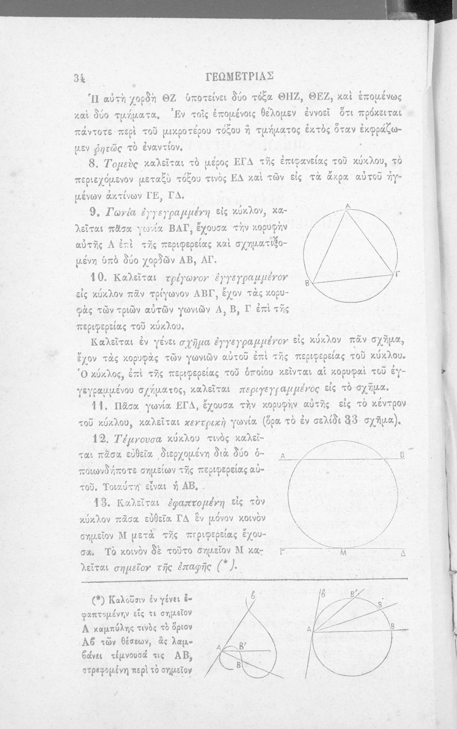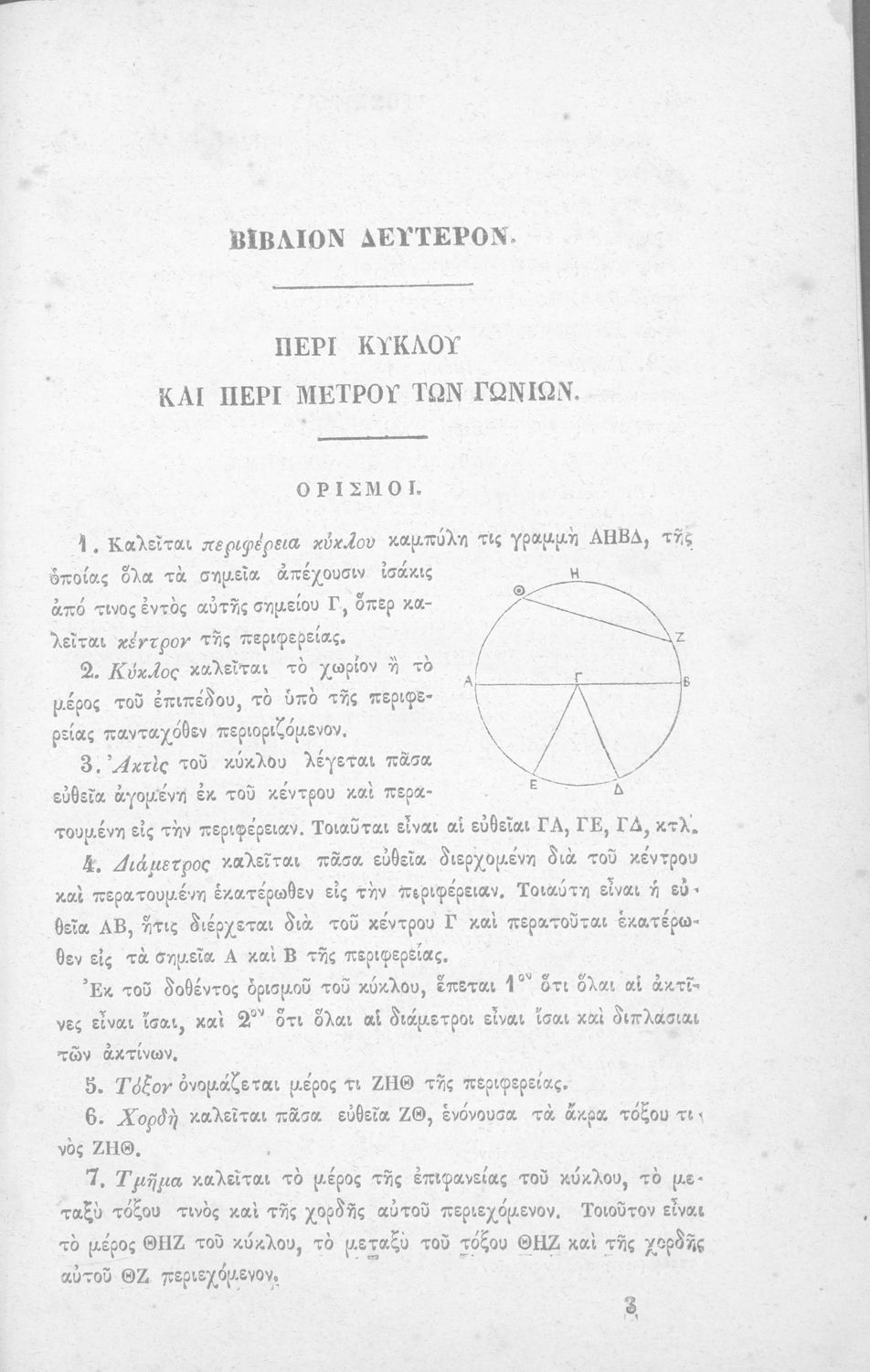 Σχολικό εγχειρίδιο Γεωμετρίας που είναι χωρισμένο σε αξιώματα, θεωρήματα και πορίσματα και εστιάζει στην Επίπεδη Γεωμετρία και τη Στερεομετρία.