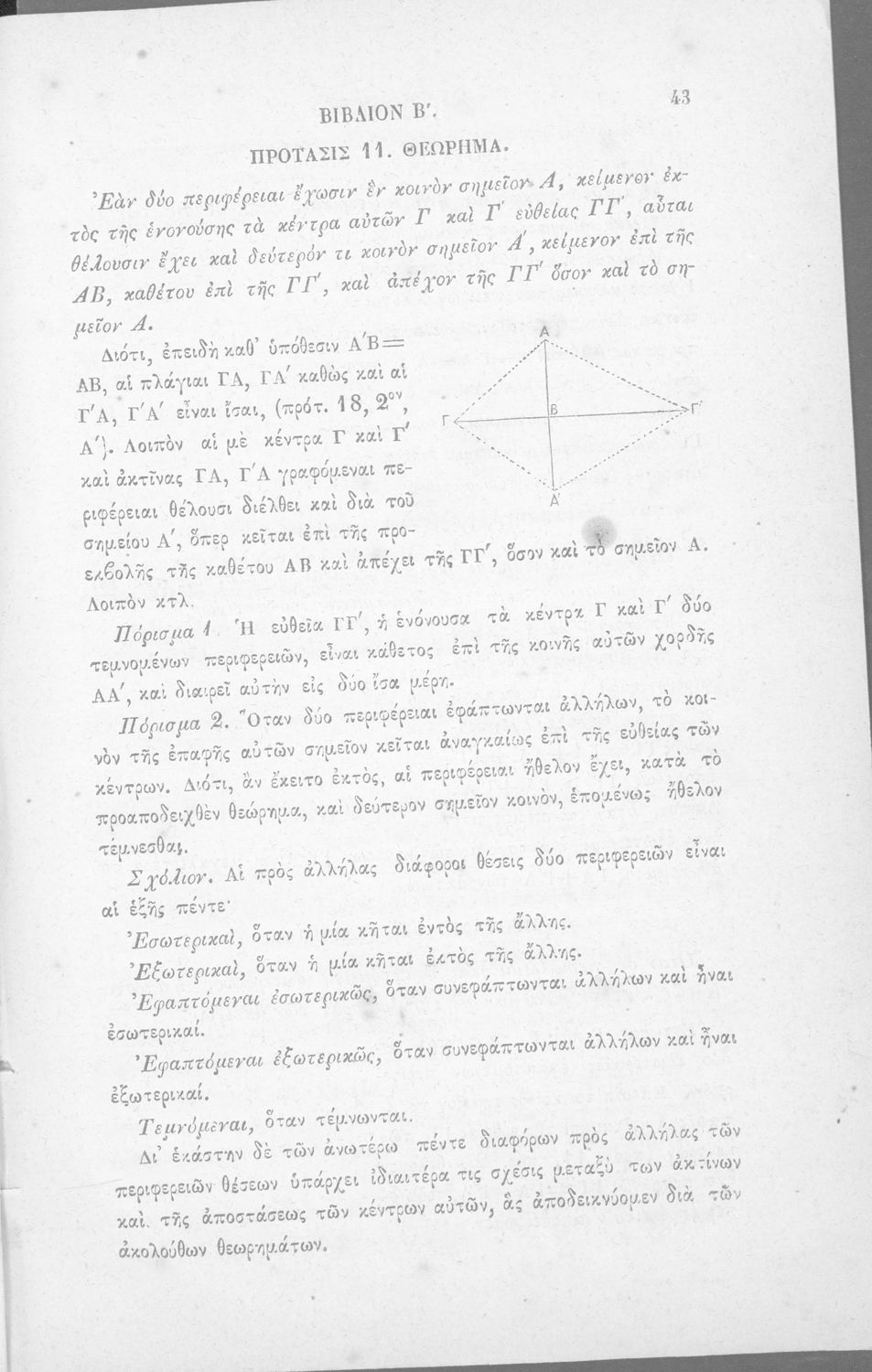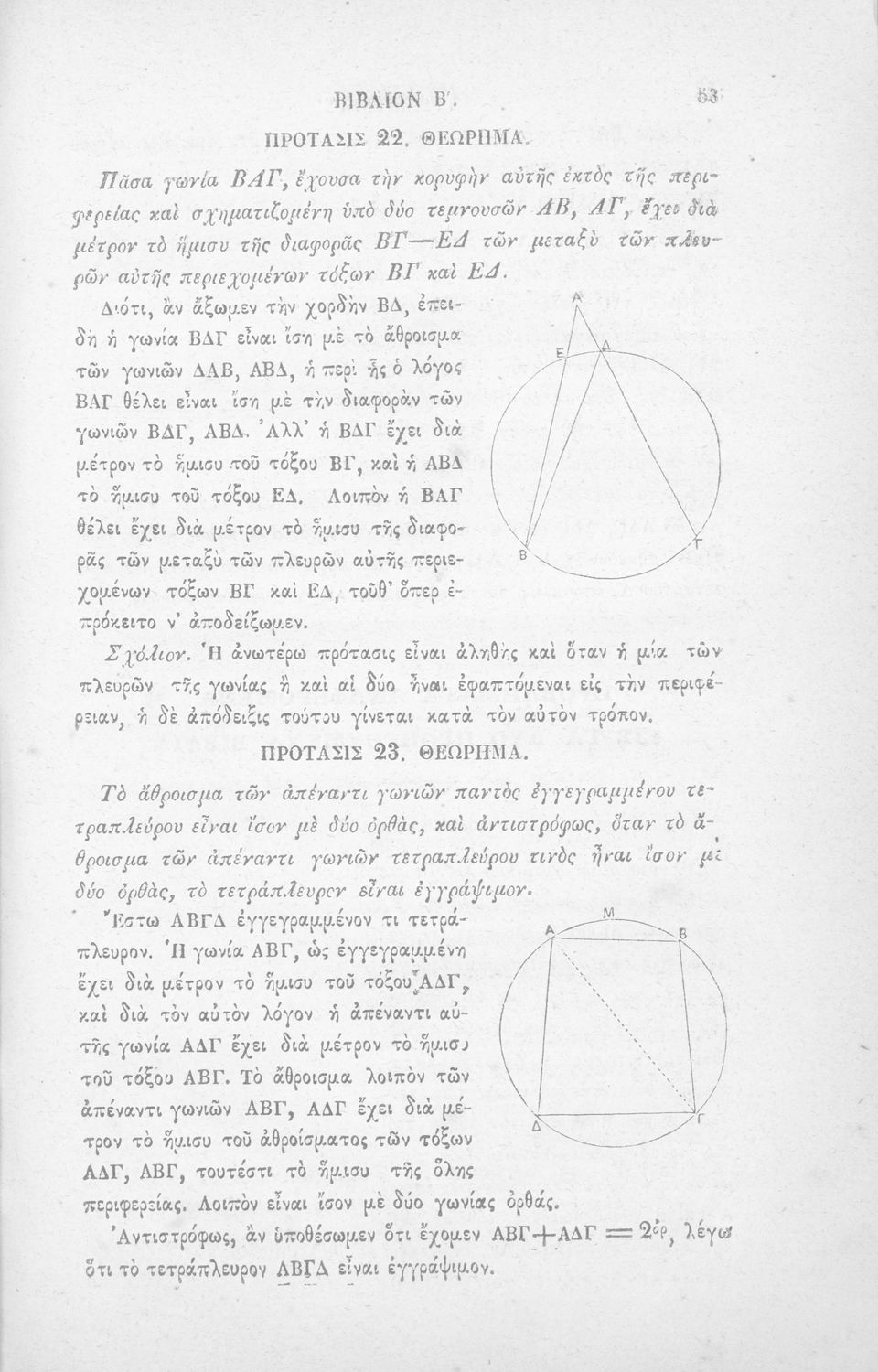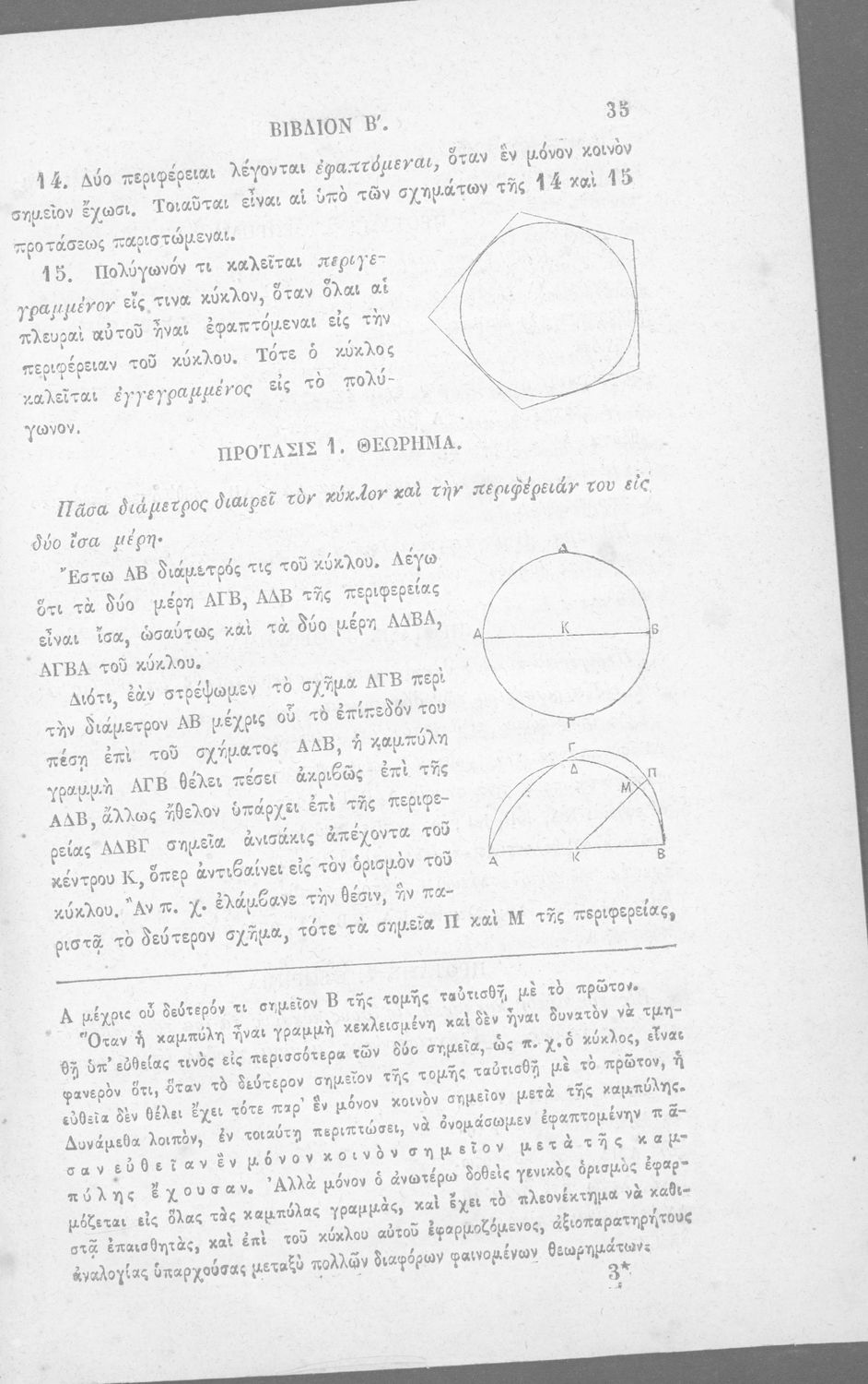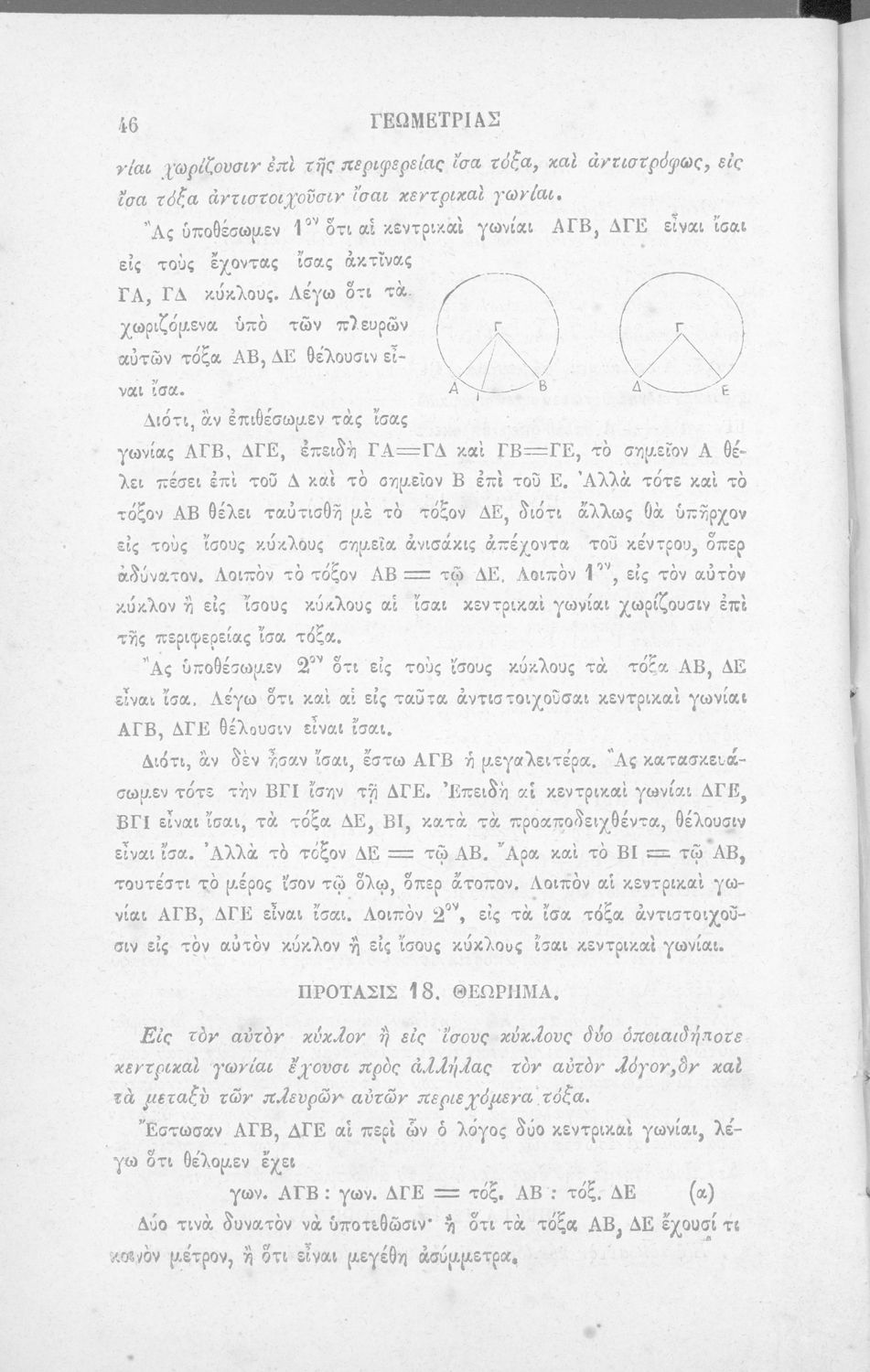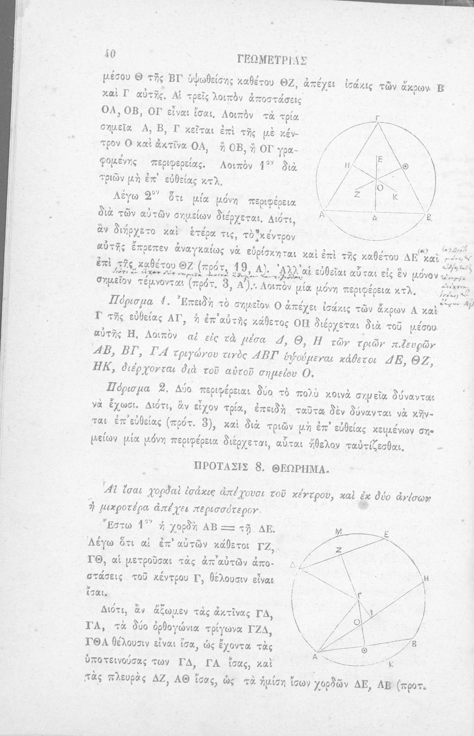 Σχολικό εγχειρίδιο Γεωμετρίας που είναι χωρισμένο σε θεωρήματα και τις λύσεις τους.