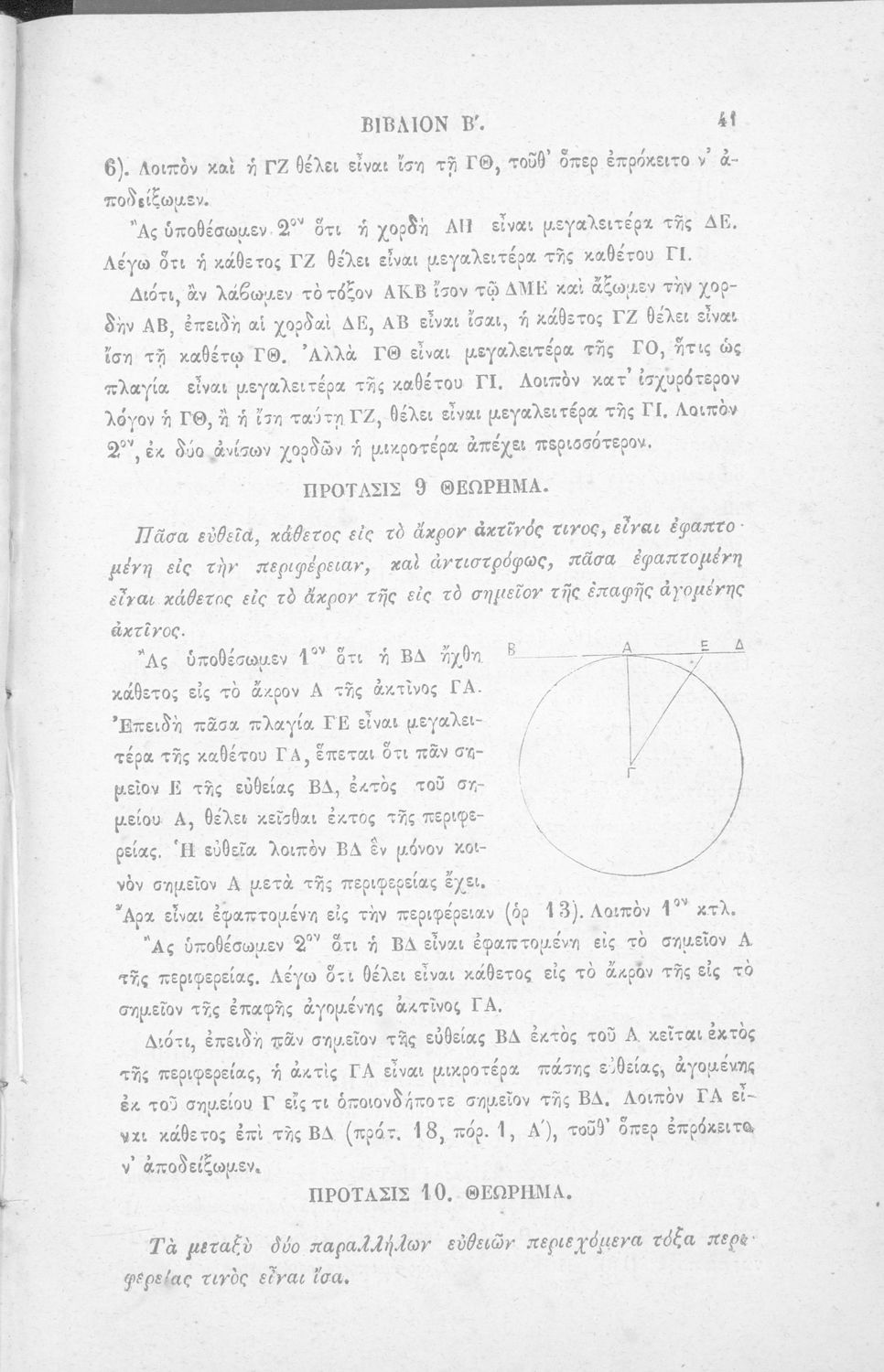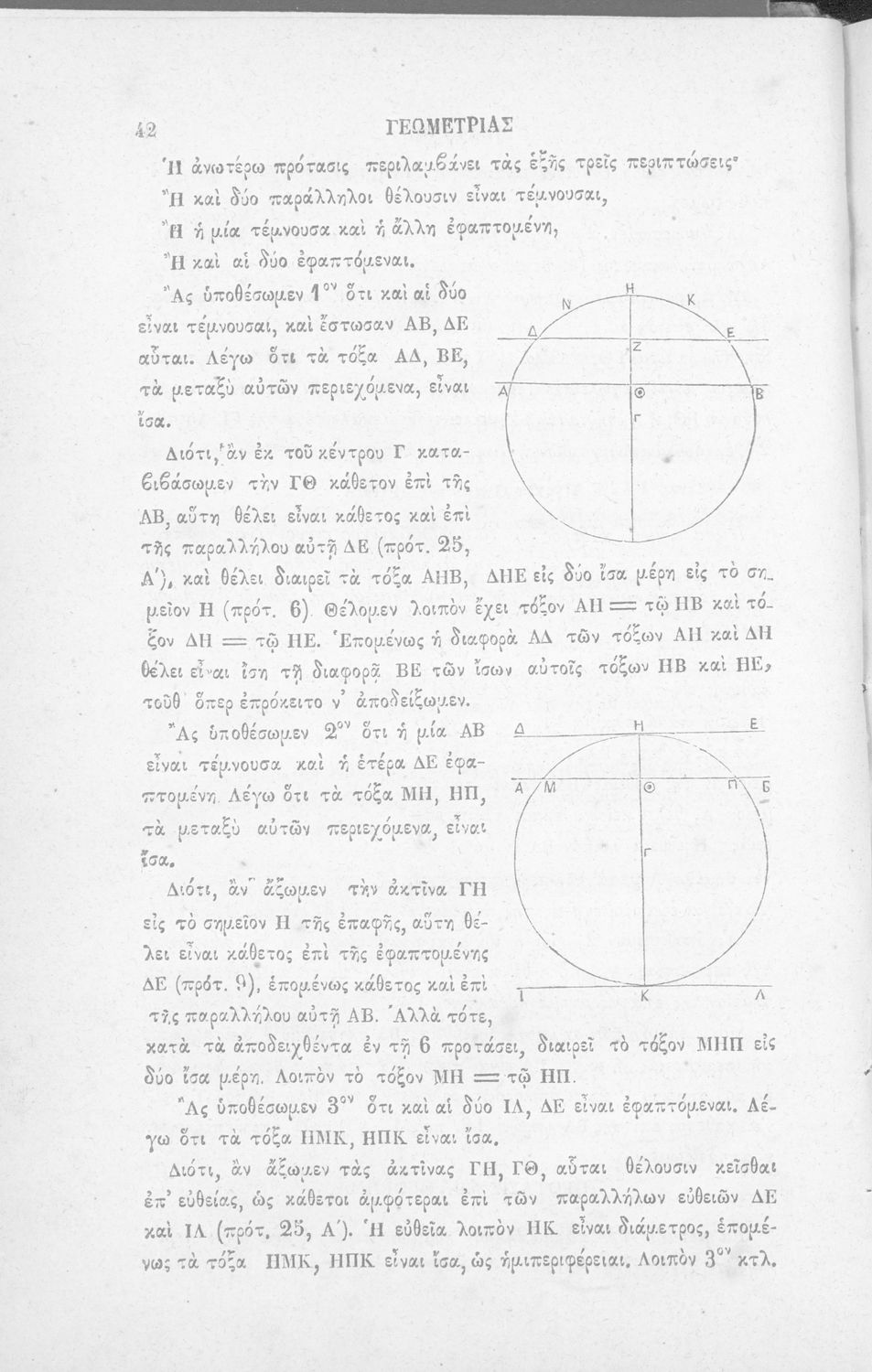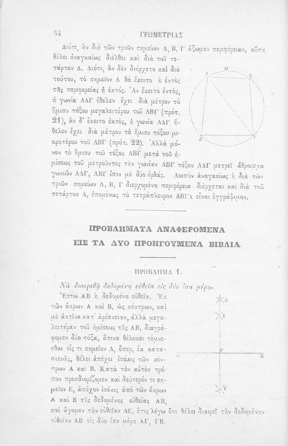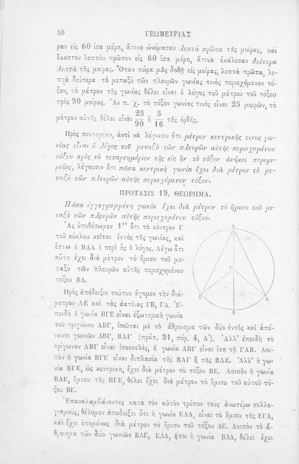 Σχολικό εγχειρίδιο Γεωμετρίας που είναι χωρισμένο σε θεωρήματα και τις λύσεις τους.