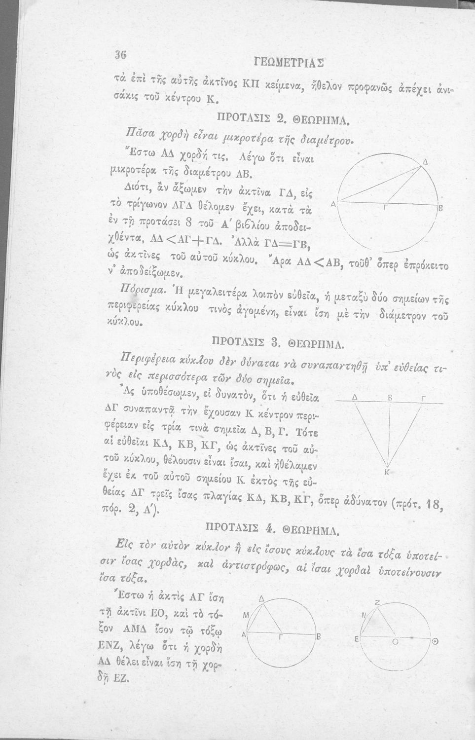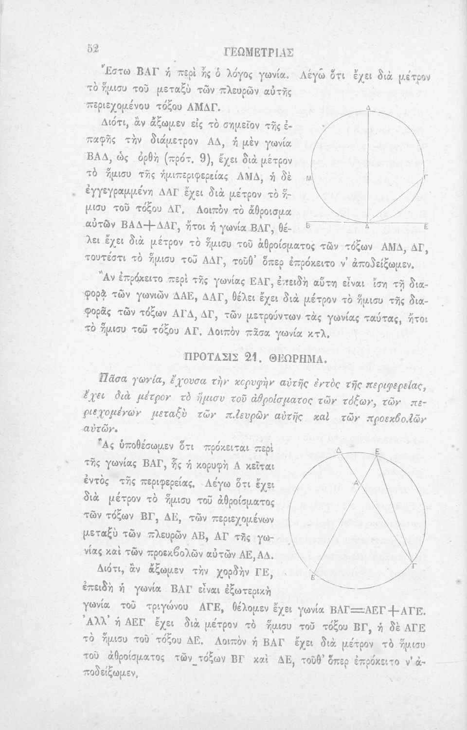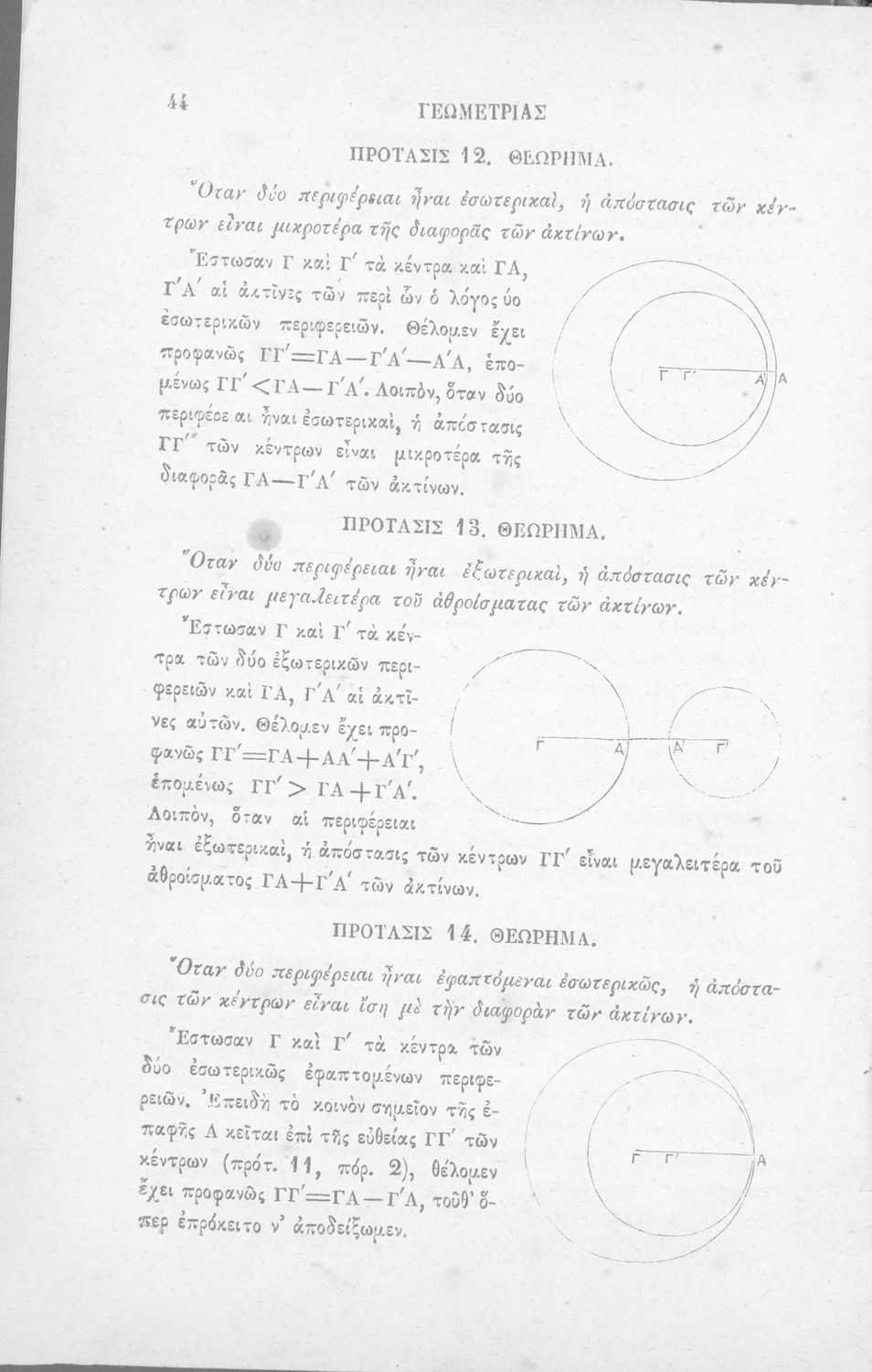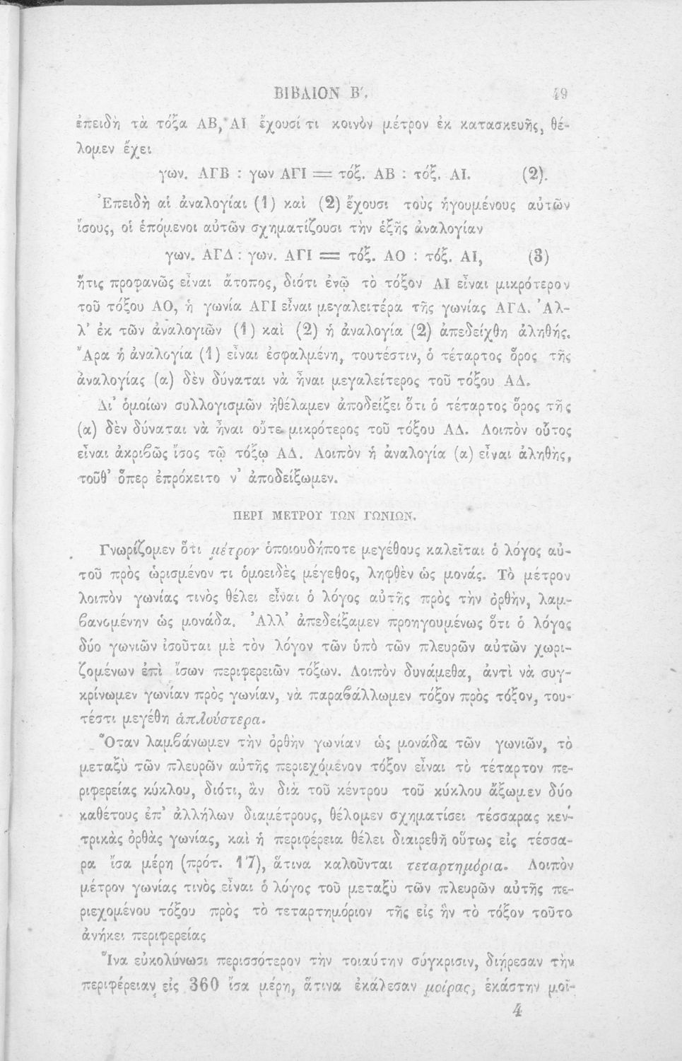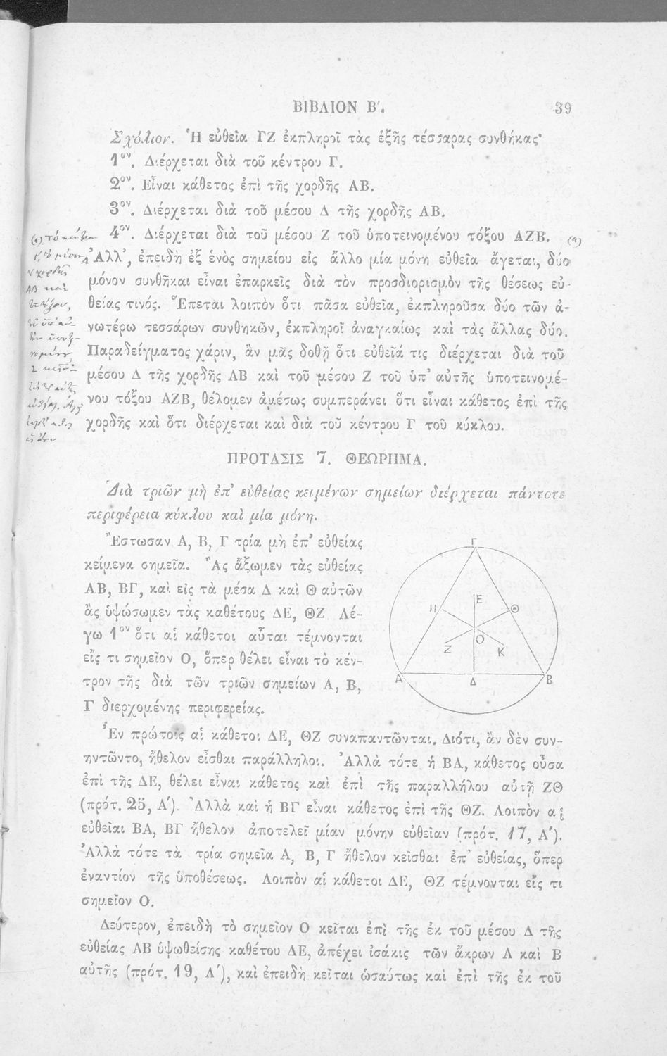 Σχολικό εγχειρίδιο Γεωμετρίας που είναι χωρισμένο σε θεωρήματα και τις λύσεις τους.