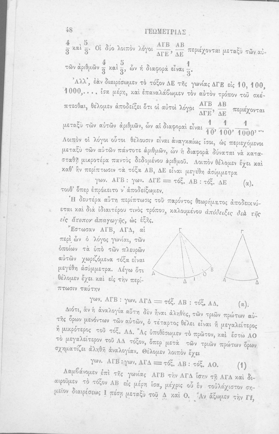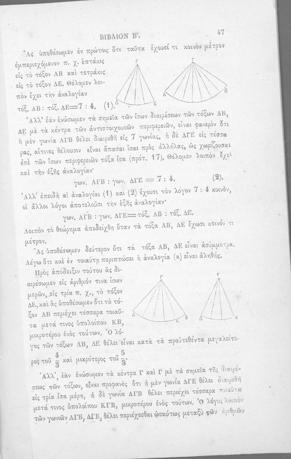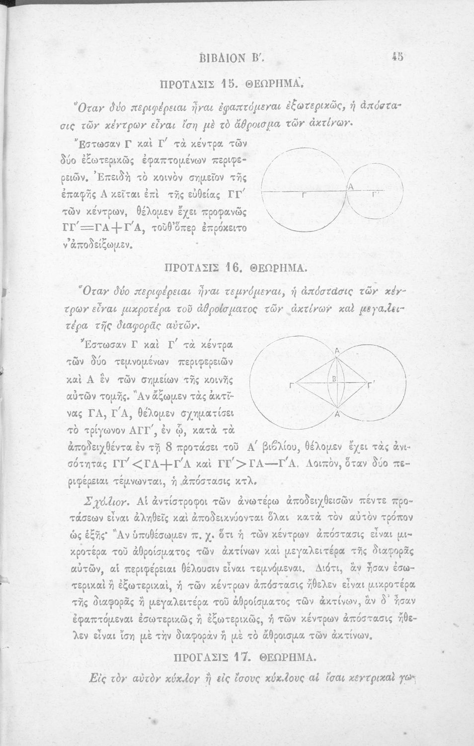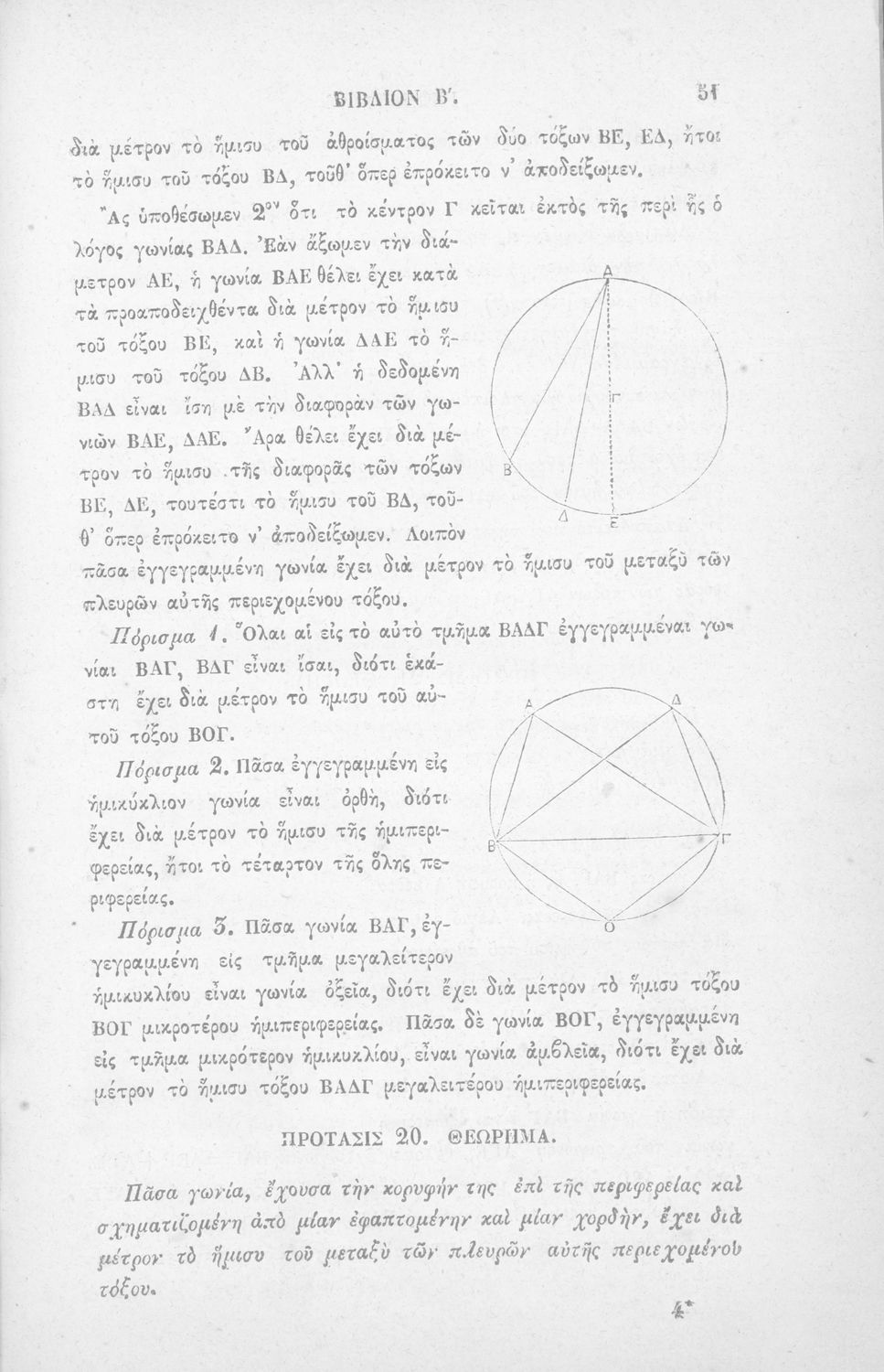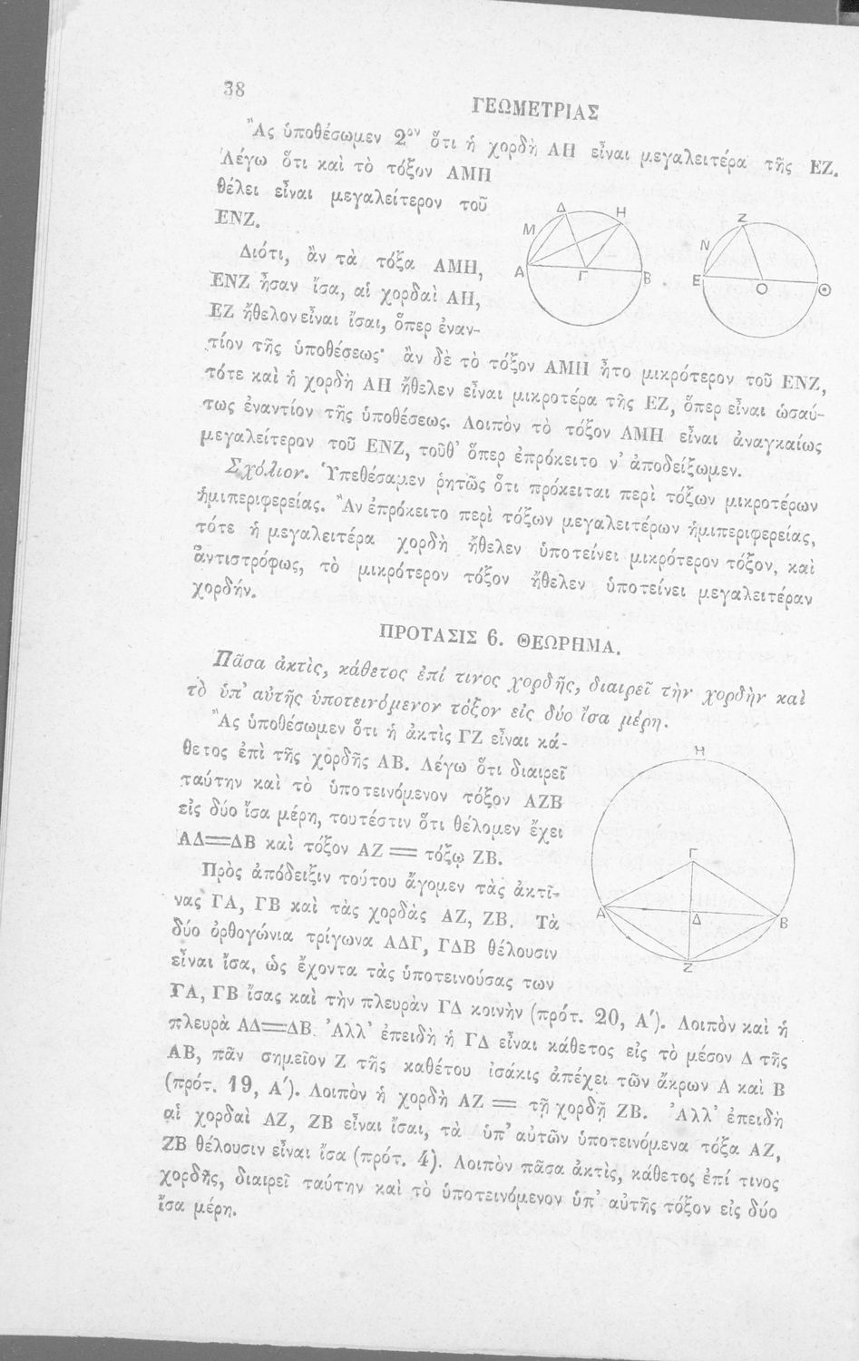 Σχολικό εγχειρίδιο Γεωμετρίας που είναι χωρισμένο σε θεωρήματα και τις λύσεις τους.