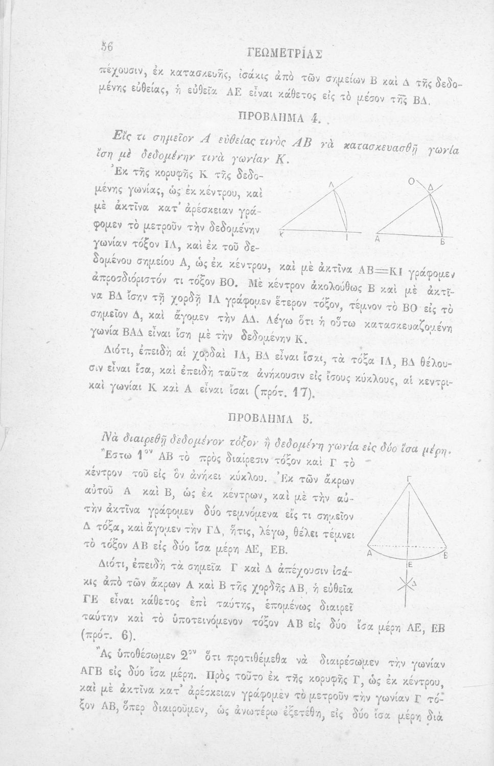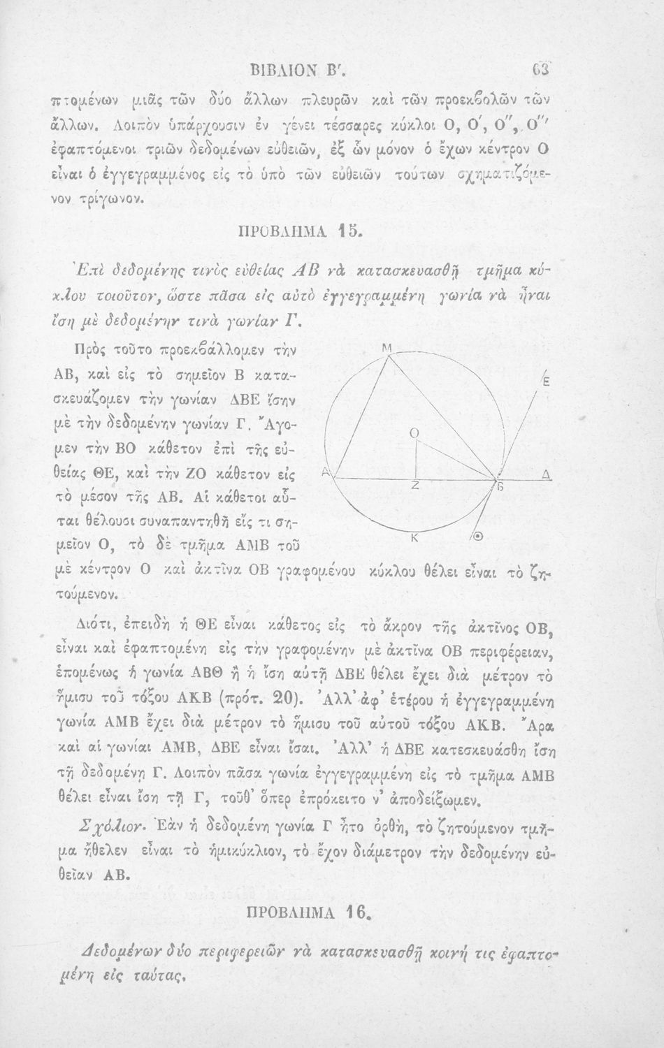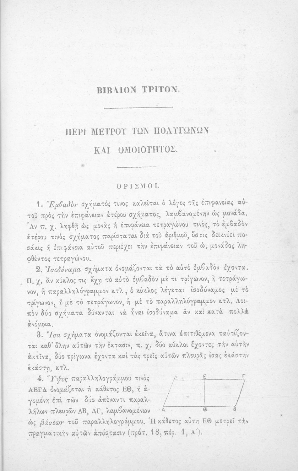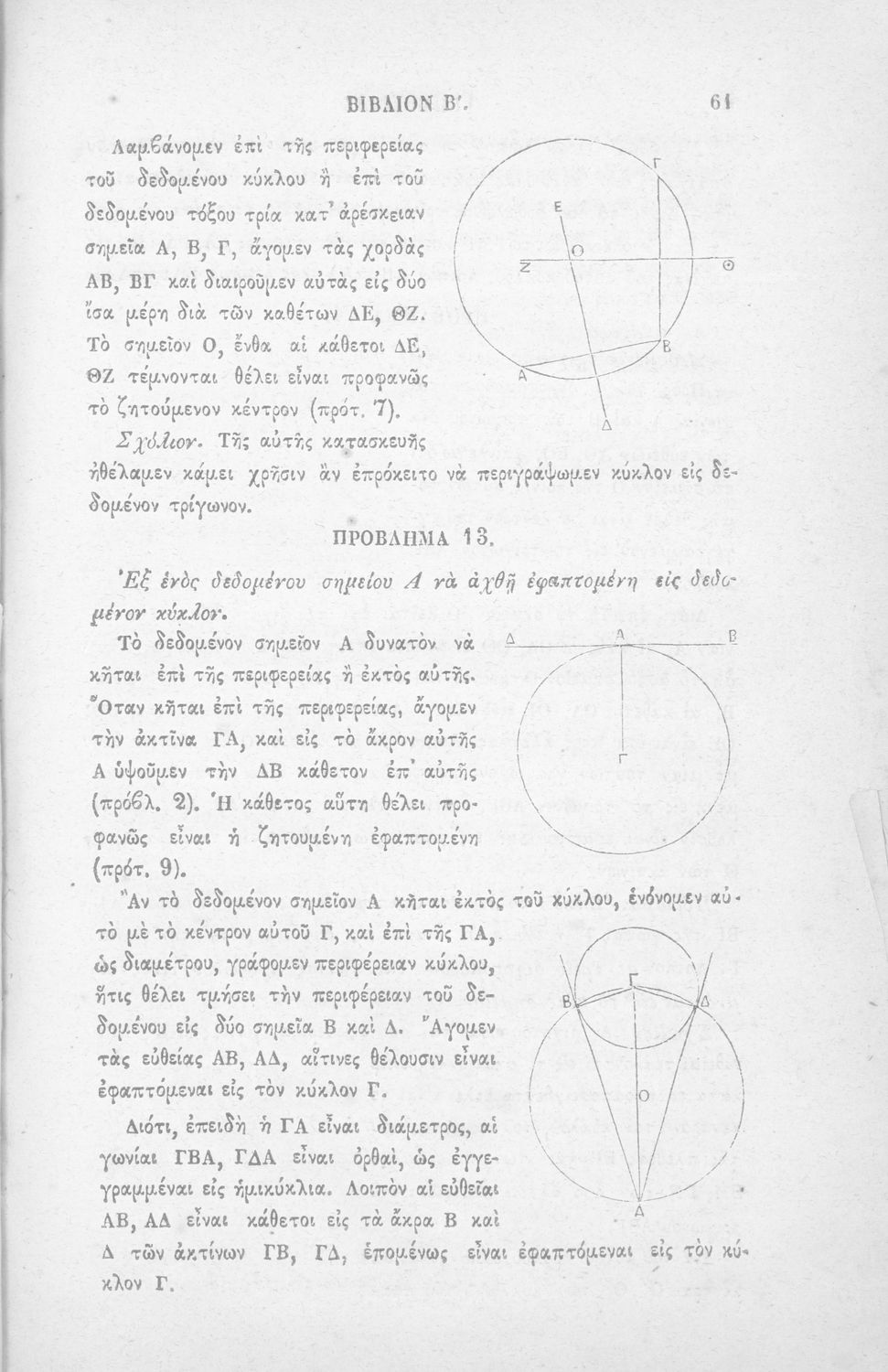 Σχολικό εγχειρίδιο Γεωμετρίας που είναι χωρισμένο σε θεωρήματα και τις λύσεις τους.