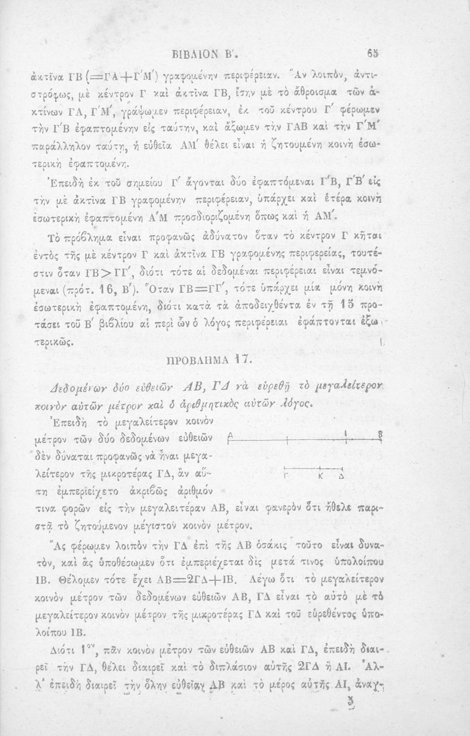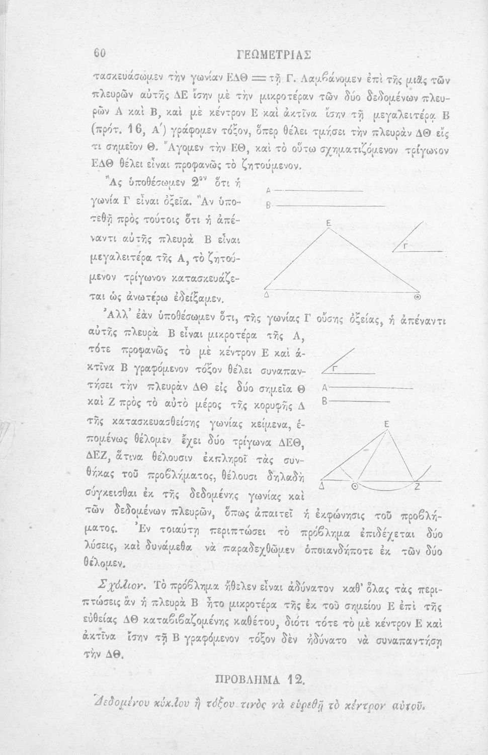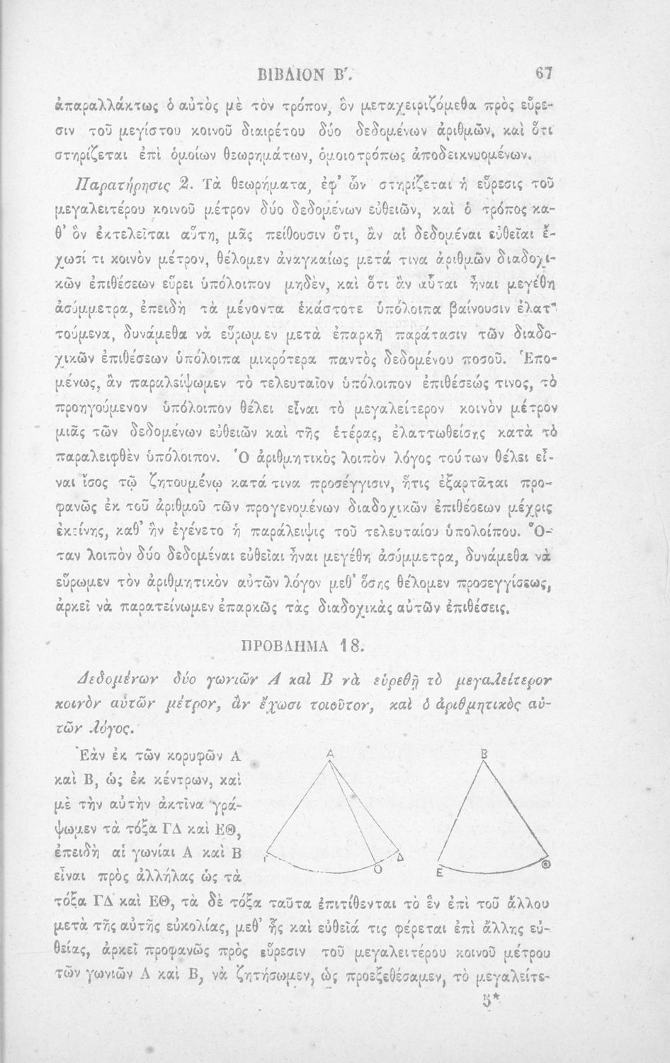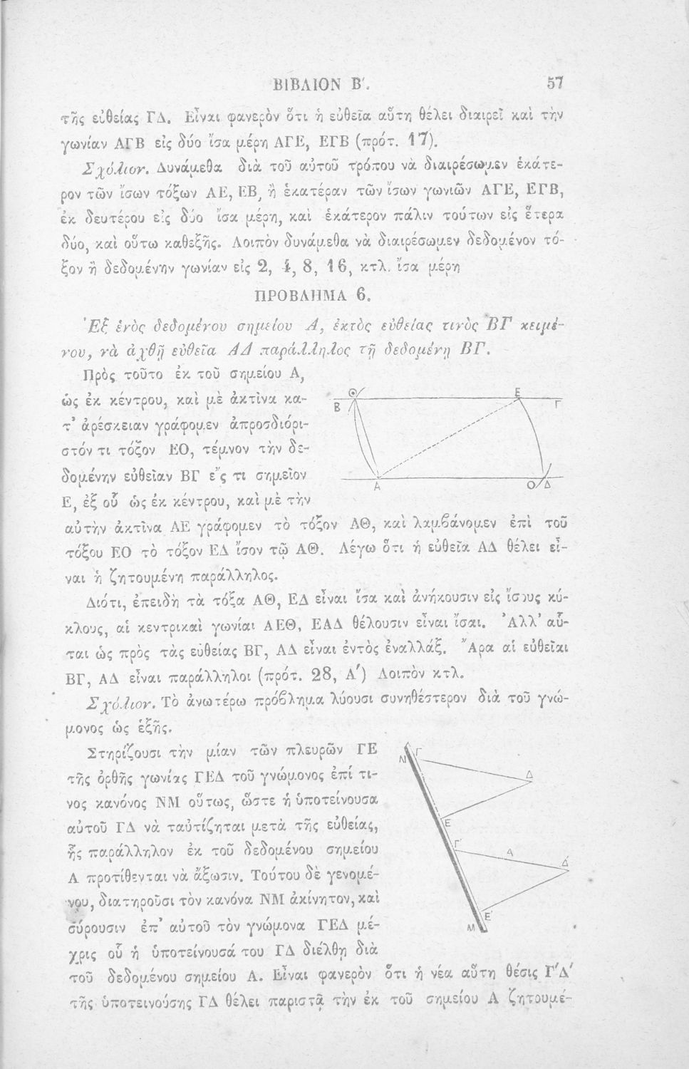 Σχολικό εγχειρίδιο Γεωμετρίας που είναι χωρισμένο σε θεωρήματα και τις λύσεις τους.