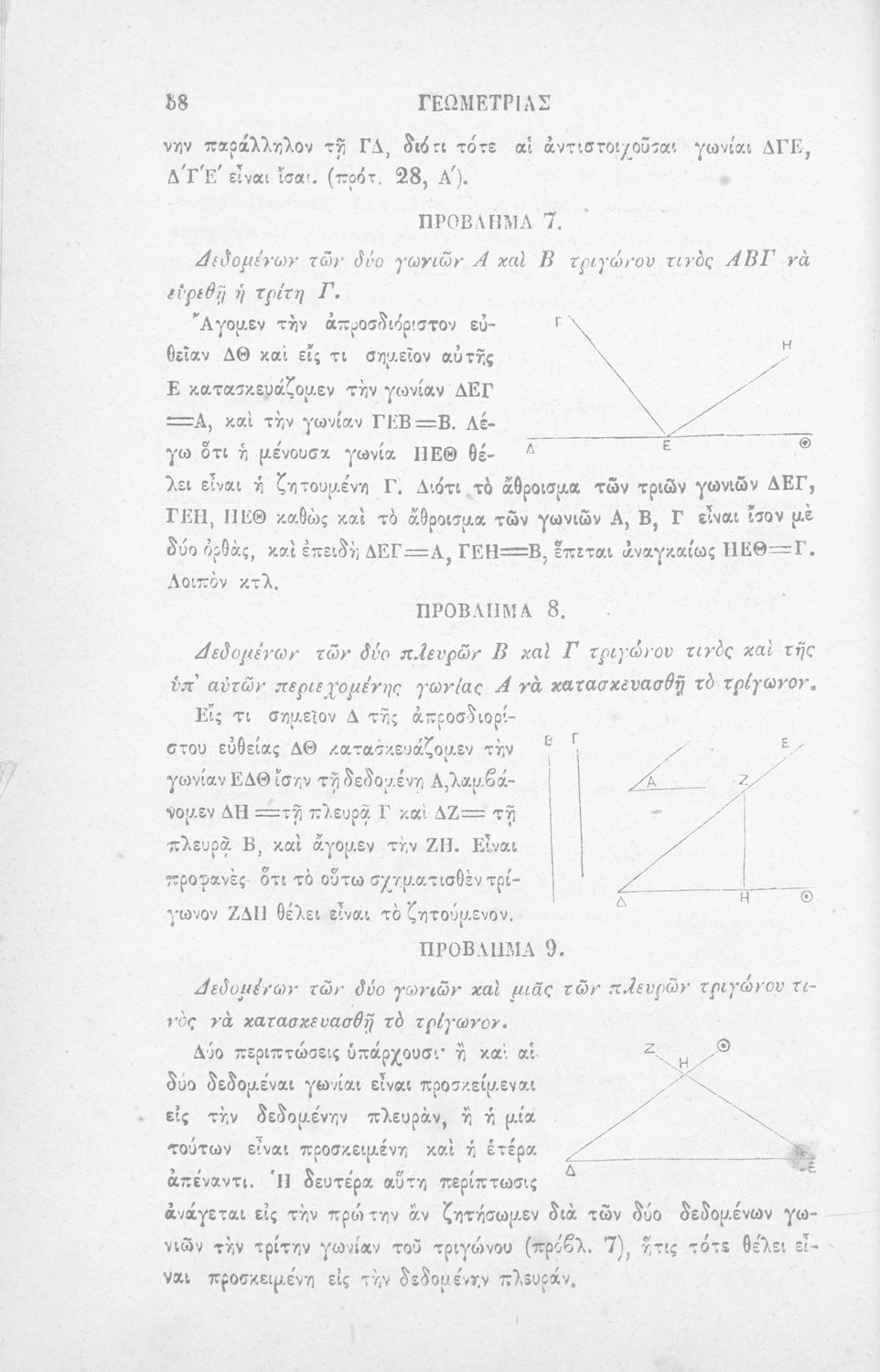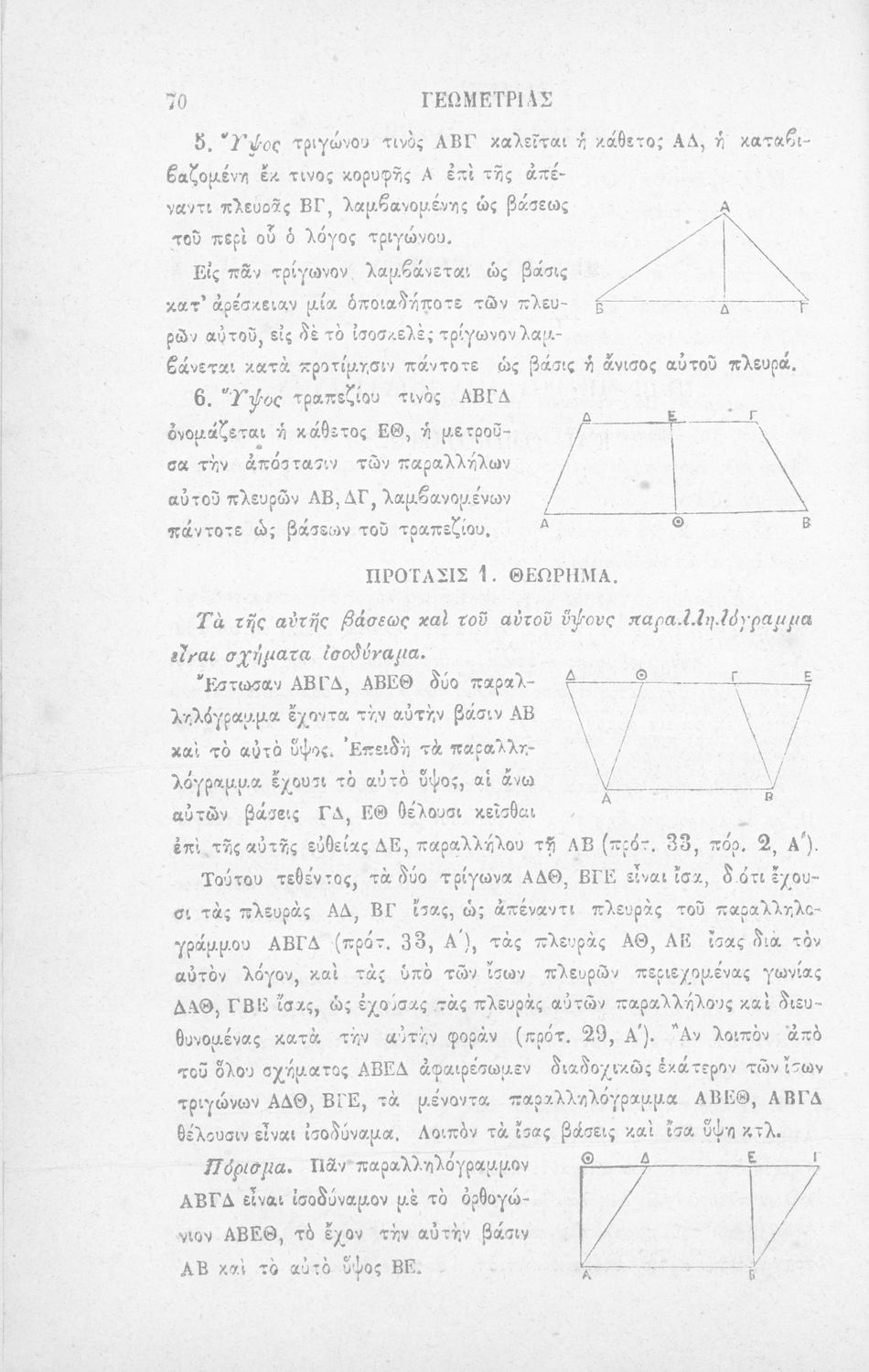 Παρουσίαση περιεχομένου: Σχολικό εγχειρίδιο Γεωμετρίας που είναι χωρισμένο σε θεωρήματα και τις λύσεις τους.