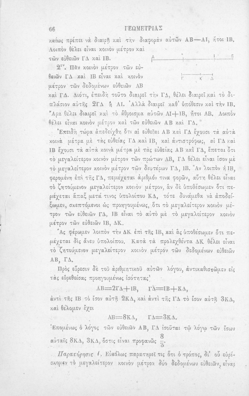 Σχολικό εγχειρίδιο Γεωμετρίας που είναι χωρισμένο σε αξιώματα, θεωρήματα και πορίσματα και εστιάζει στην Επίπεδη Γεωμετρία και τη Στερεομετρία.