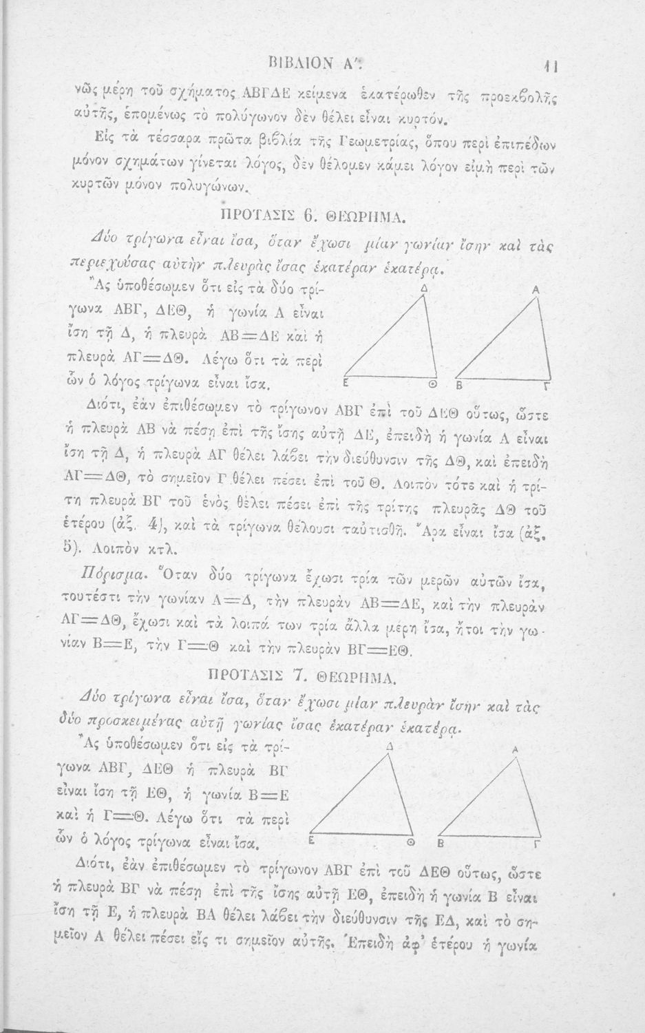 Σχολικό εγχειρίδιο Γεωμετρίας που είναι χωρισμένο σε θεωρήματα και τις λύσεις τους.