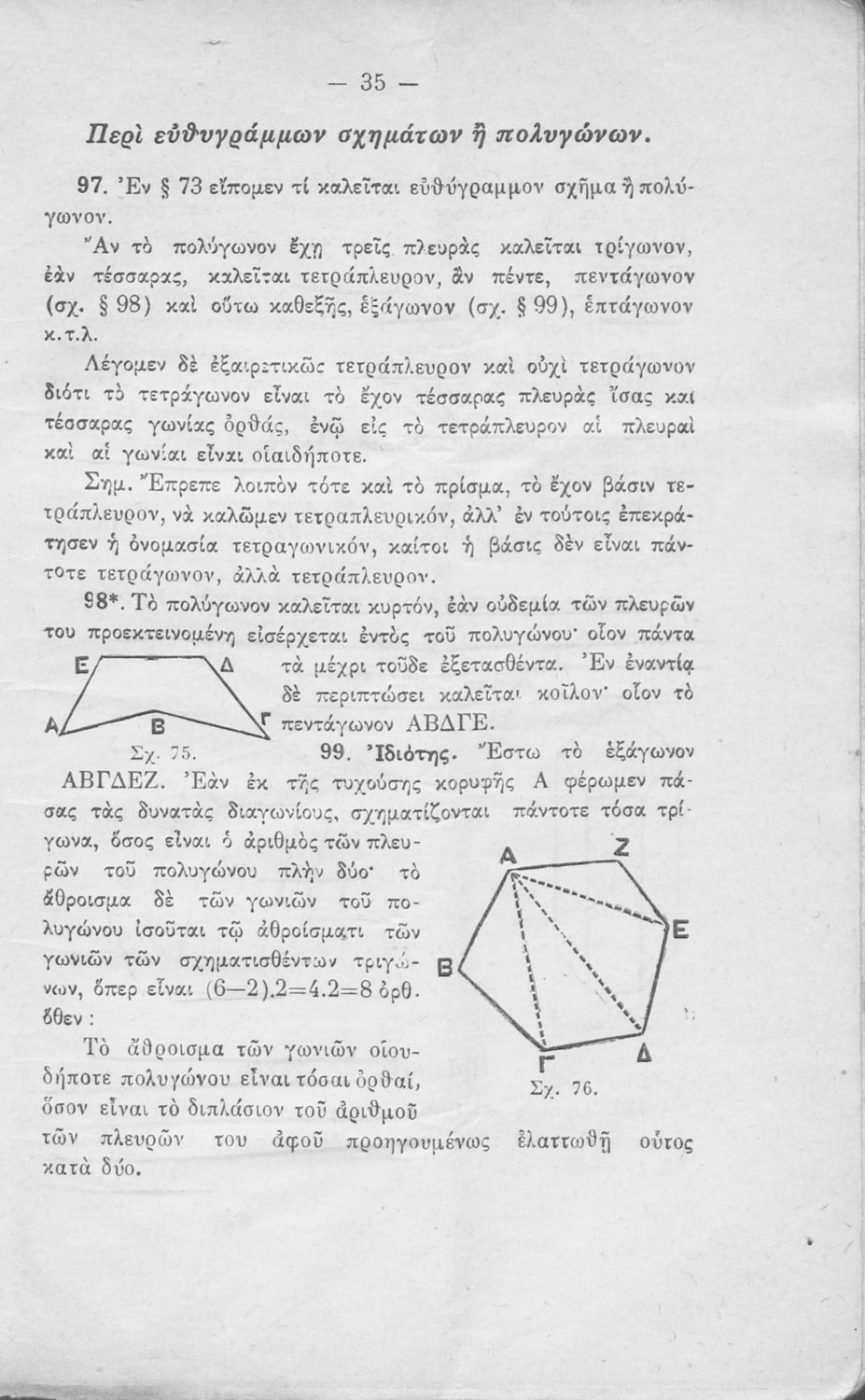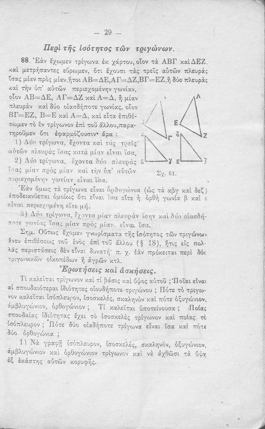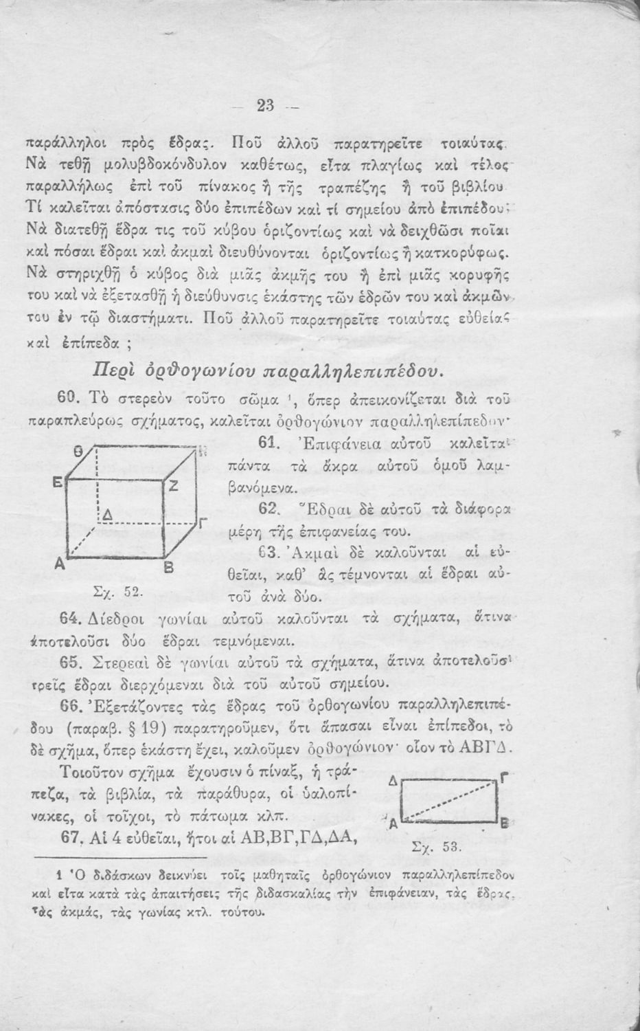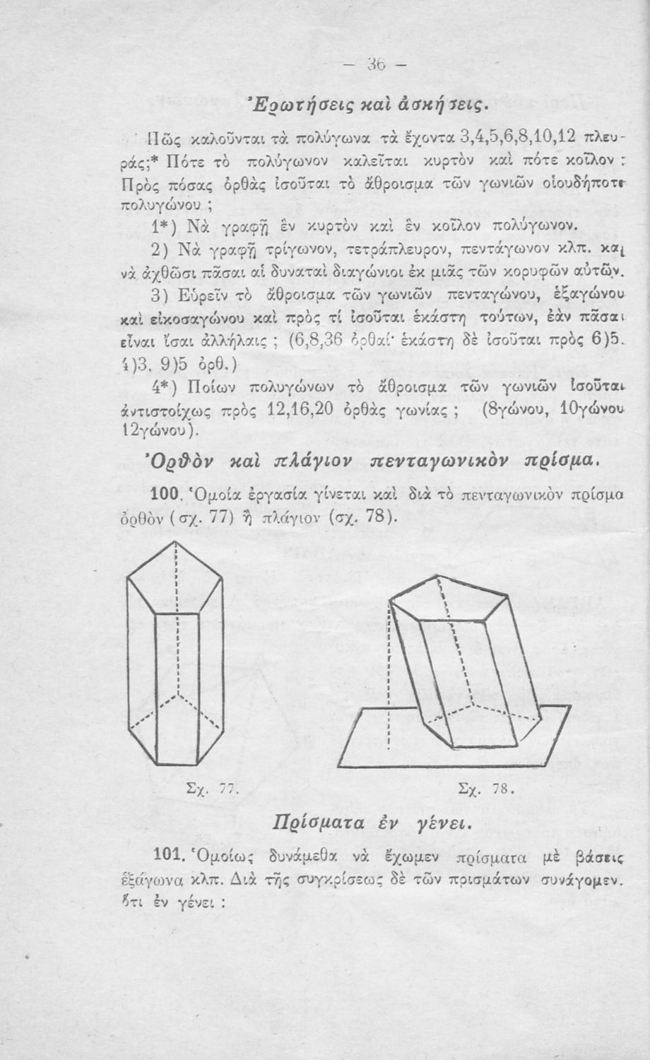 Σχολικό εγχειρίδιο Γεωμετρίας για την Α΄, Β΄ και Γ΄ τάξη των Ελληνικών και Αστικών Σχολείων και Παρθεναγωγείων που είναι χωρισμένο σε Επιπεδομετρία και Στερεομετρία και περιλαμβάνει θεωρία και ασκήσεις.