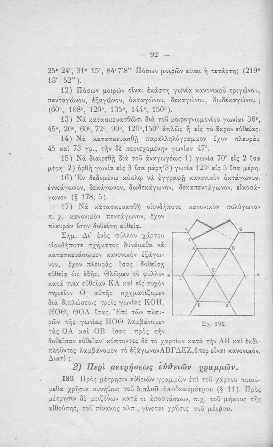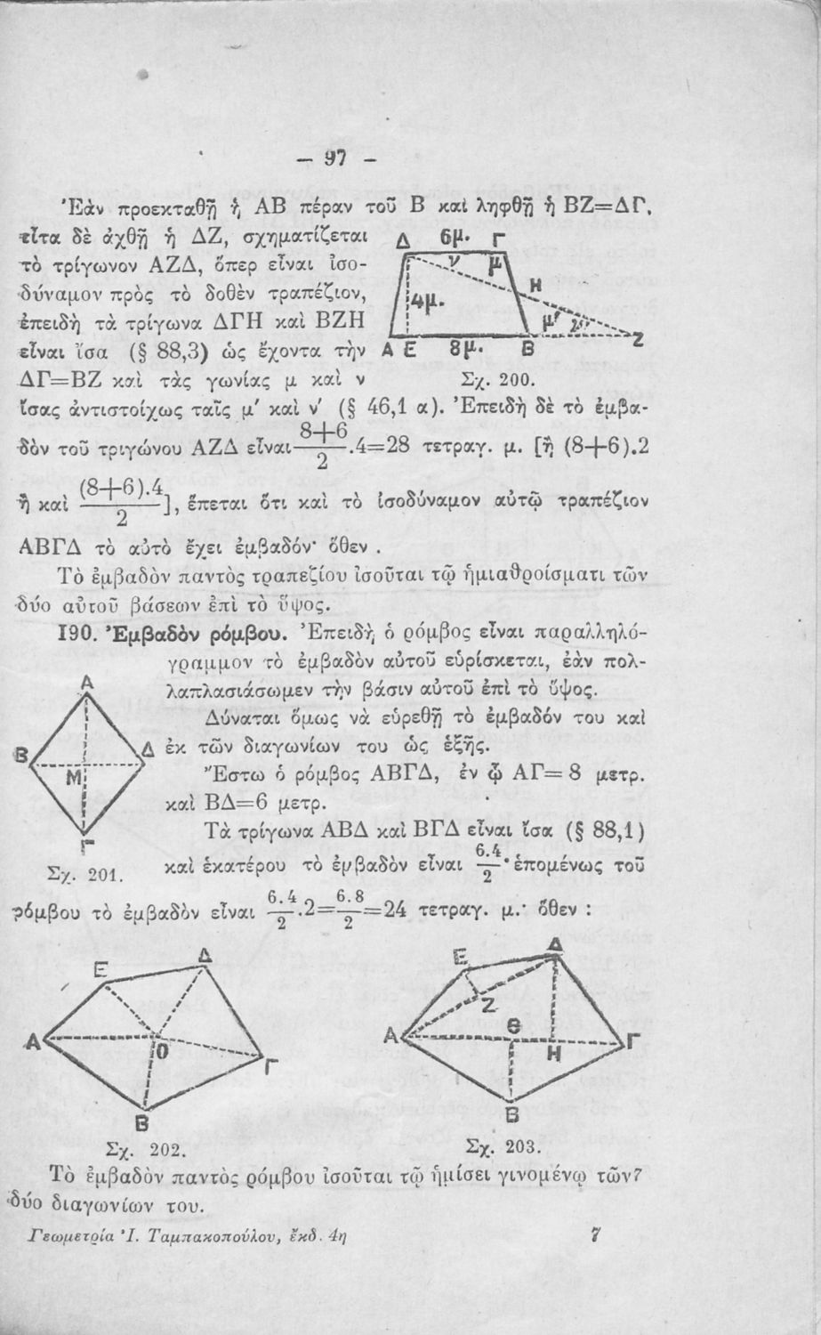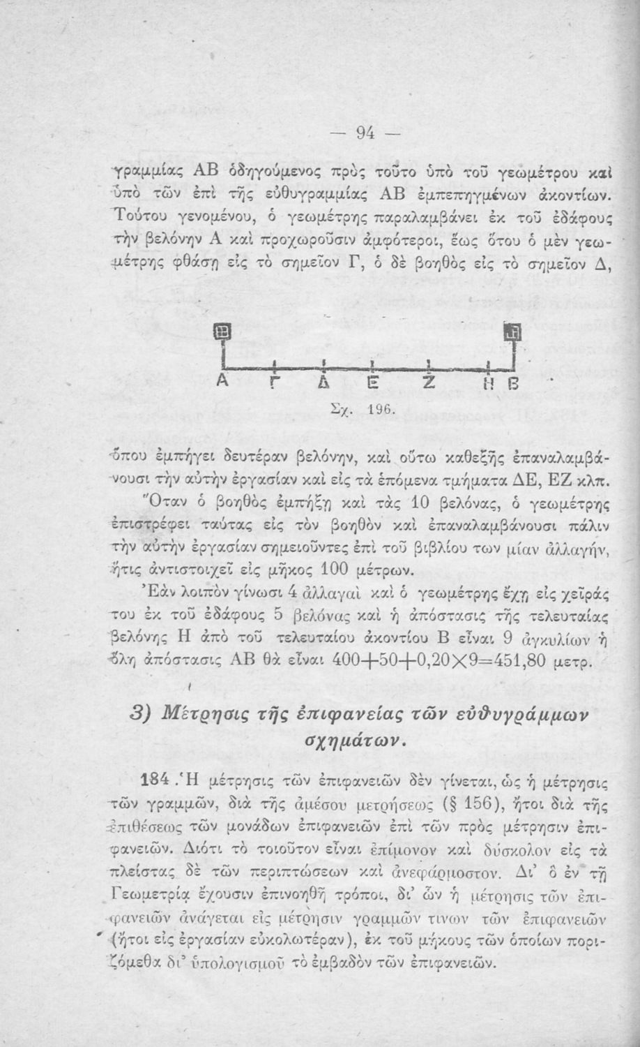 Σχολικό εγχειρίδιο Γεωμετρίας για την Α΄, Β΄ και Γ΄ τάξη των Ελληνικών και Αστικών Σχολείων και Παρθεναγωγείων που είναι χωρισμένο σε Επιπεδομετρία και Στερεομετρία και περιλαμβάνει θεωρία και ασκήσεις.