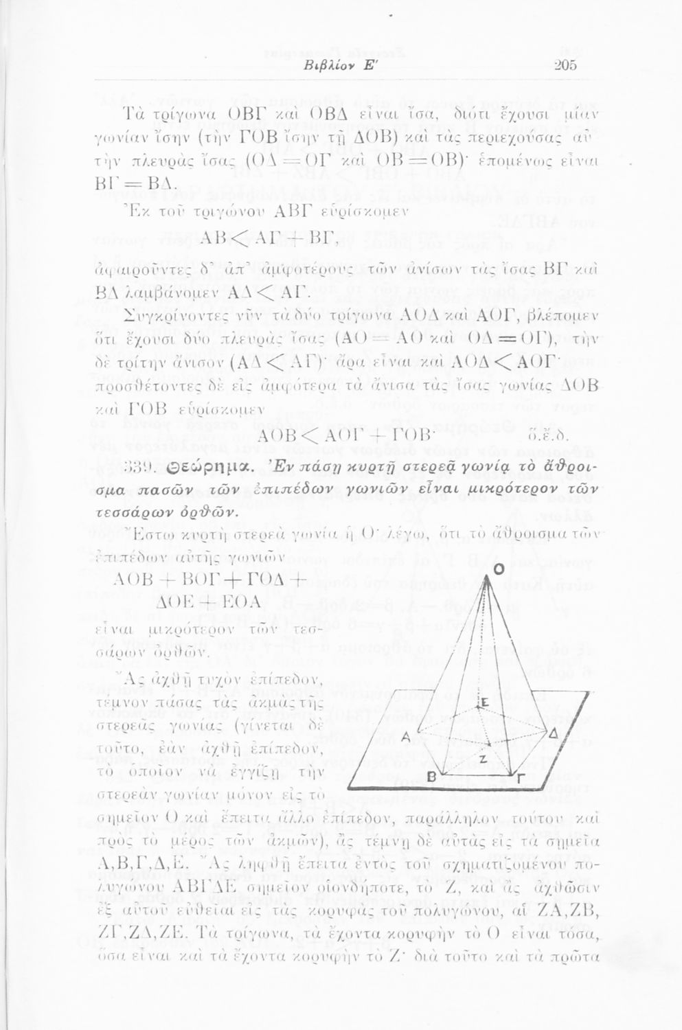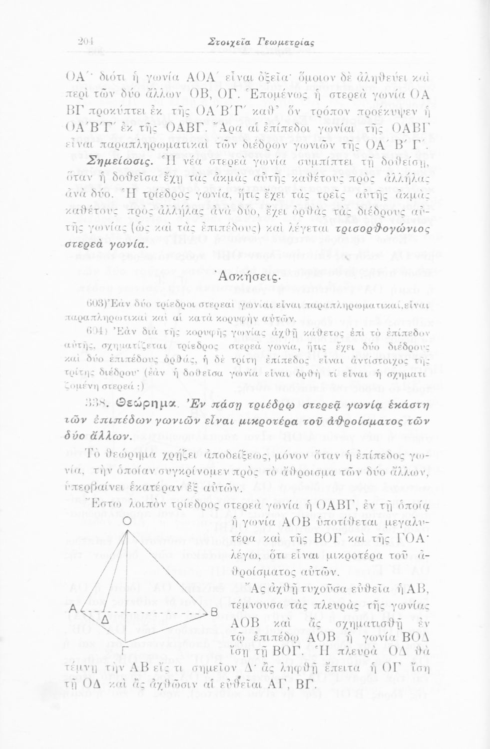 Σχολικό εγχειρίδιο Γεωμετρίας Γυμνασίου χωρισμένο σε ορισμούς, θεωρήματα, πορίσματα και ασκήσεις που εστιάζει στην Επιπεδομετρία και τη Στερεομετρία. Διαθέτει και παράρτημα με στοιχεία Αναλυτικής Γεωμετρίας.