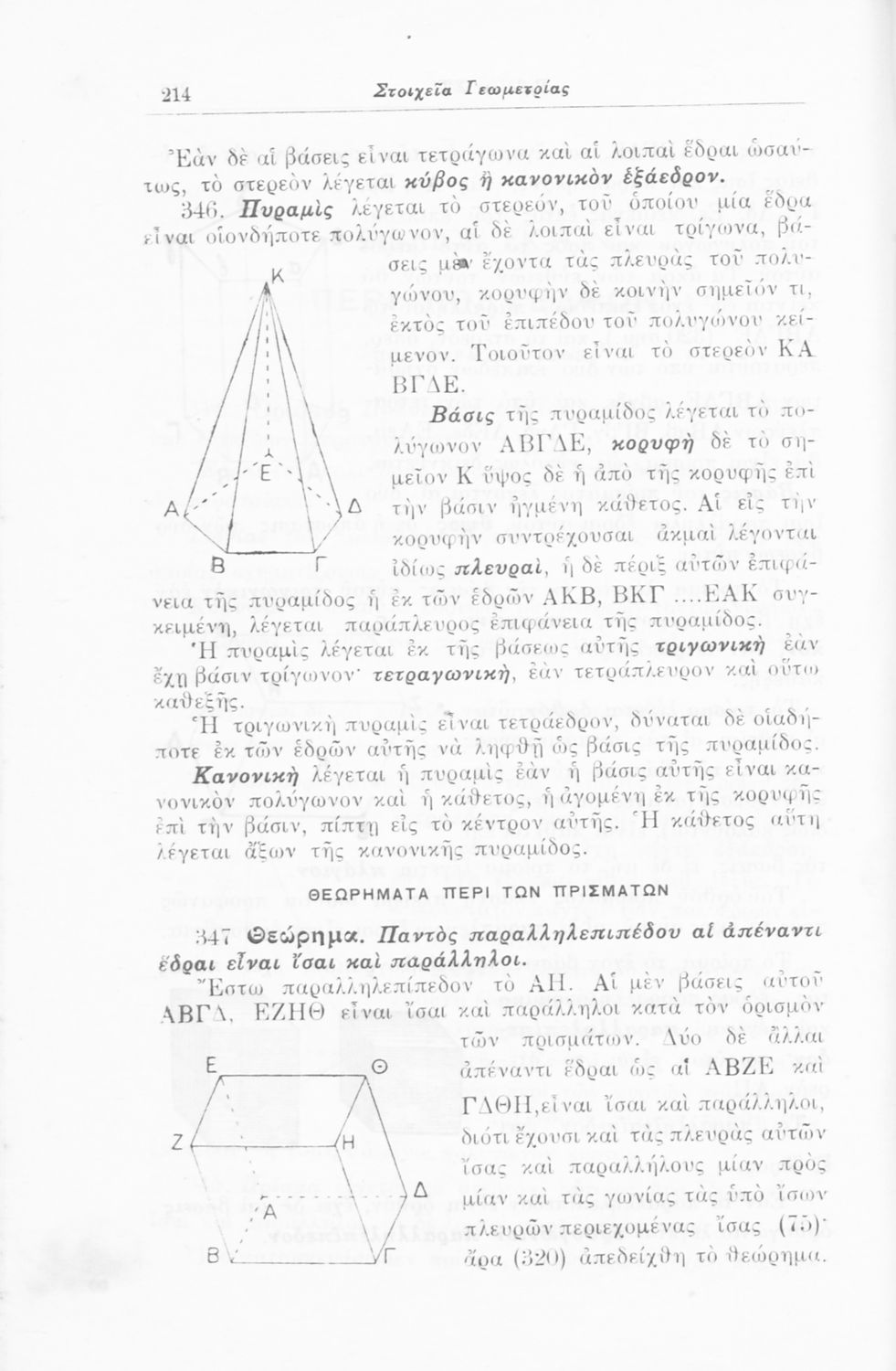 Σχολικό εγχειρίδιο Γεωμετρίας για την Α΄ και Β΄ Γυμνασίου χωρισμένο σε Επιπεδομετρία και Στερεομετρία που περιέχει θεωρία και ασκήσεις.