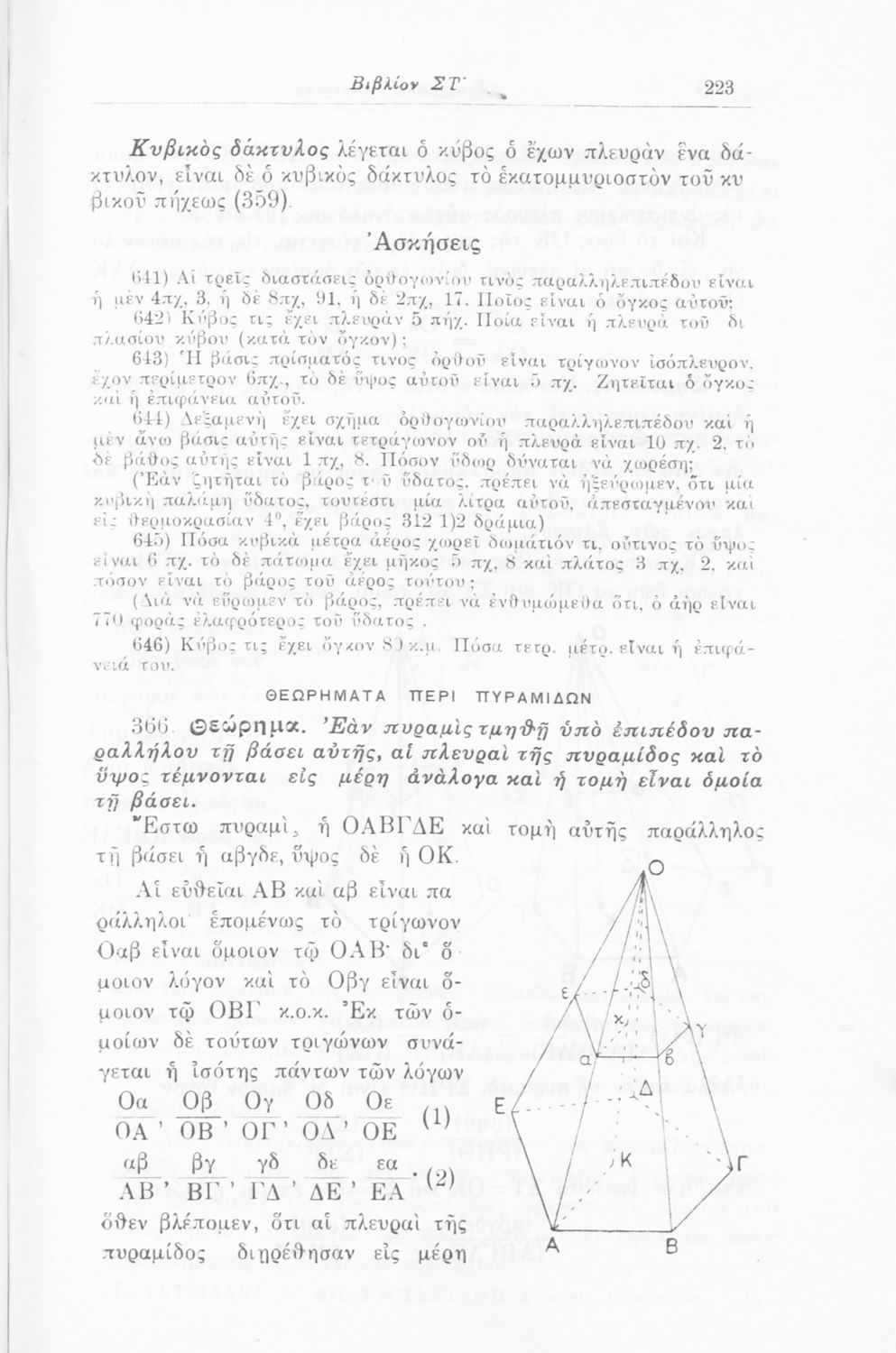 Σχολικό εγχειρίδιο Γεωμετρίας για την Α΄ και Β΄ Γυμνασίου χωρισμένο σε Επιπεδομετρία και Στερεομετρία που περιέχει θεωρία και ασκήσεις.