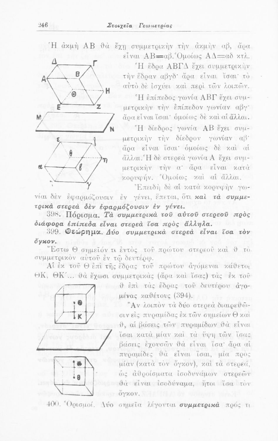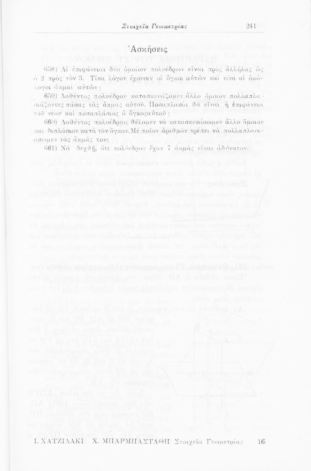 Σχολικό εγχειρίδιο Γεωμετρίας Γυμνασίου χωρισμένο σε ορισμούς, θεωρήματα, πορίσματα και ασκήσεις που εστιάζει στην Επιπεδομετρία και τη Στερεομετρία. Διαθέτει και παράρτημα με στοιχεία Αναλυτικής Γεωμετρίας.